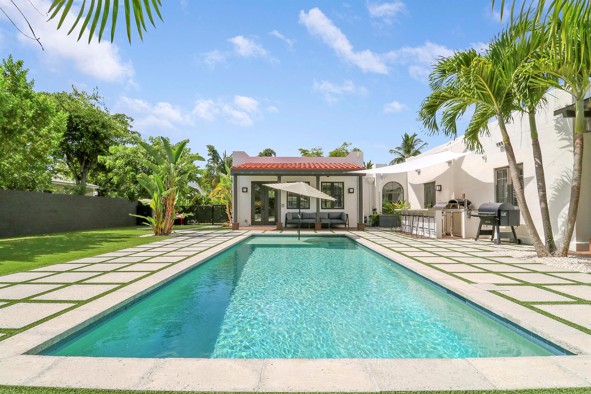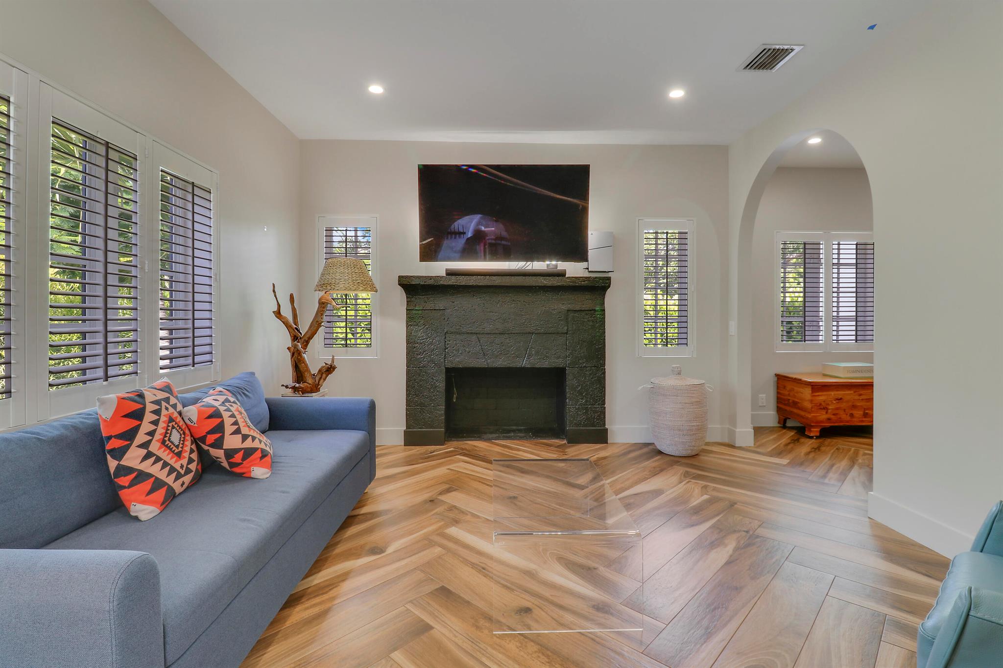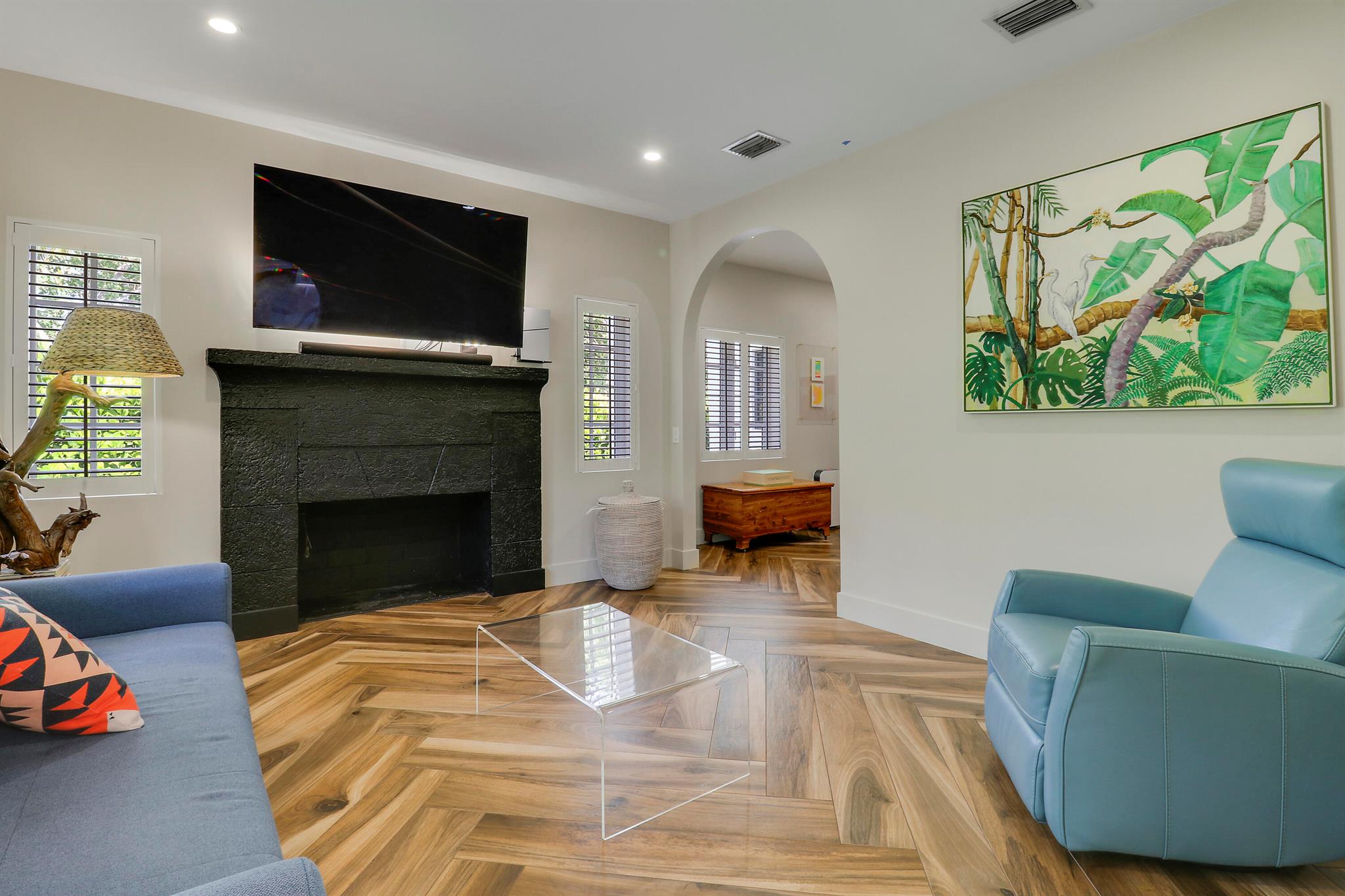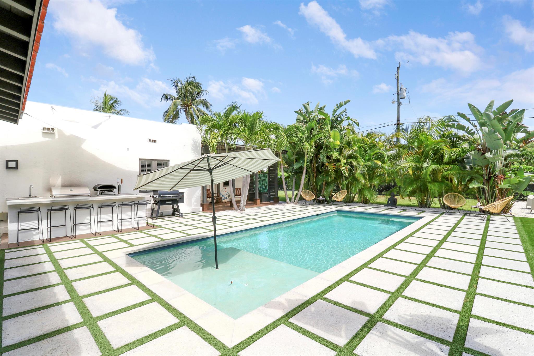 Step inside this 1925 Spanish Mission home in West Palm Beach's sought-after Flamingo Park, where historic character meets a full scale renovation. Every major system--from electrical and plumbing to foundation, roof, and windows--has been replaced, offering peace of mind while preserving historic charm. Sitting on a rare double corner lot, there's plenty of room to add an extra wing to the home or detached suite. Inside, you'll find arched doorways and windows, natural wood beams, herringbone tile floors throughout, and the original fireplace--all thoughtfully keeping the home's character alive. The stunning chef's kitchen and beautifully designed bathrooms, along with recessed lighting and smart home features, make daily living easy and modern.