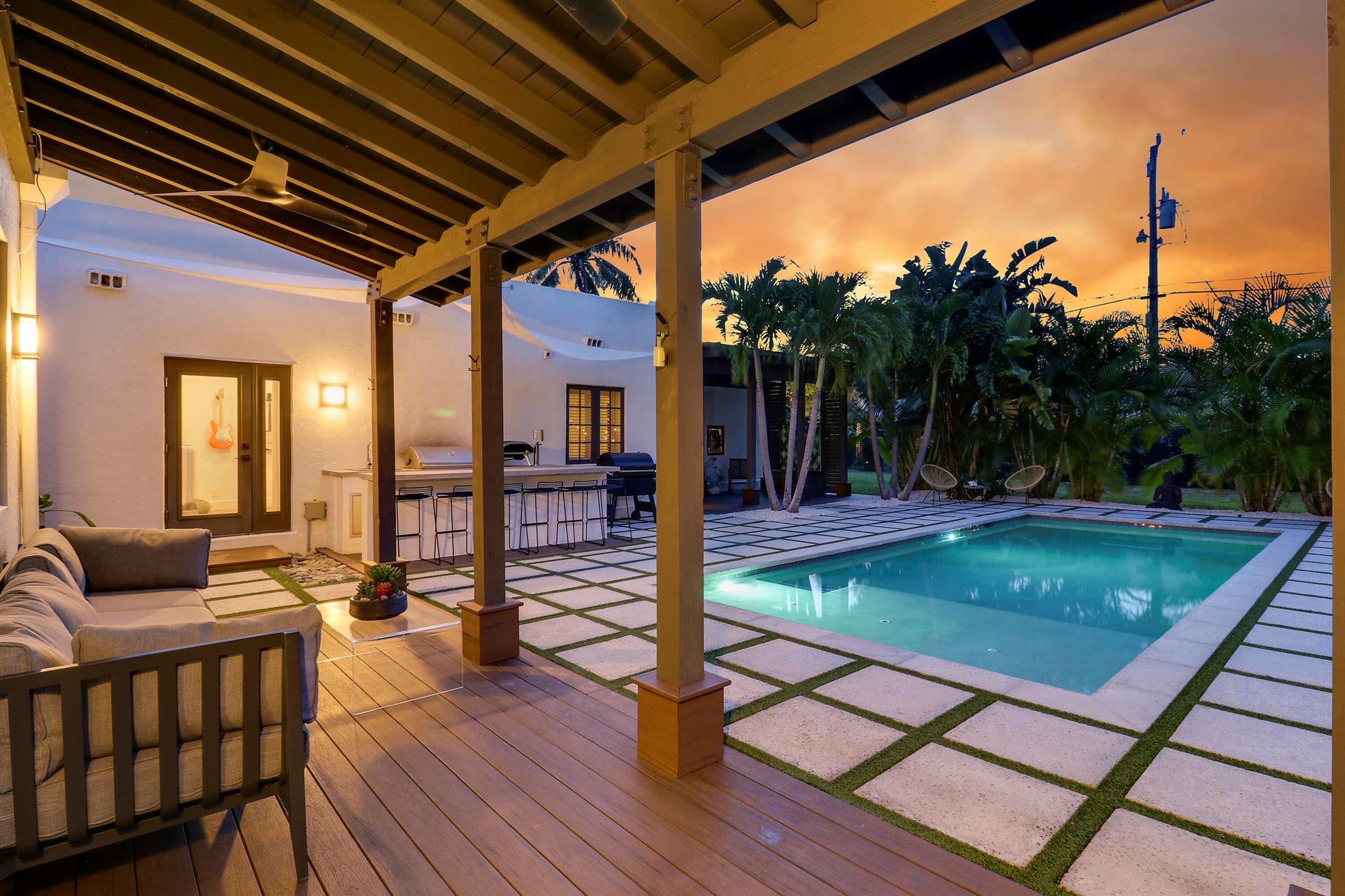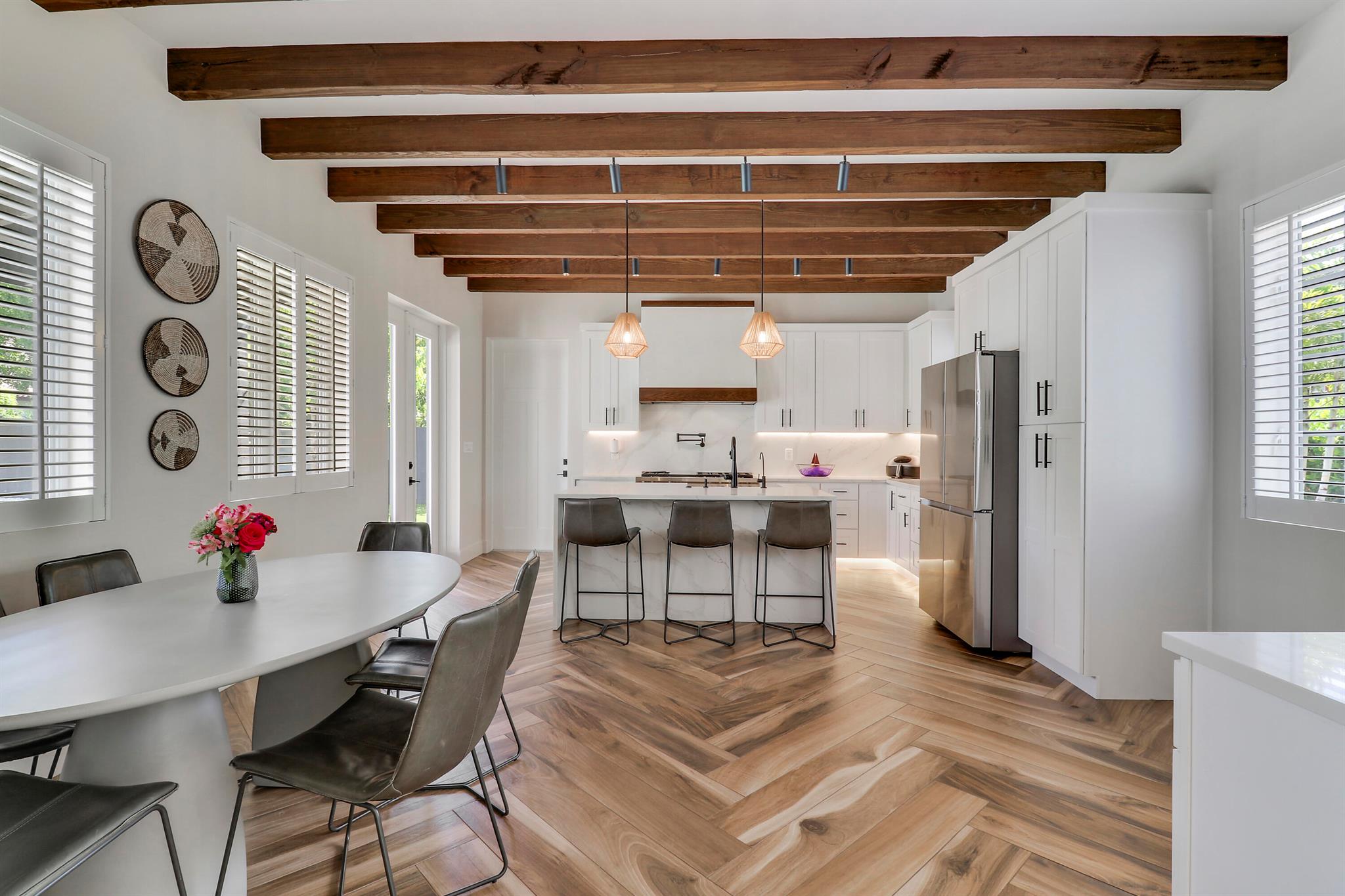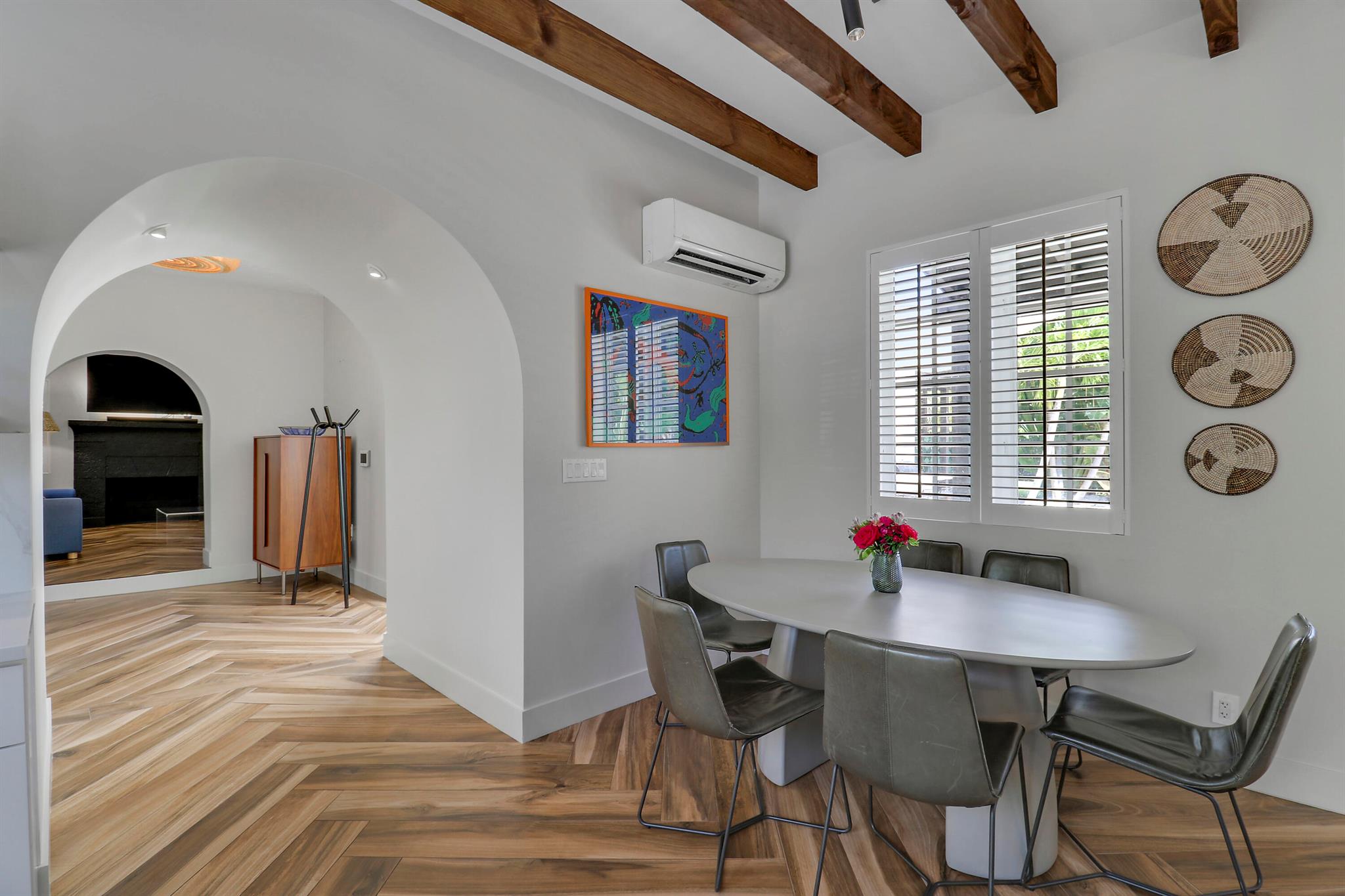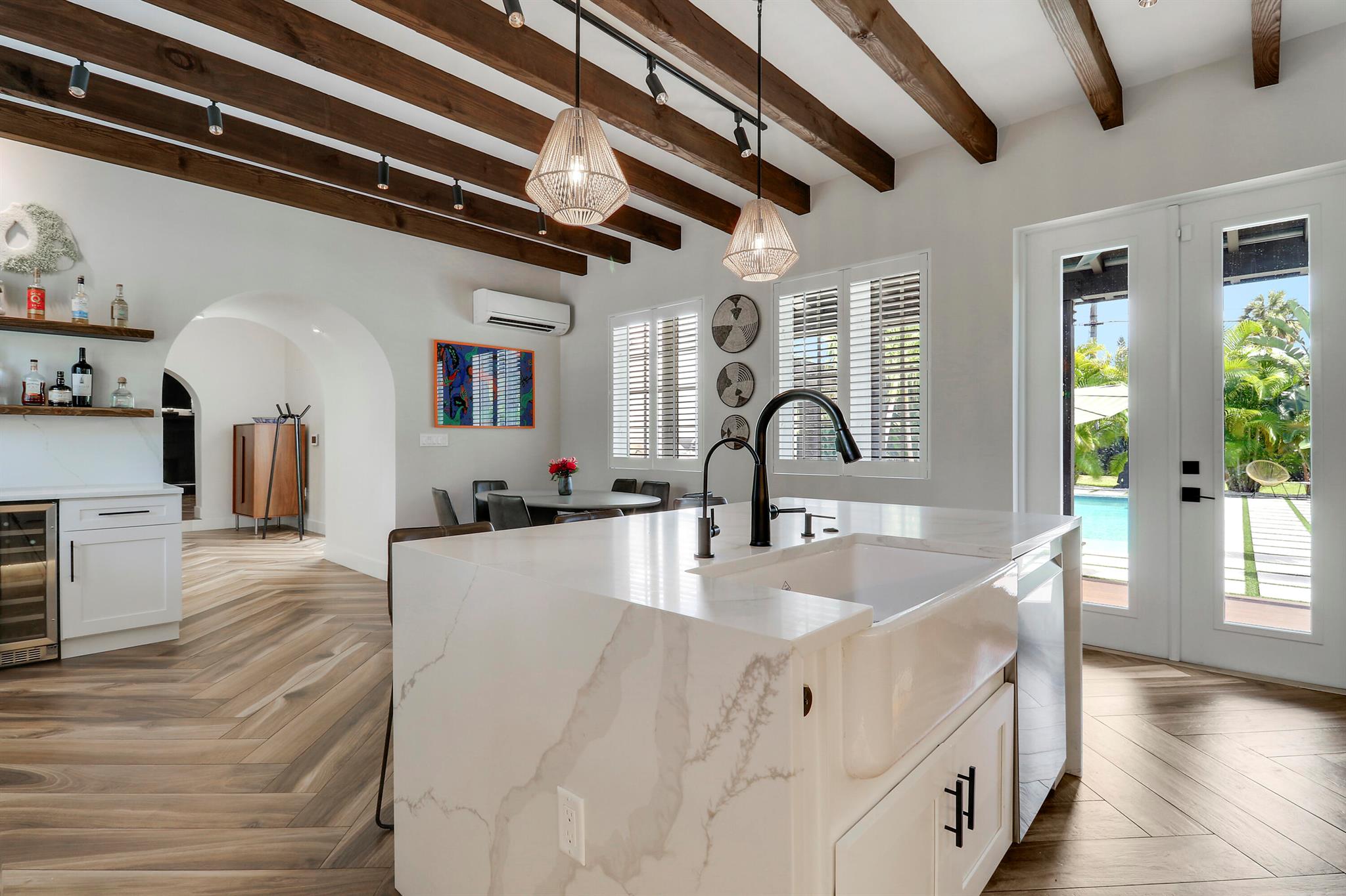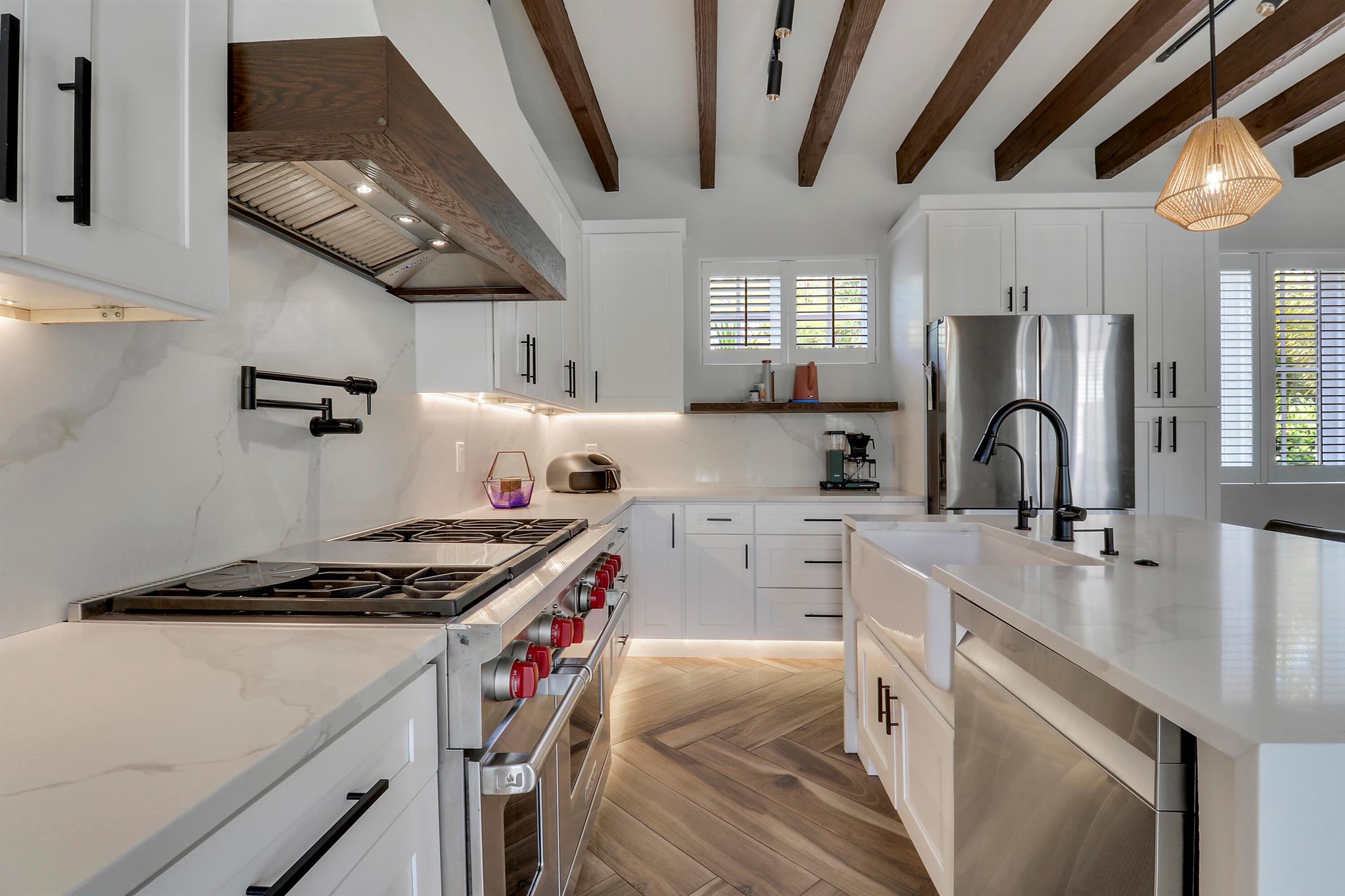 Step inside this 1925 Spanish Mission home in West Palm Beach's sought-after Flamingo Park, where historic character meets a full scale renovation. Every major system--from electrical and plumbing to foundation, roof, and windows--has been replaced, offering peace of mind while preserving historic charm. Sitting on a rare double corner lot, there's plenty of room to add an extra wing to the home or detached suite. Inside, you'll find arched doorways and windows, natural wood beams, herringbone tile floors throughout, and the original fireplace--all thoughtfully keeping the home's character alive. The stunning chef's kitchen and beautifully designed bathrooms, along with recessed lighting and smart home features, make daily living easy and modern.