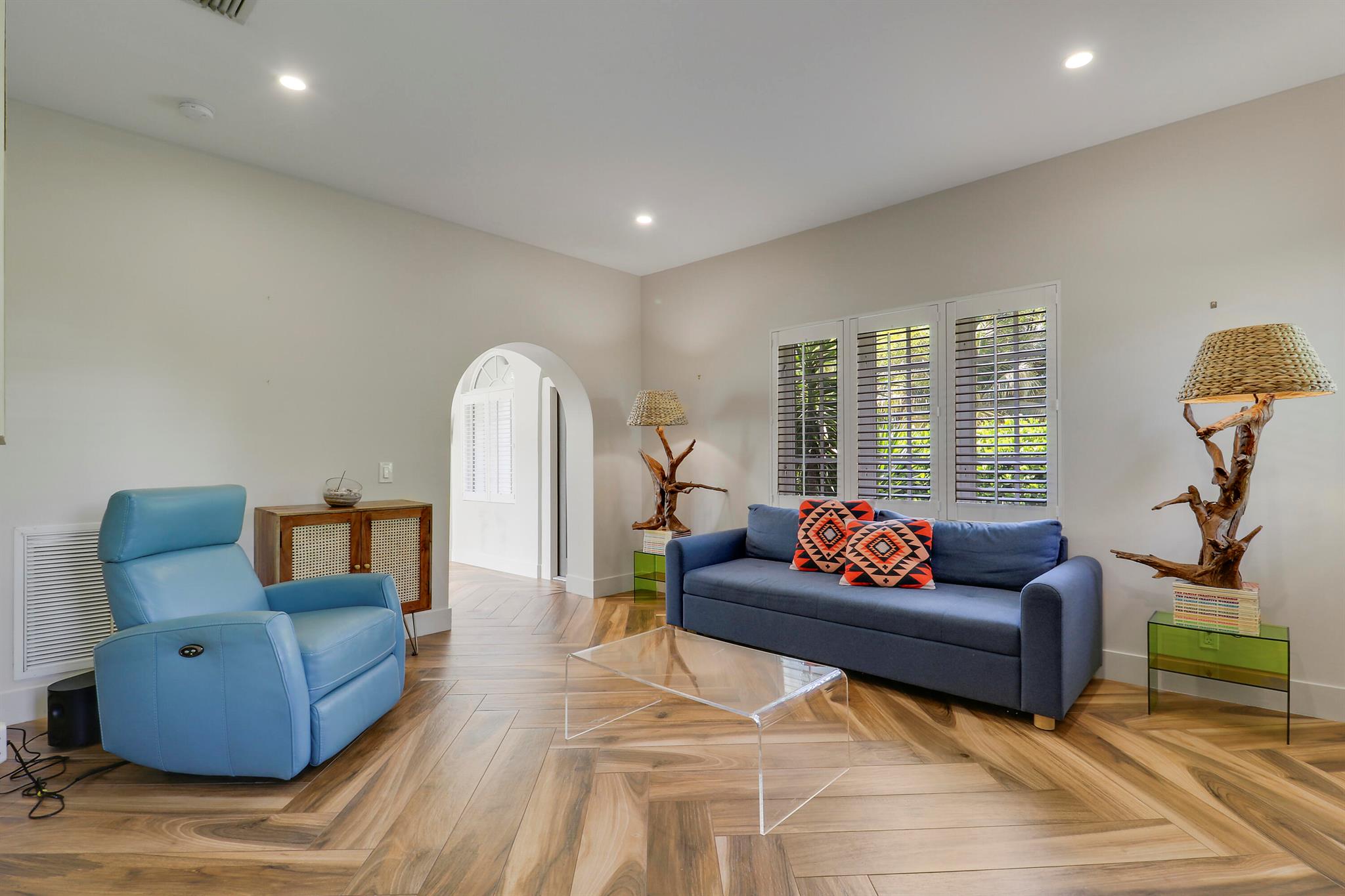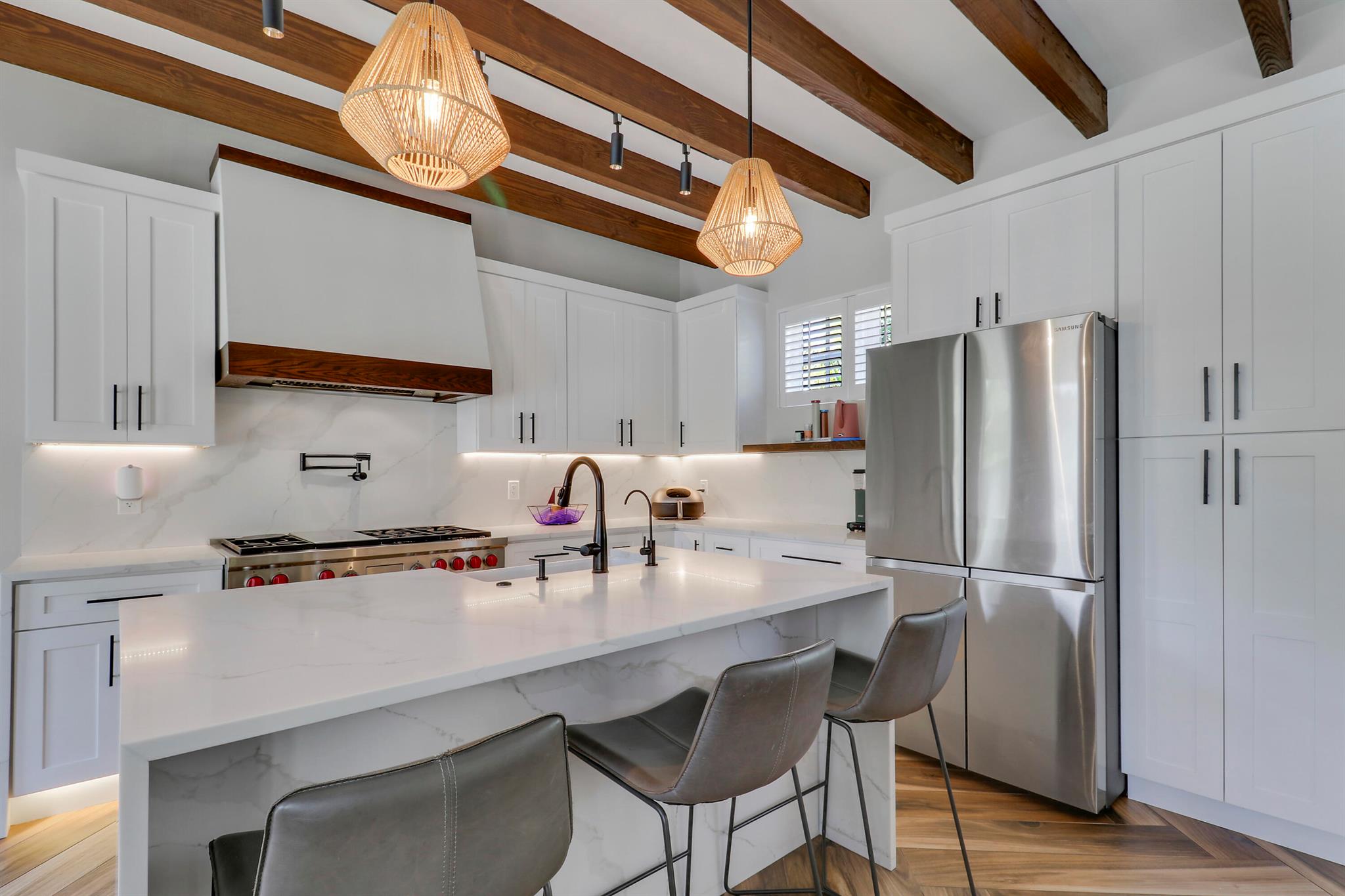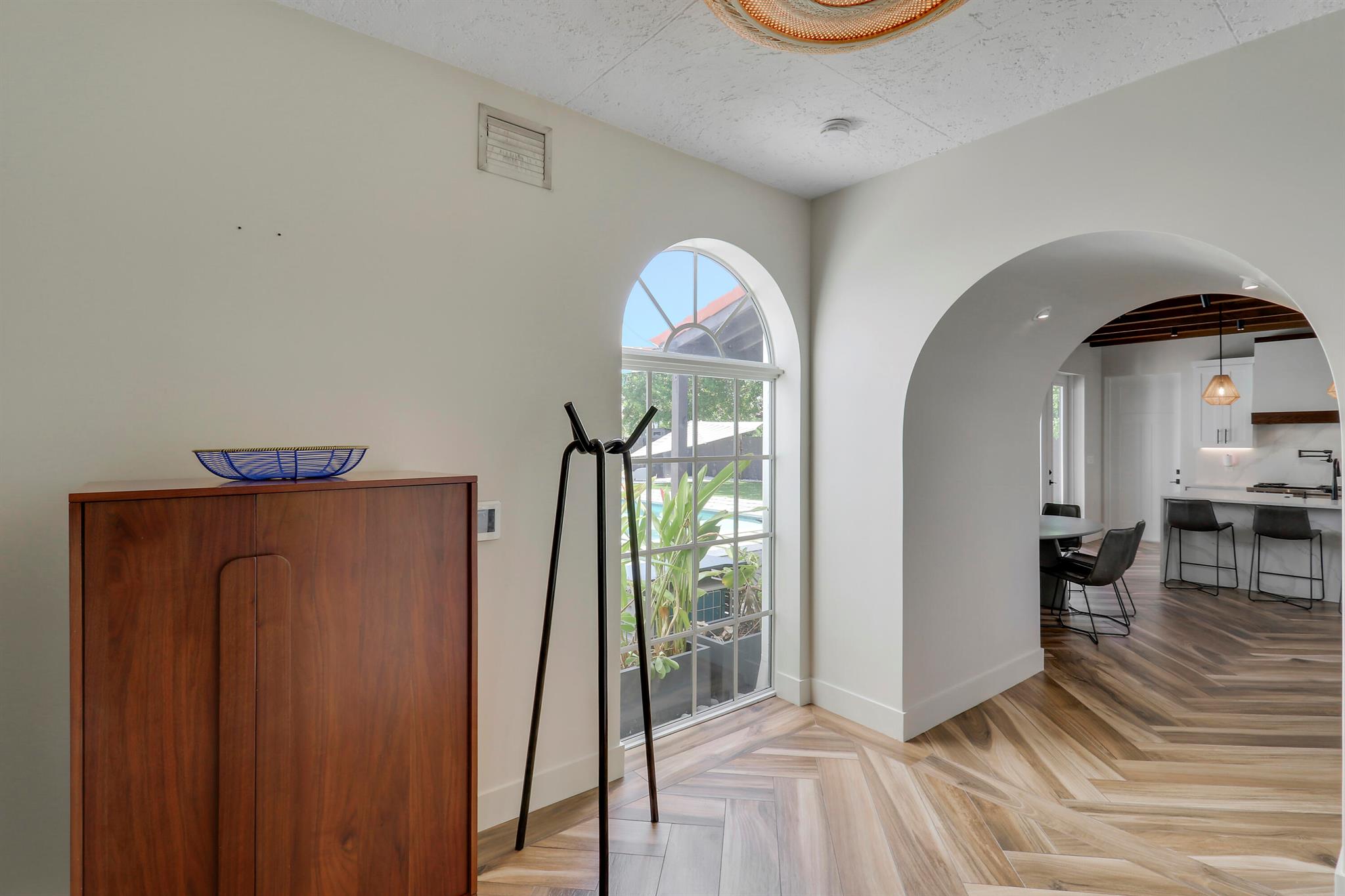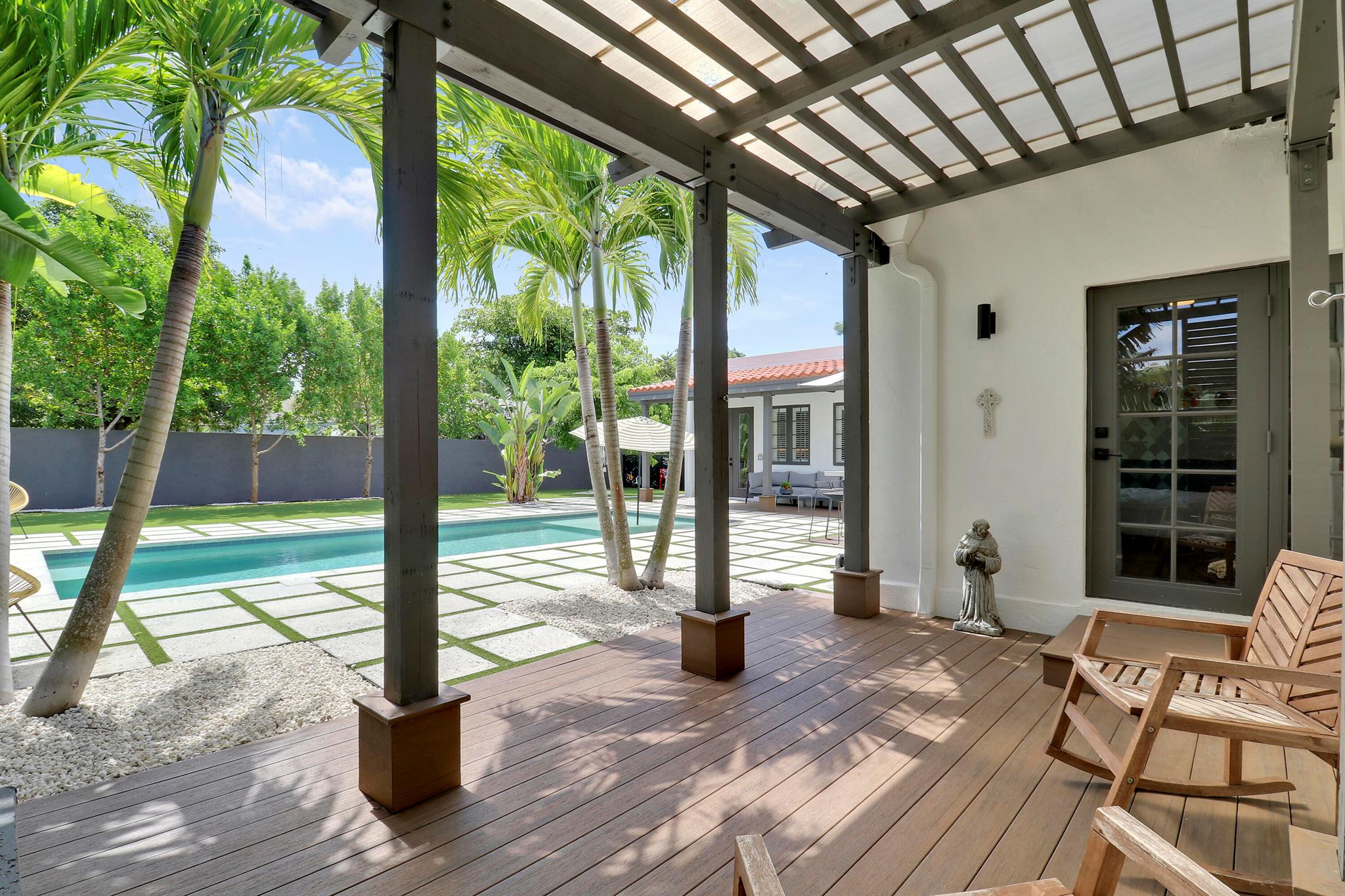 Step inside this 1925 Spanish Mission home in West Palm Beach's sought-after Flamingo Park, where historic character meets a full scale renovation. Every major system--from electrical and plumbing to foundation, roof, and windows--has been replaced, offering peace of mind while preserving historic charm. Sitting on a rare double corner lot, there's plenty of room to add an extra wing to the home or detached suite. Inside, you'll find arched doorways and windows, natural wood beams, herringbone tile floors throughout, and the original fireplace--all thoughtfully keeping the home's character alive. The stunning chef's kitchen and beautifully designed bathrooms, along with recessed lighting and smart home features, make daily living easy and modern.