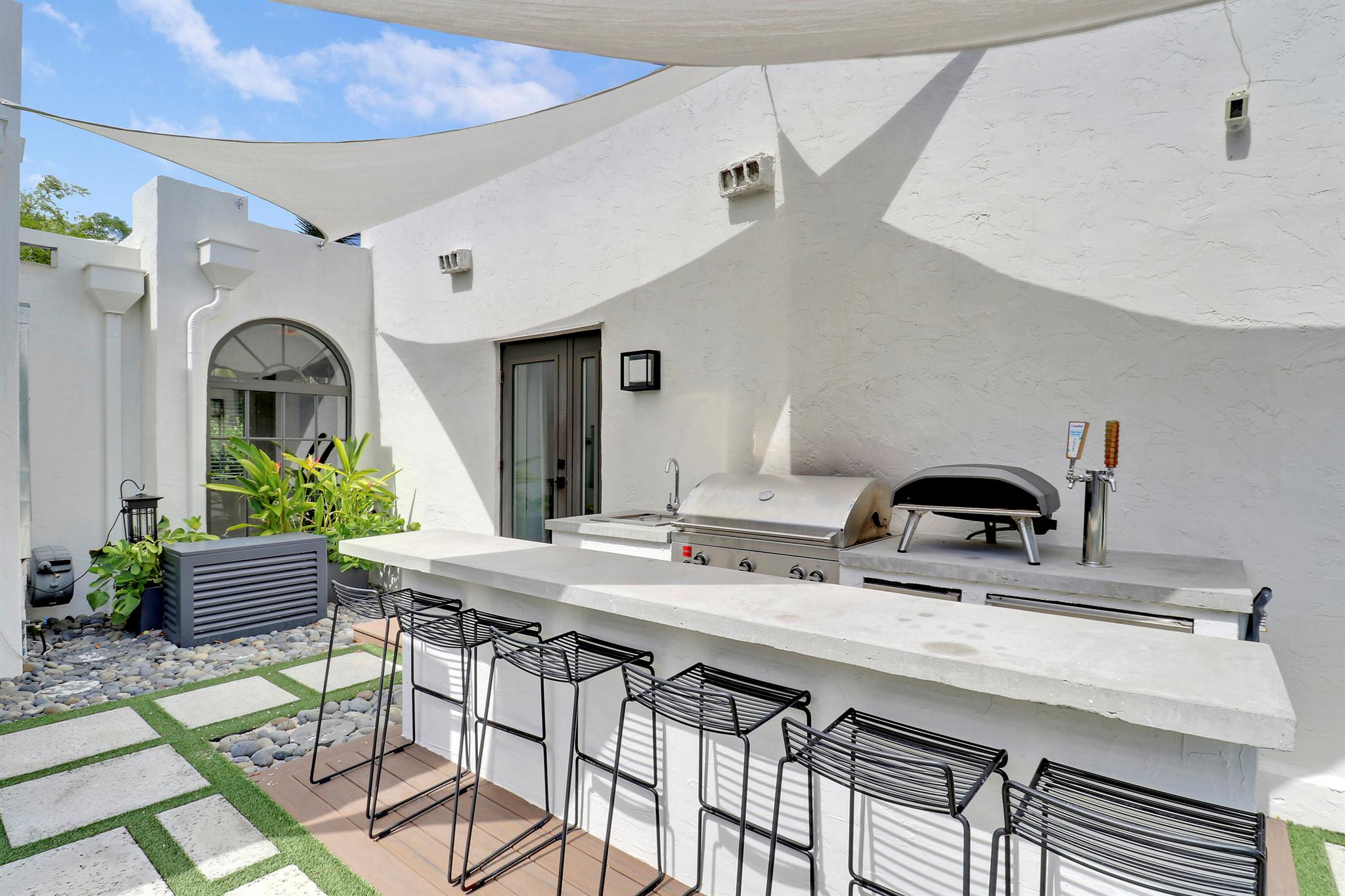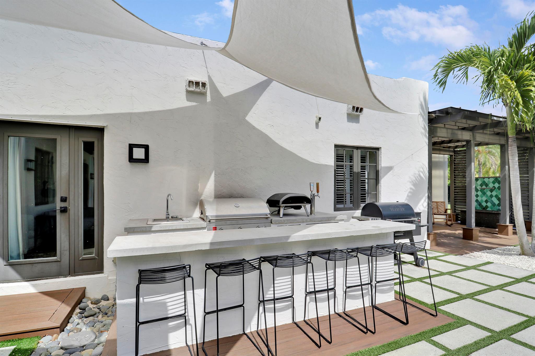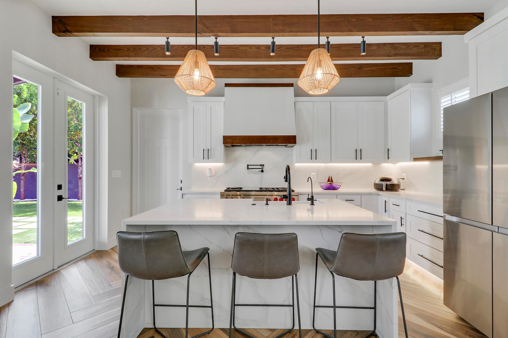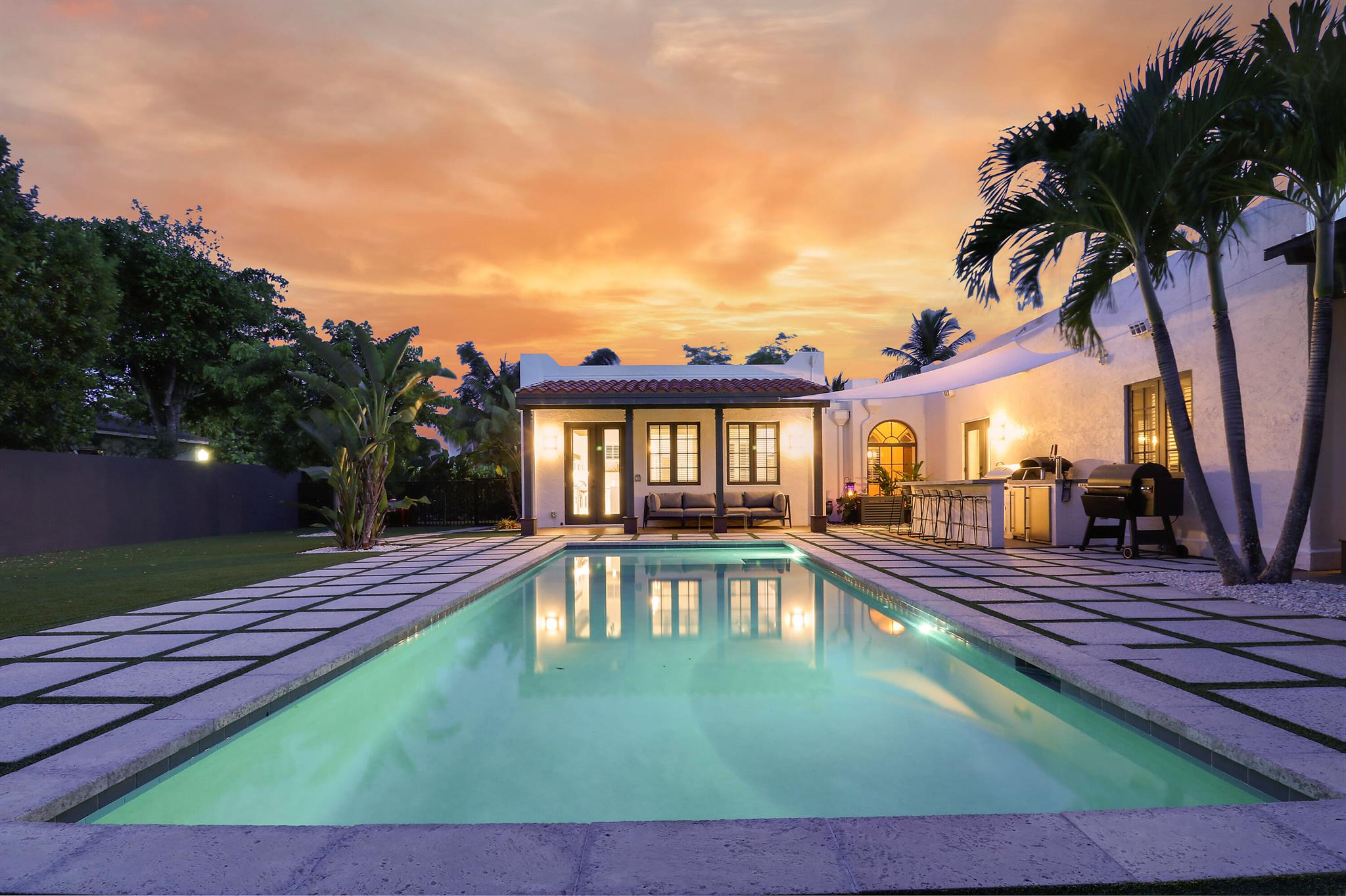 Step inside this 1925 Spanish Mission home in West Palm Beach's sought-after Flamingo Park, where historic character meets a full scale renovation. Every major system--from electrical and plumbing to foundation, roof, and windows--has been replaced, offering peace of mind while preserving historic charm. Sitting on a rare double corner lot, there's plenty of room to add an extra wing to the home or detached suite. Inside, you'll find arched doorways and windows, natural wood beams, herringbone tile floors throughout, and the original fireplace--all thoughtfully keeping the home's character alive. The stunning chef's kitchen and beautifully designed bathrooms, along with recessed lighting and smart home features, make daily living easy and modern.