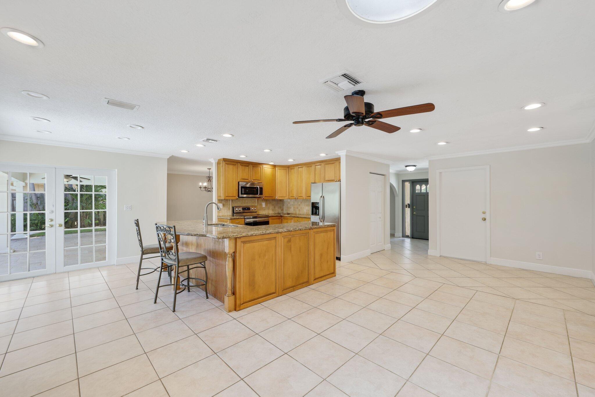 This beautifully maintained four-bedroom, two-bathroom split-bedroom home is located in the heart of Coral Ridge and offers exceptional style and comfort. At the center of the open-concept layout is a spacious kitchen featuring granite countertops and stainless steel appliances--both practical and functional, perfect for everyday living and entertaining. The home includes a formal family room at the front, along with a formal dining room, providing plenty of space for gatherings. Notable upgrades include a durable metal roof installed in 2020, along with hurricane impact windows and doors for added peace of mind. Step outside to your private outdoor oasis--an entertainer's dream--with a modern pool and elegant travertine flooring throughout the patio area. Make this exceptional home yours!