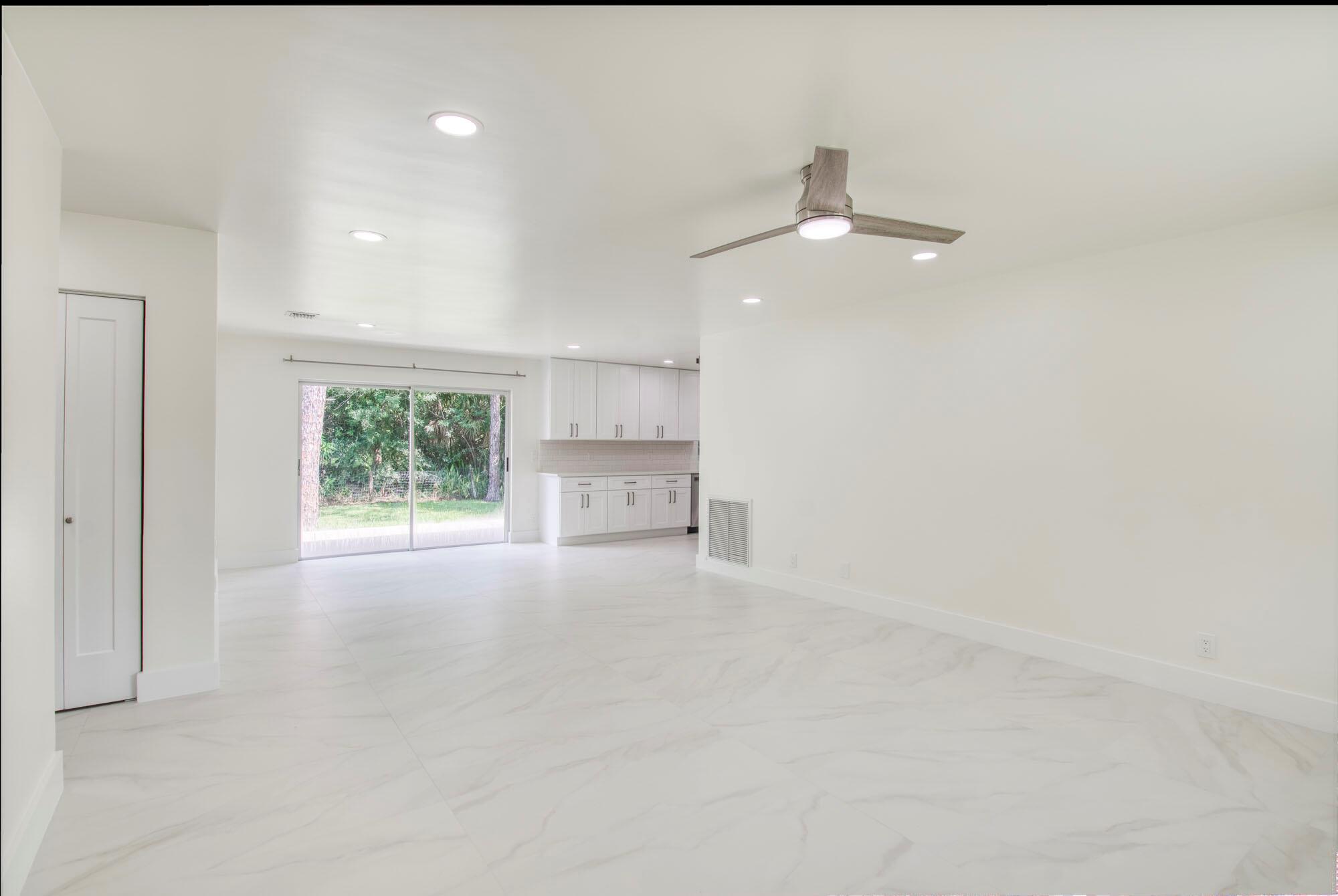 Beautifully renovated 3BD/2BA home located on a paved road in Loxahatchee Groves, just minutes from Royal Palm Beach and Wellington. Situated on a fully fenced 0.5-acre lot, this serene property offers agricultural/residential zoning, no HOA, and plenty of space for outdoor living. Major upgrades include a NEW roof, septic, water treatment system, A/C, hot water heater, impact windows, and a fully renovated kitchen, baths, and flooring. The open floor plan features sleek 24x48 matte porcelain tile and designer finishes throughout. The kitchen boasts quartz countertops, stainless steel appliances, custom cabinetry, and a large pantry. Step outside to a brand-new deck overlooking the private, tree-lined yard--ideal for relaxing or entertaining.