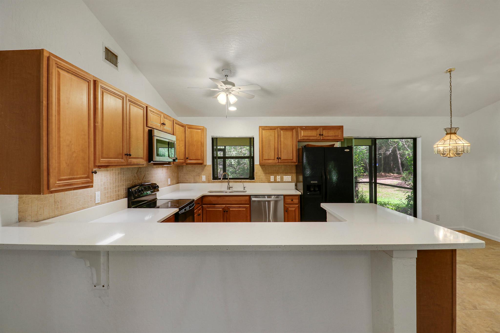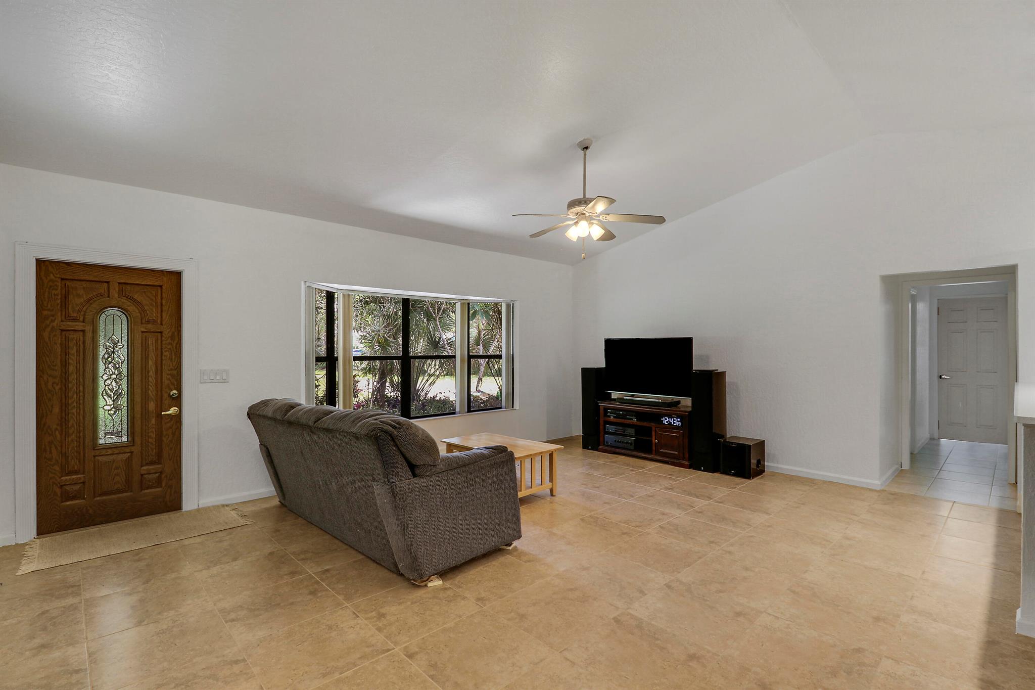 SERENE PRIVATE PROPERTY featuring 1.25 ACRES of LAND for your enjoyment in making this your home. NO HOA FEES which allows for endless opportunities for this property. This home is setback from the road with NICE TREES and a LARGE POND in the backyard. PLENTY OF SPACE for ENTERTAINING. This property features 3 bedrooms/2 bathrooms in a well desired area of JUPITER FARMS. SPLIT OPEN FLOORPLAN. BEAUTIFUL KITCHEN cabinets with upgraded countertops. DID I MENTION THE LARGE SCREENED IN PORCH OVERLOOKING THE BACKYARD POND as well as the PROPERTY HAS A BRAND NEW ROOF?