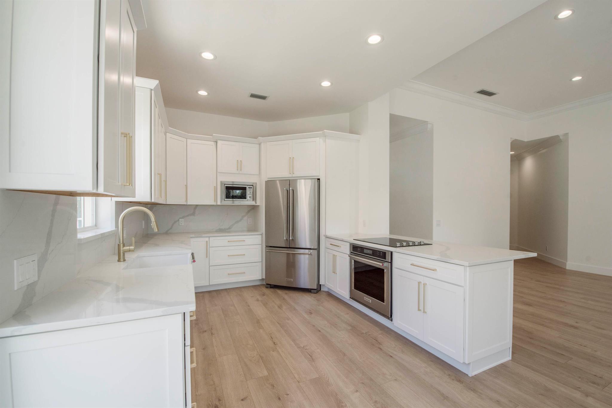Be the first to put your personal touch on this fabulous and superior newly renovated single family home located in the premier community of Oaks East. The gorgeous and spacious eat in kitchen features stunning white custom cabinetry throughout, brand new high end KitchenAid appliances, custom quartz countertops, farmhouse sink, new recessed lighting, a large peninsula open to the main living space perfect for entertaining, and a bonus built in bar/coffee space to enjoy while soaking up the spectacular lake views. The living and dining rooms offer tons of natural light, high ceilings, recessed lighting, durable and waterproof luxury vinyl plank transitionless flooring throughout, and wall to wall sliding glass doors that open onto your tiled screen enclosed