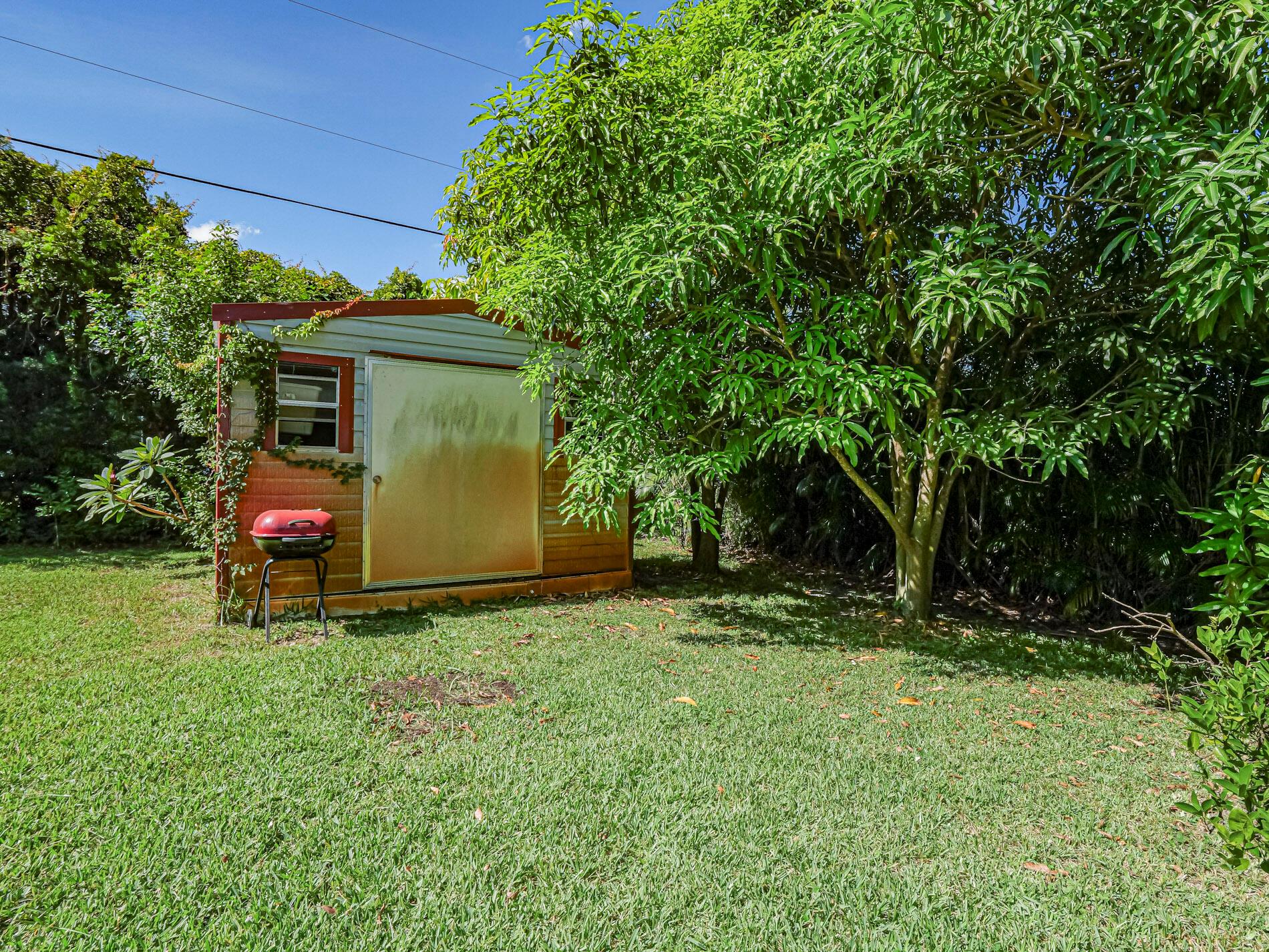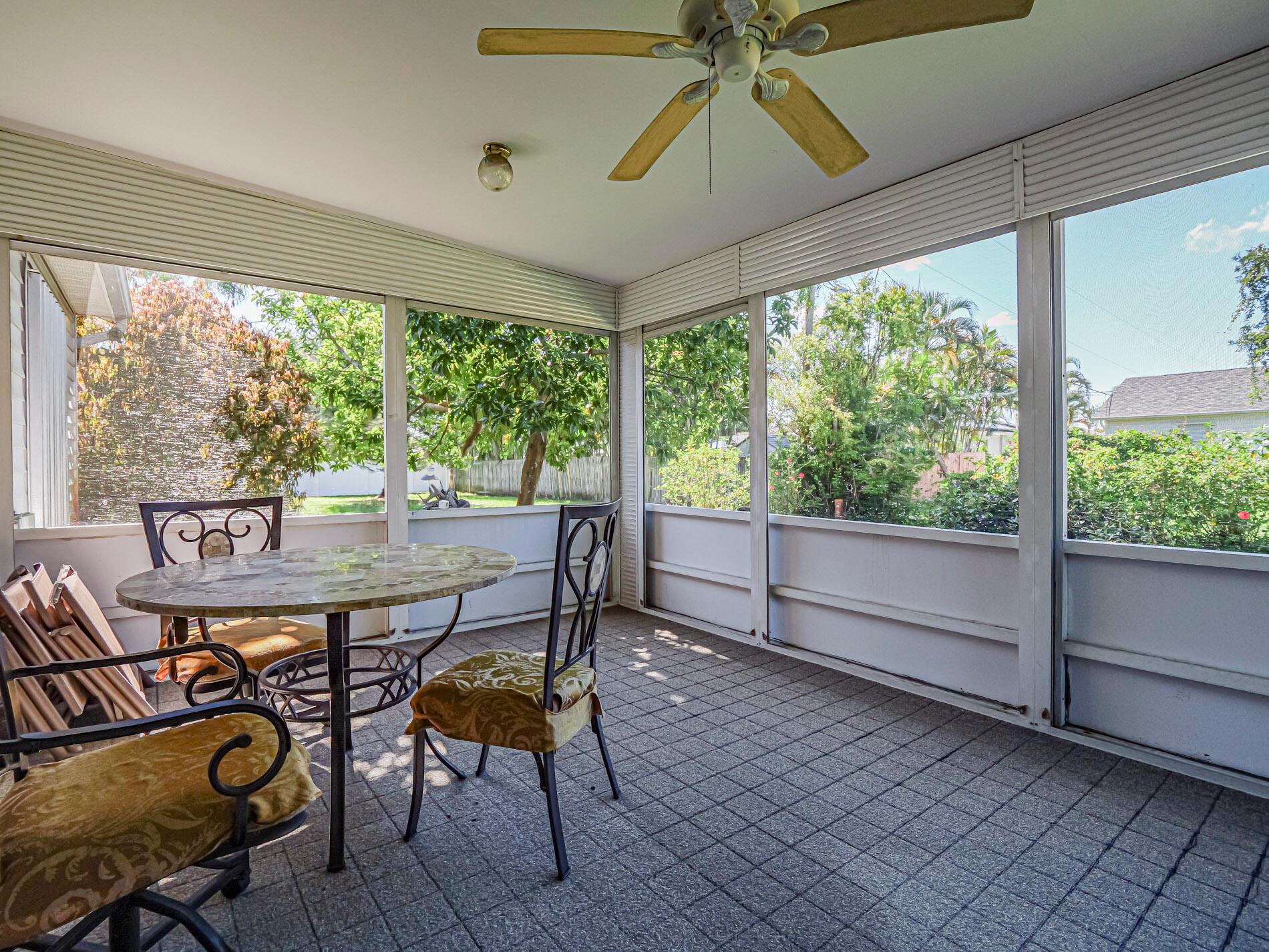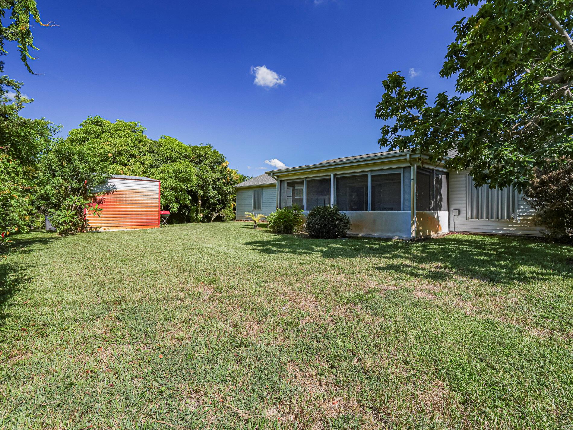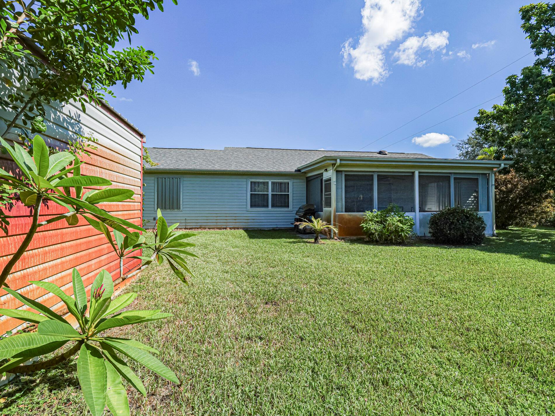 This is a must see! Welcome to this move in ready 3-bedroom, 2.5-bathroom home featuring a beautifully manicured yard with a 2 car garage with screen door. Enjoy the convenience of being minutes from shopping, dining, parks, and the beach. The backyard features fruit trees and a shed with a ramp. The living room, dining area and family room offer plenty of space for relaxation and hosting guests. Washer and dryer are included. The home boasts a screened front porch with tile flooring. The kitchen is equipped with granite countertops, and the living room, kitchen, and family areas all have tile flooring. The master bathroom has been recently renovated. 2023 roof. Screened back porch with pull-down hurricane shutters. This home is full of potential!