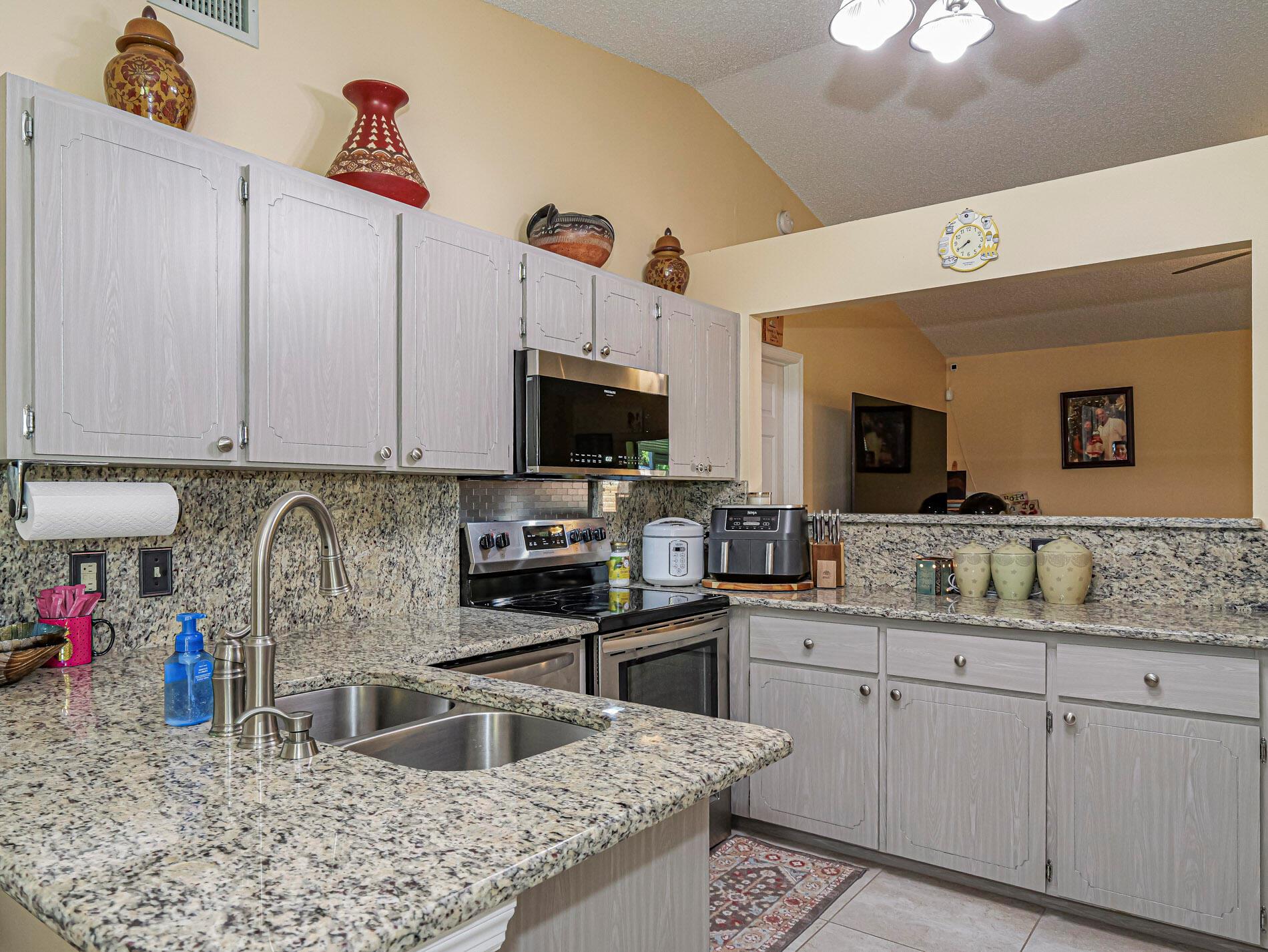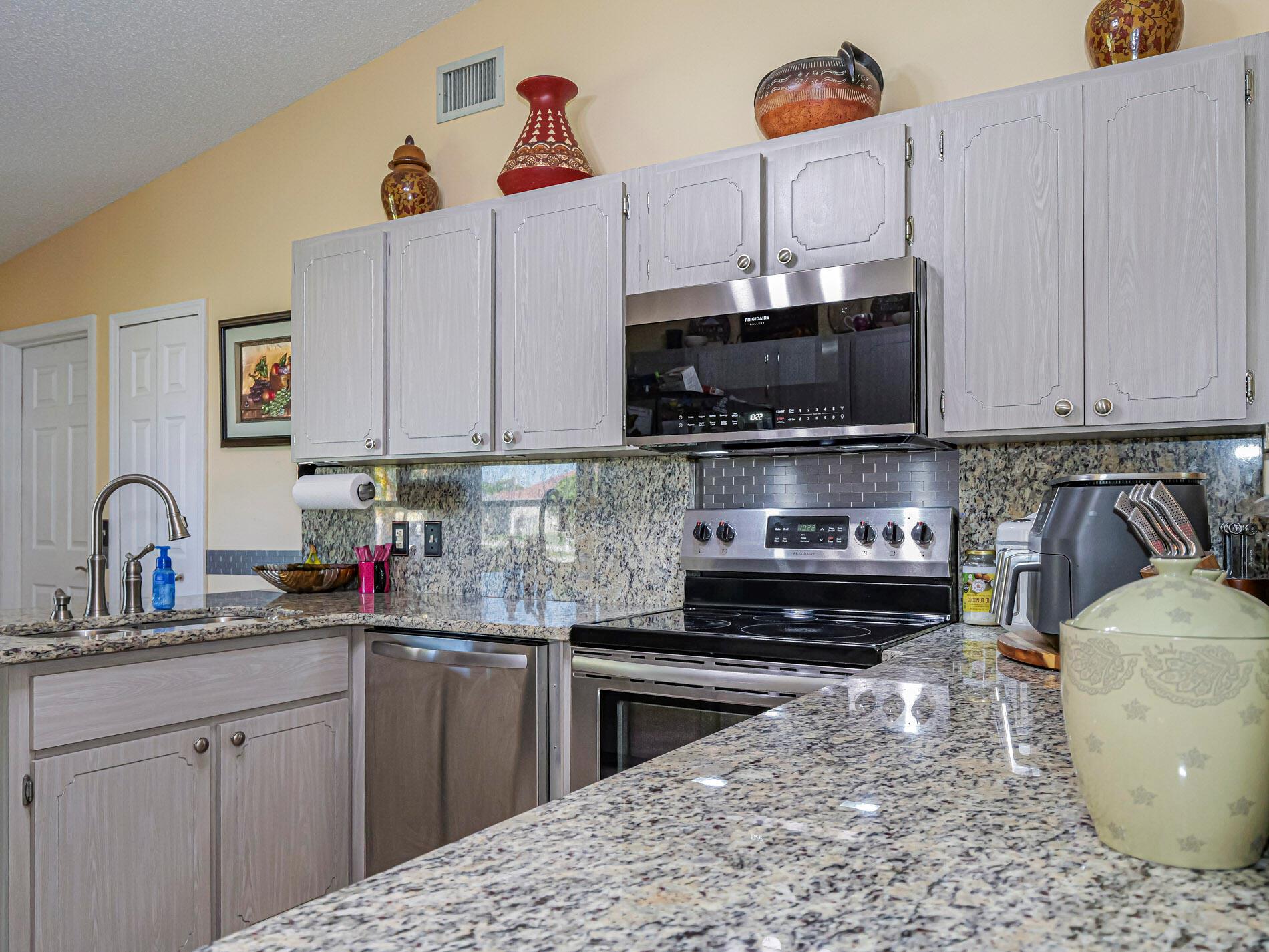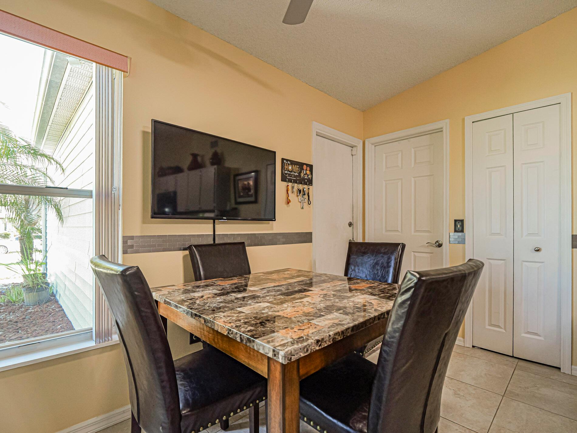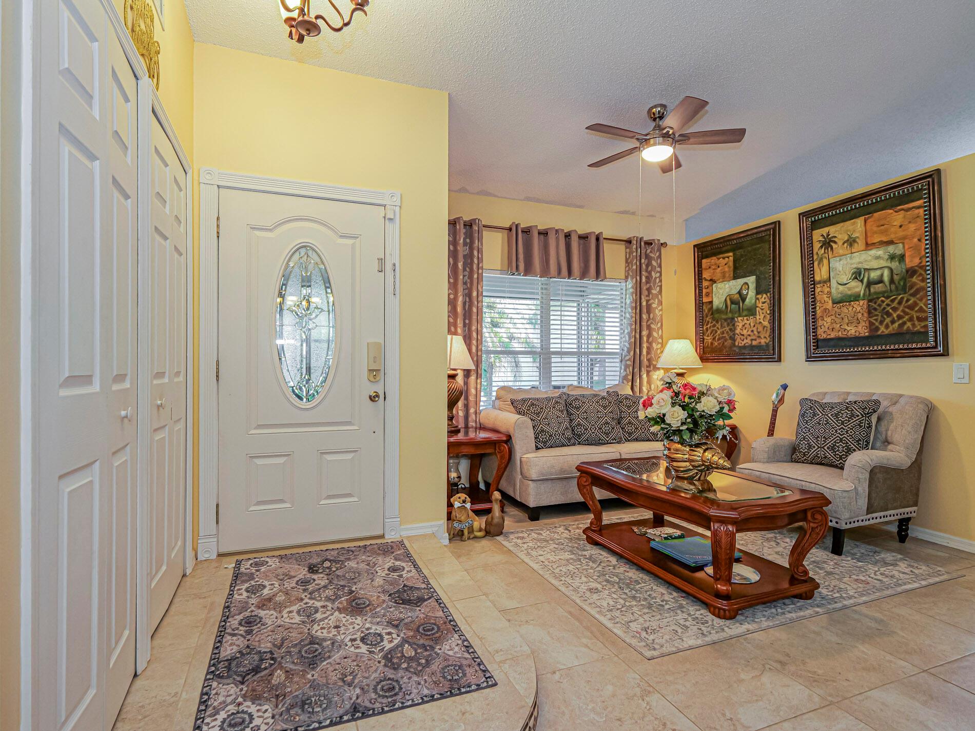 This is a must see! Welcome to this move in ready 3-bedroom, 2.5-bathroom home featuring a beautifully manicured yard with a 2 car garage with screen door. Enjoy the convenience of being minutes from shopping, dining, parks, and the beach. The backyard features fruit trees and a shed with a ramp. The living room, dining area and family room offer plenty of space for relaxation and hosting guests. Washer and dryer are included. The home boasts a screened front porch with tile flooring. The kitchen is equipped with granite countertops, and the living room, kitchen, and family areas all have tile flooring. The master bathroom has been recently renovated. 2023 roof. Screened back porch with pull-down hurricane shutters. This home is full of potential!