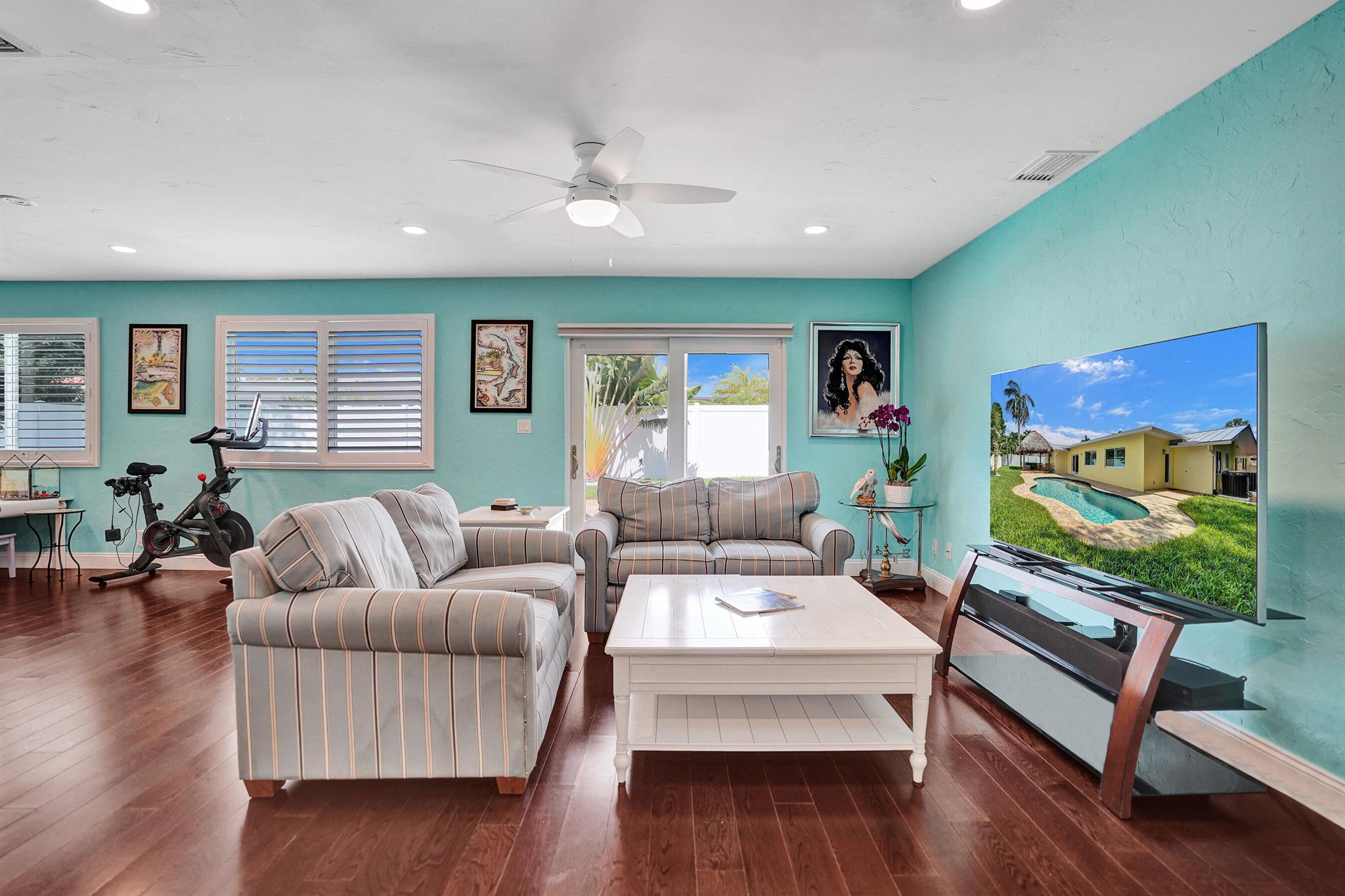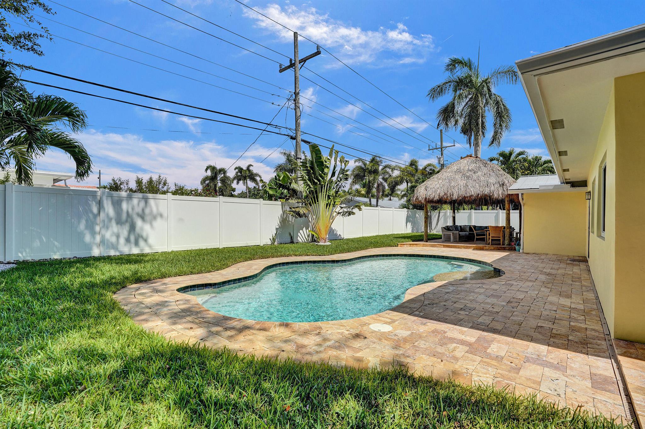 Live the ultimate East Boca lifestyle in this stunning, move-in ready home just minutes from the beach and located in one of Boca Raton's top-rated school districts. With no HOA, this property offers rare freedom in one of the area's most desirable neighborhoods.Designed for both comfort and entertaining, this 3-bedroom, 2-bath concrete block home features a sprawling floor plan with multiple living areas, a huge chef's kitchen with newer appliances and a bonus room off the kitchen perfect for an office or playroom. The primary suite boasts a brand-new master bath (2025), while recent upgrades include a remodeled laundry room (2025), all new interior doors (2025), and custom closets throughout.Step outside to your private backyard paradise with a custom pool, tiki hut, child