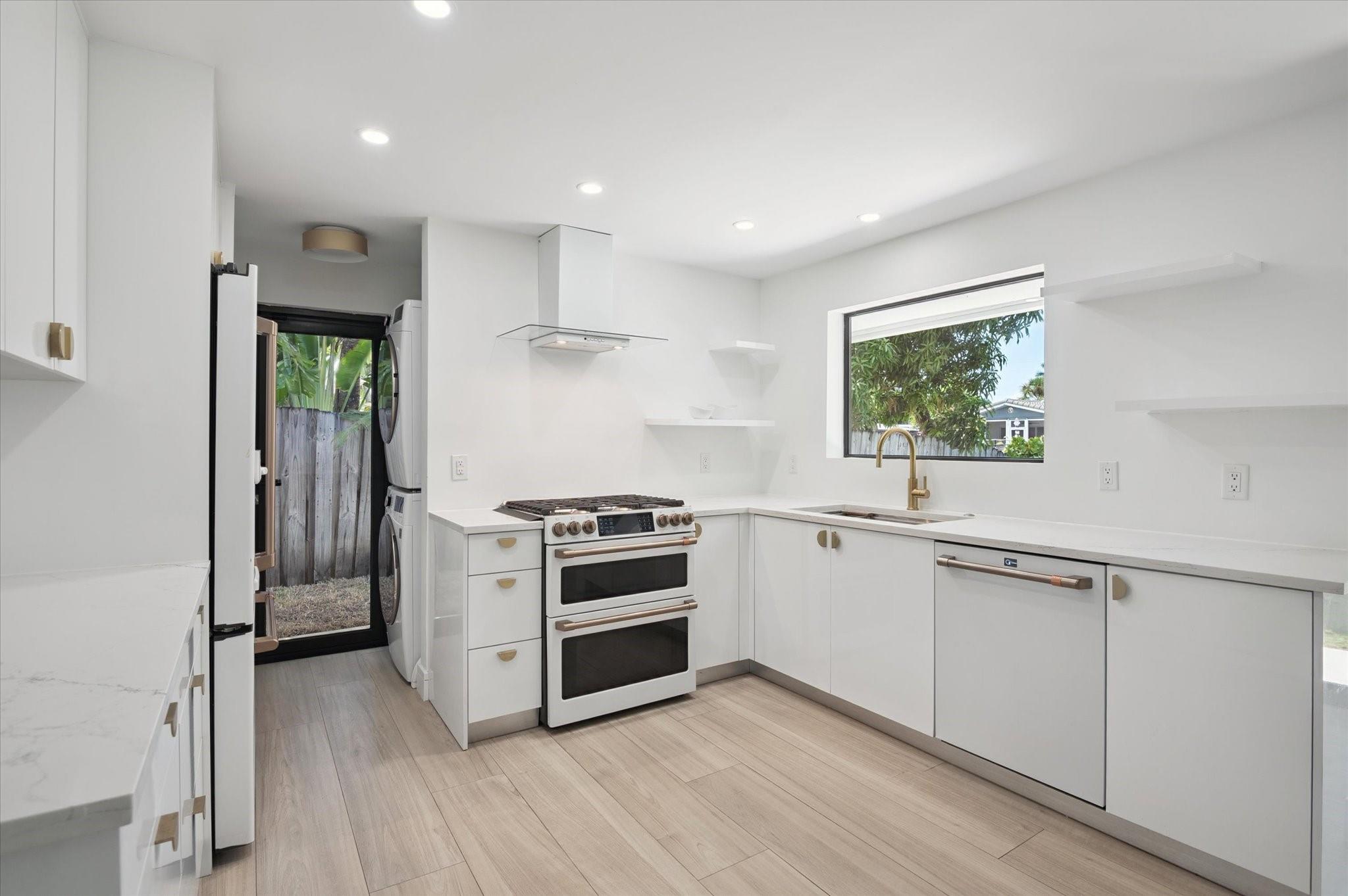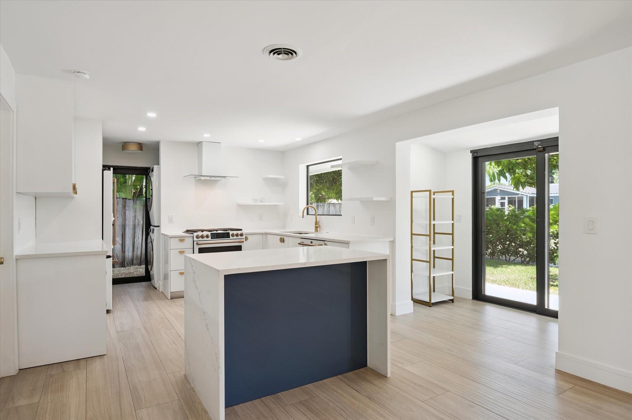 Gut renovated 3 bedroom, 2 bath, waterfront home on quiet street in one of Fort Lauderdale's hottest locations. Designer finishes throughout. Home was completely remodeled with new roof, new electrical, all new impact doors and windows, new AC, new kitchen with beautiful matte white with bronze appliances, gas range, porcelain flooring, new designer bathrooms and more! Beautifully designed open floor plan with incredible natural light. Enjoy the nice water view in the private backyard with room for a pool. This one will go fast!