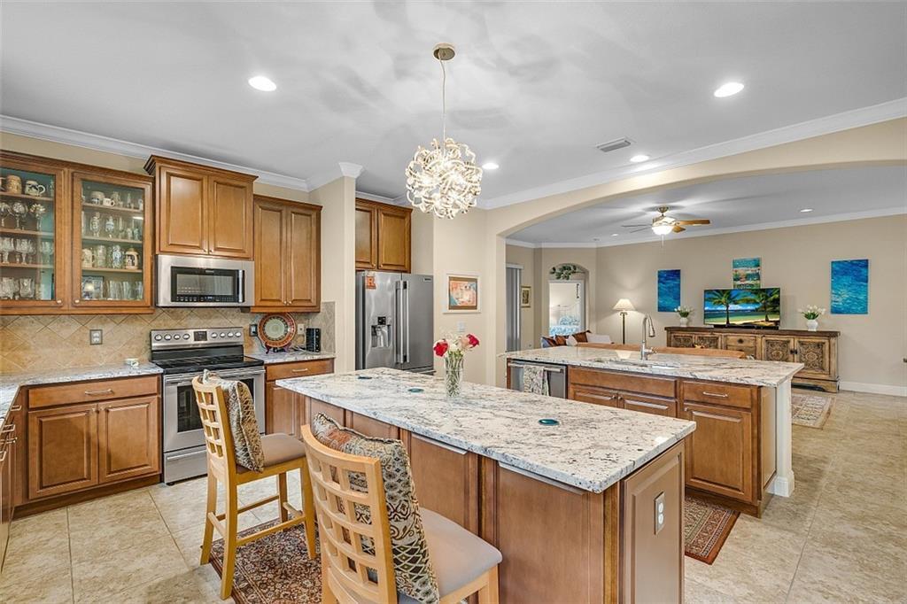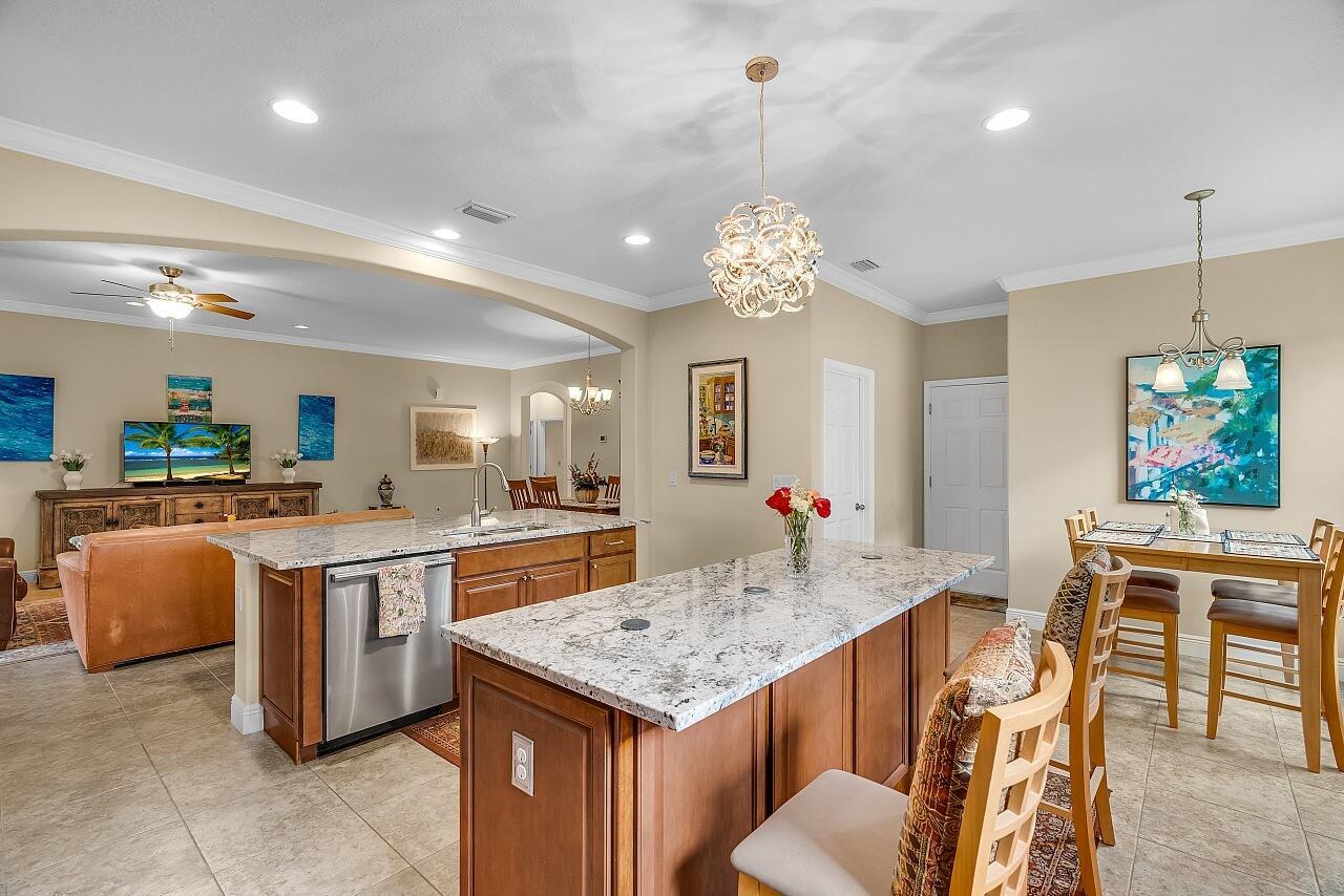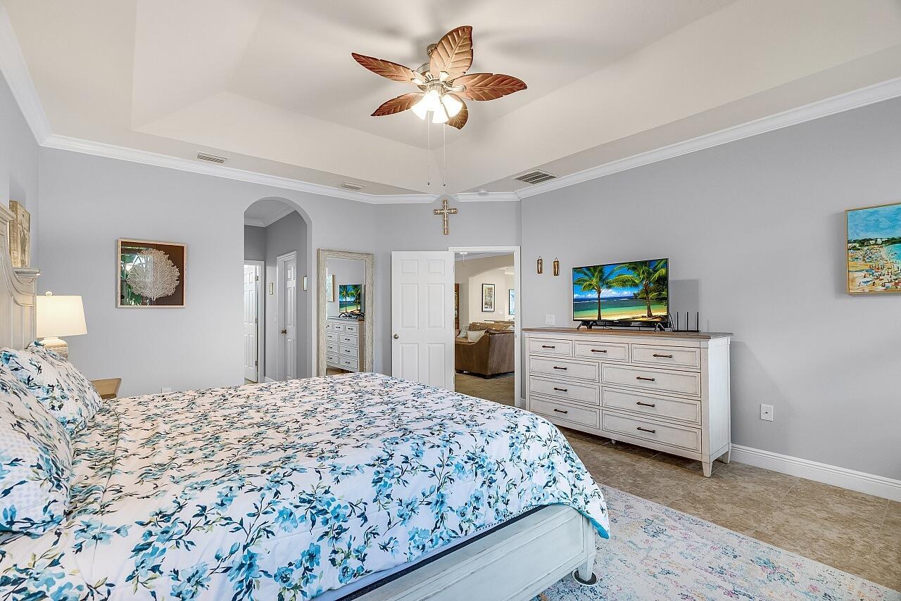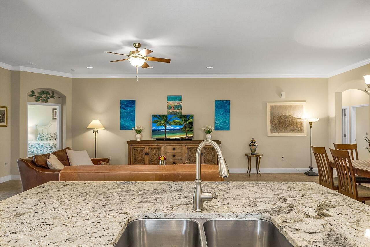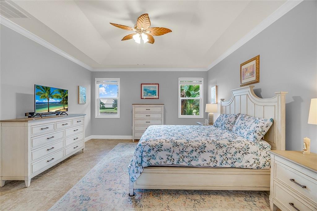 Wake up to sparkling lakefront fountain views and unwind on your screened lanai--Florida living at its best! This beautifully maintained 3BR/3BA home with a 3-car garage sits on a serene lakefront lot in one of Vero Beach's most sought-after communities. The triple split floor plan offers exceptional privacy, while the open kitchen features an oversized island, upgraded cabinetry, stainless appliances, and granite counters--perfect for entertaining. Upgrades include crown molding, tile throughout, and a whole-house generator. Enjoy lush landscaping, space for a pool, and resort-style amenities: heated pool, spa, fitness center, tennis, and clubhouse. Minutes to beaches, dining, and shopping, this home blends elegance, comfort, and location in one perfect package.
