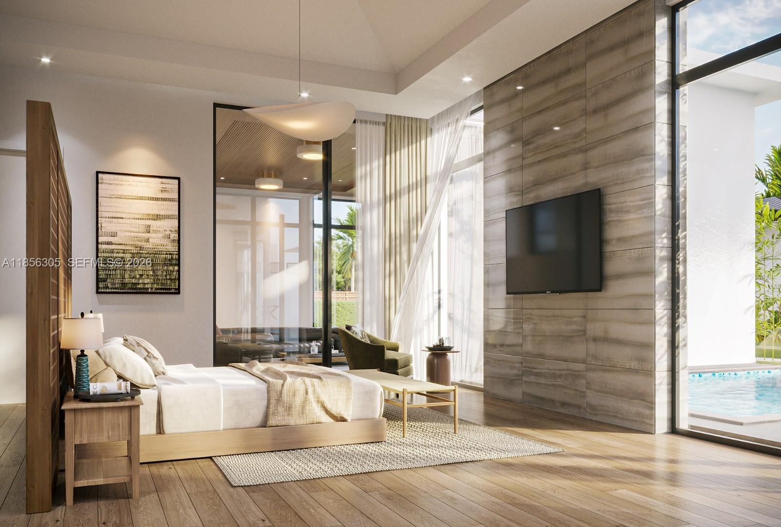 One-of-a-Kind Architectural Masterpiece – Designed by famed Affinity Architects, this 6BR, 6BA, 3HB estate is situated on over 2 acres of land offering refined living with exceptional design. The flexible layout allows for 7+ bedrooms. This rare and unforgettable Bali inspired architecture blends natural materials, open layouts, and intricate craftsmanship, focusing on nature through walled compounds of separate pavilions for different functions, creating indoor-outdoor living with abundant ventilation and connection to gardens overlooking a pool, shaded lounge, and spa. Amenities include: a wellness room with sauna, private movie theatre, 2 family rooms, staff quarters, mud room, and 2 laundry rooms. A 4-car garage plus guest parking ensures ample space. Every detail reflects quality craftsmanship, timeless style, and a seamless connection between indoor and outdoor living.