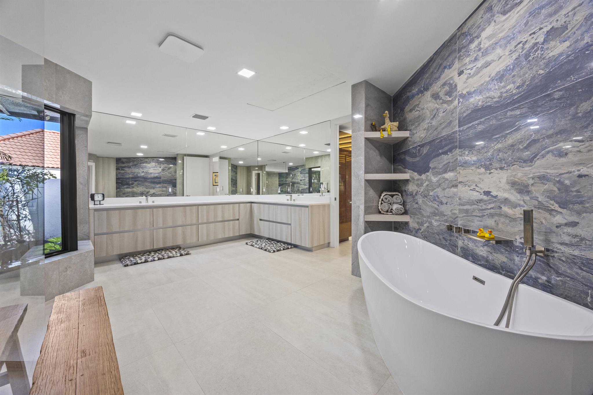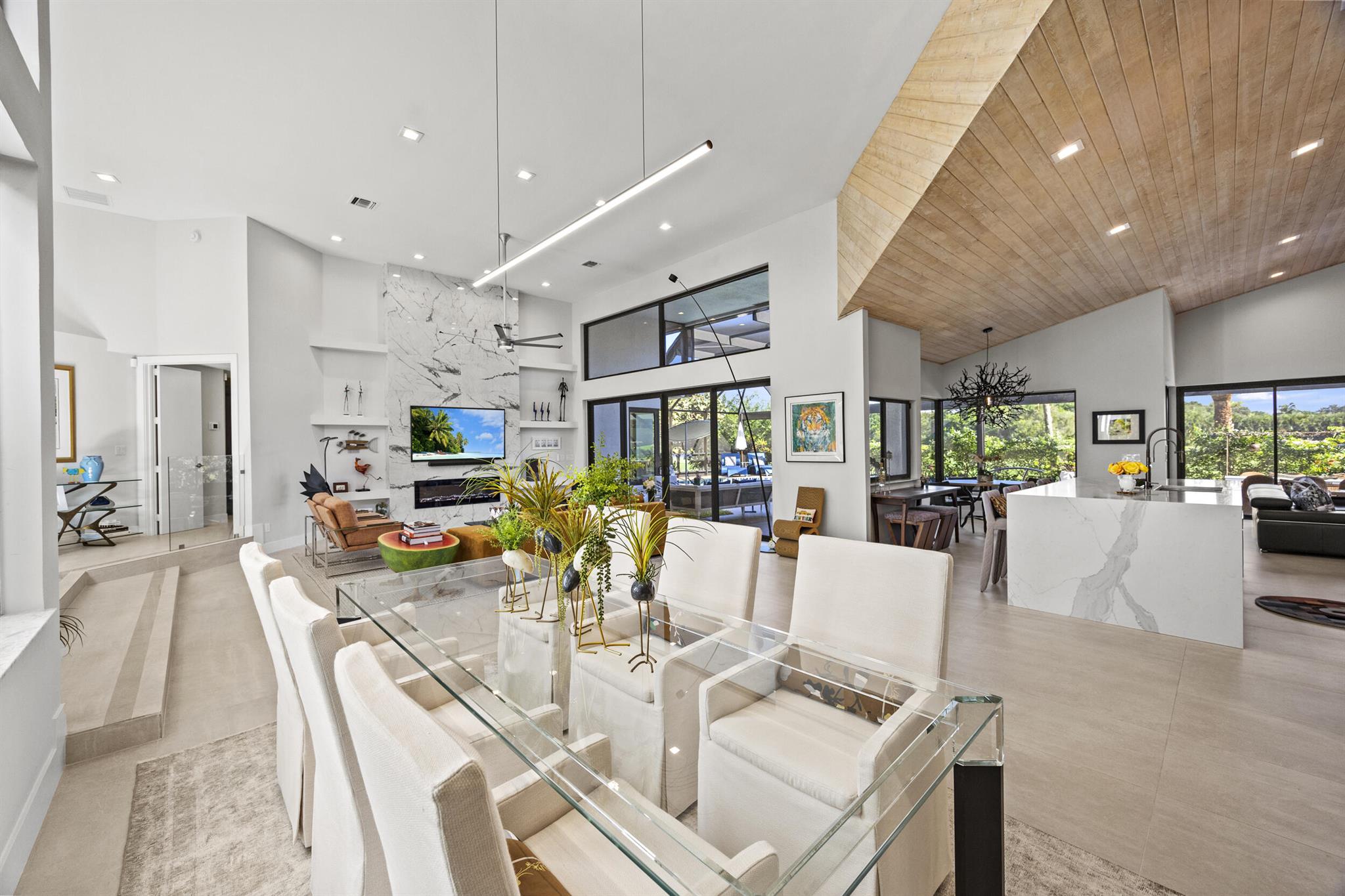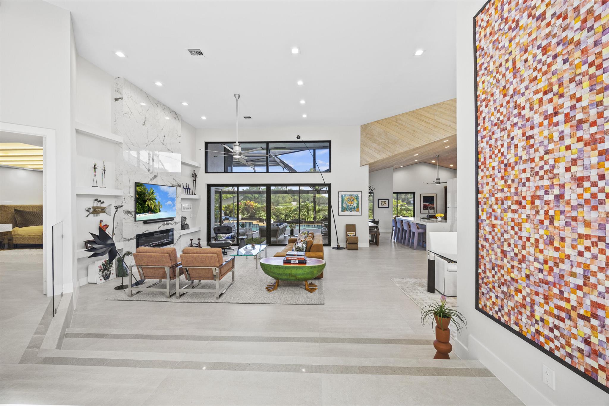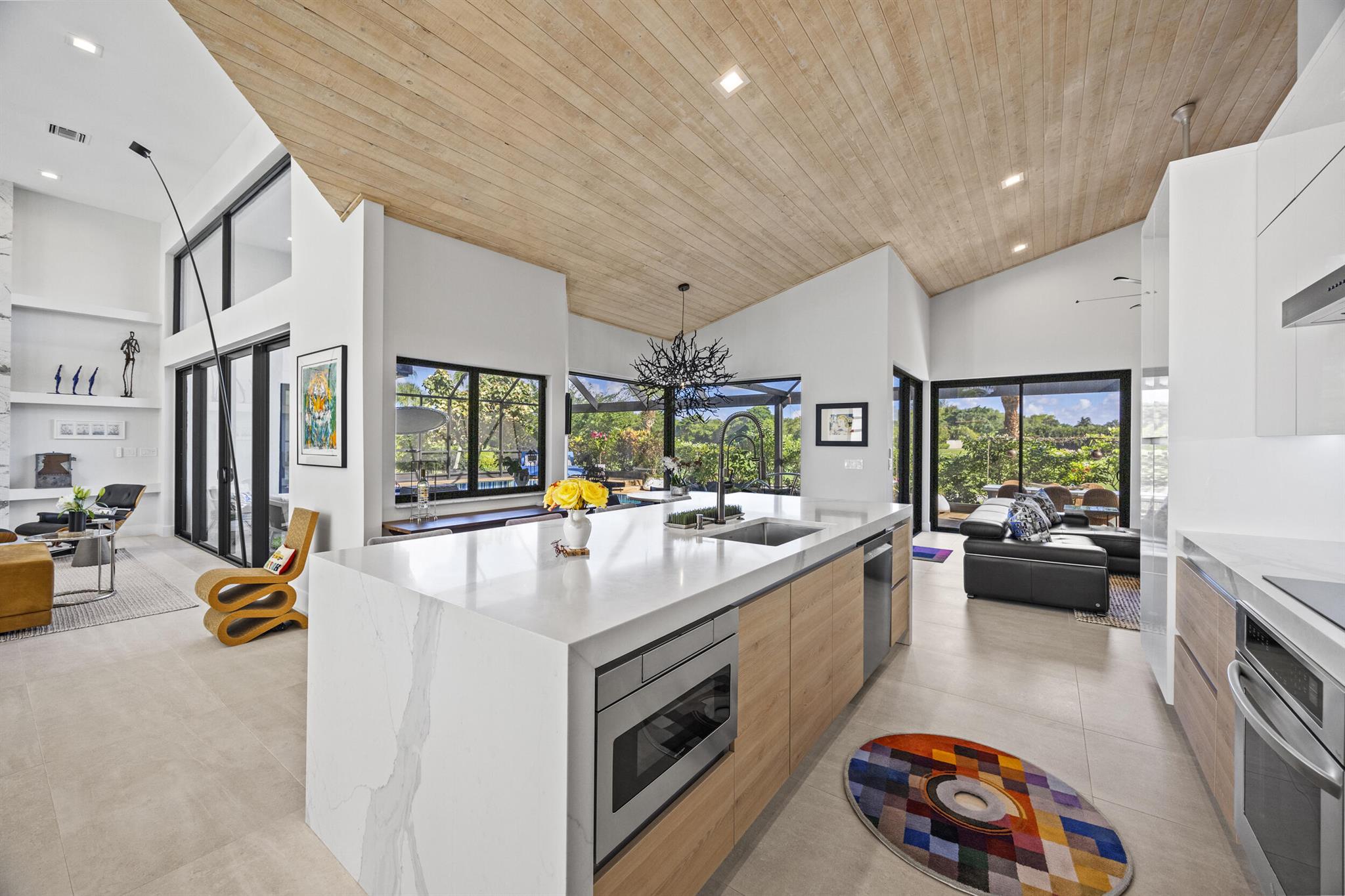 Step into a world of unparalleled elegance and luxury, where every detail has been artfully designed. This exquisite 4bd/4.1ba home has been completely remodeled with the finest designer finishes, blending sophistication and style at every turn. The kitchen, a masterpiece in itself, boasts high-end cabinetry, top-tier appliances, and a striking accent wood ceiling that extends seamlessly into the family room, complete with custom built-ins and a large wine refrigerator for the discerning connoisseur.Gleaming porcelain floors guide you through this stunning home, enhanced by tastefully designed accent walls and lighting that create an inviting atmosphere throughout. The primary suite is a sanctuary of serenity, featuring a (click 'more')