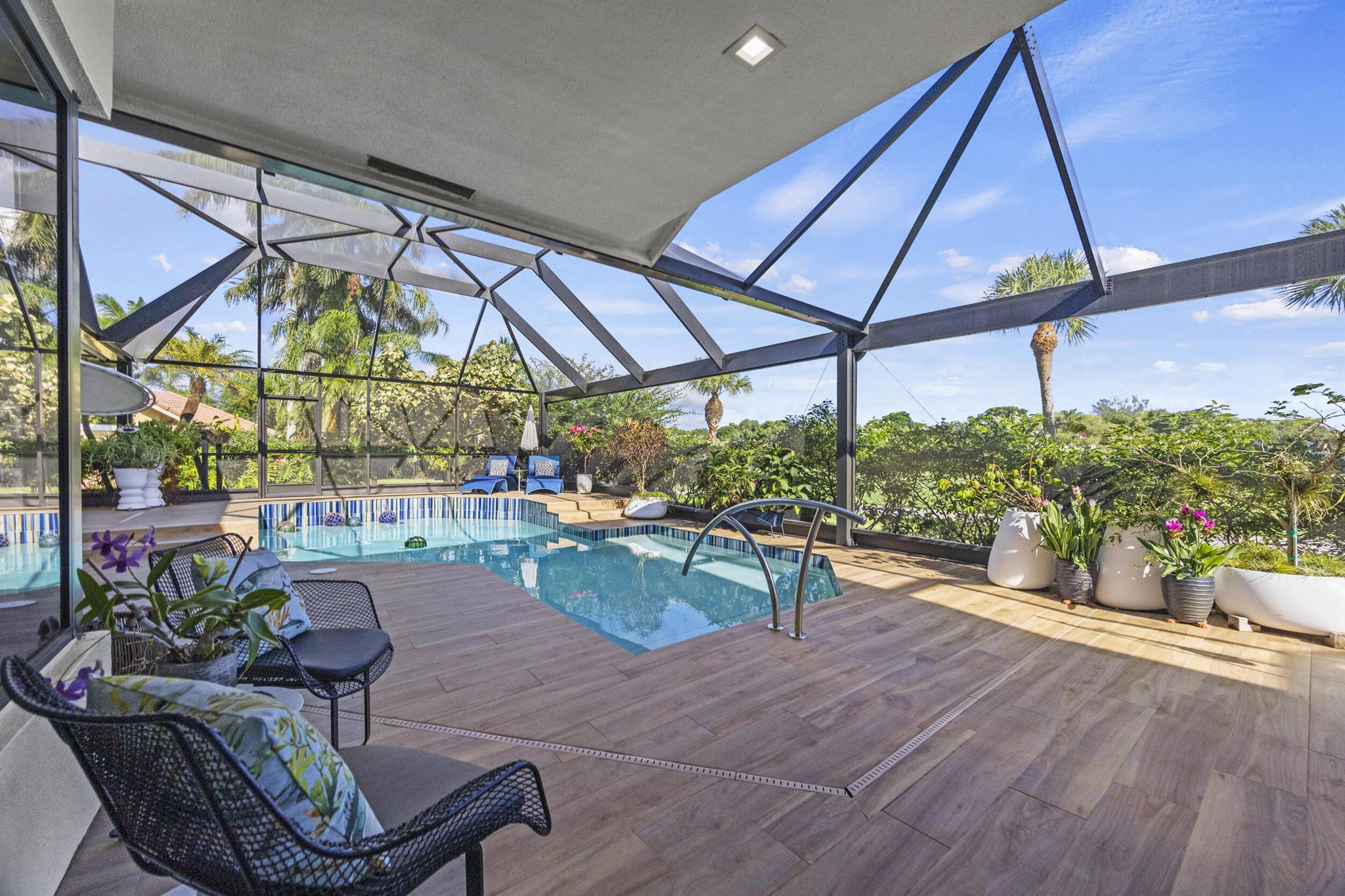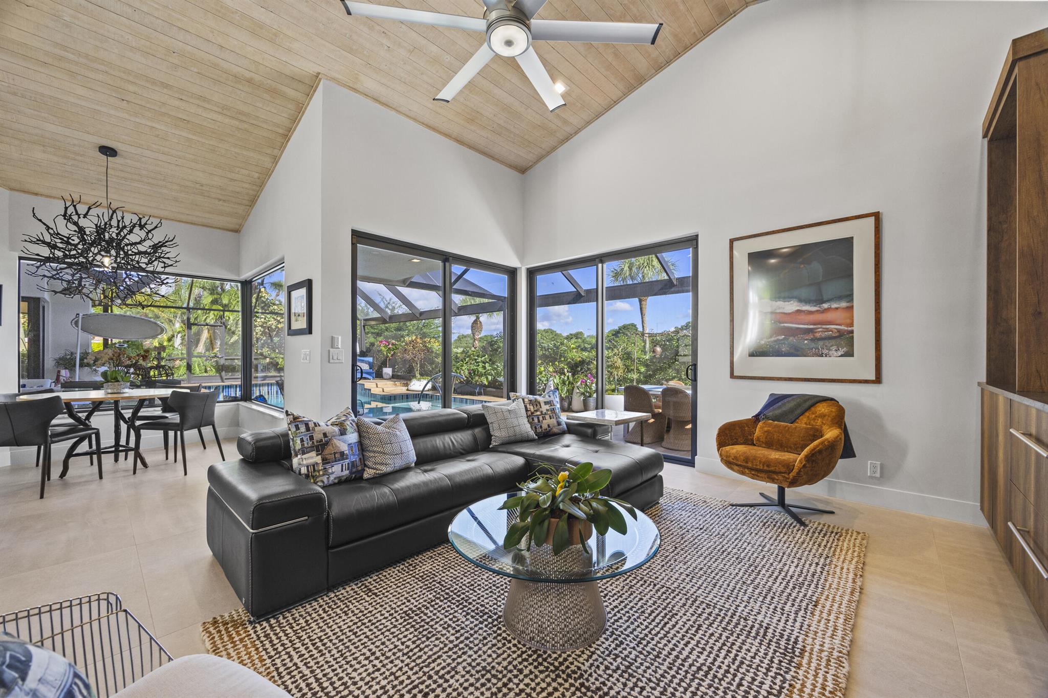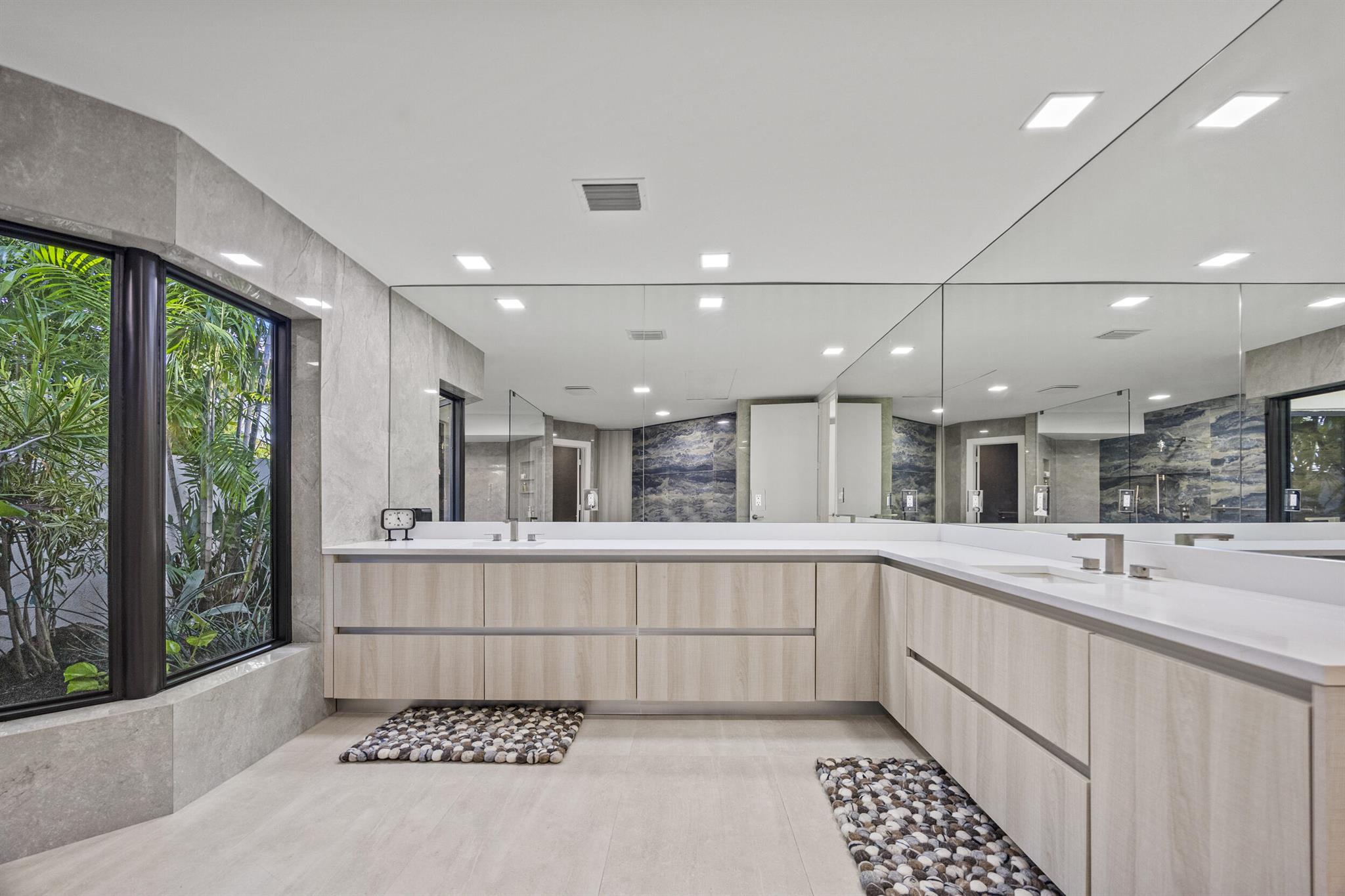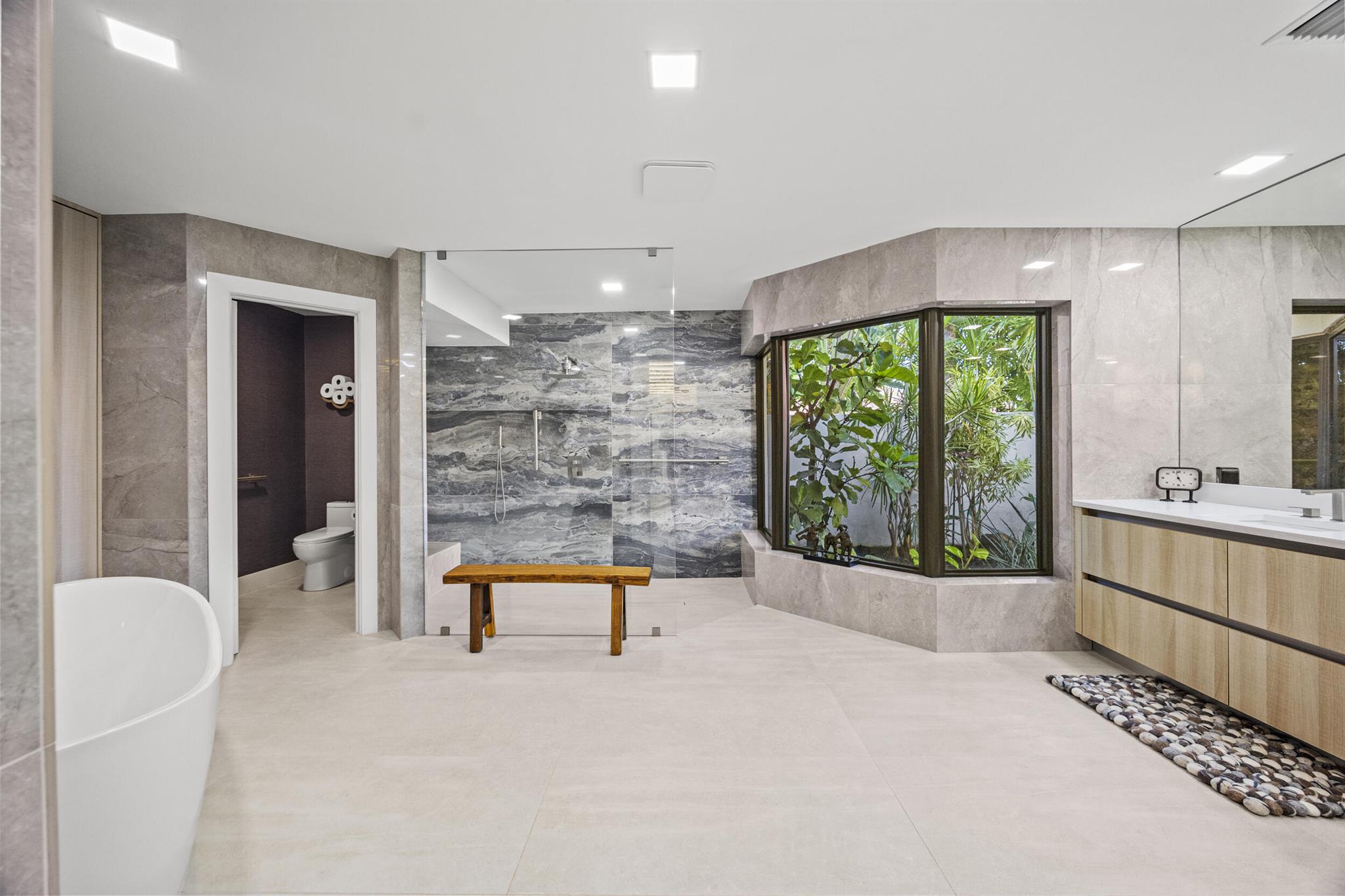 Step into a world of unparalleled elegance and luxury, where every detail has been artfully designed. This exquisite 4bd/4.1ba home has been completely remodeled with the finest designer finishes, blending sophistication and style at every turn. The kitchen, a masterpiece in itself, boasts high-end cabinetry, top-tier appliances, and a striking accent wood ceiling that extends seamlessly into the family room, complete with custom built-ins and a large wine refrigerator for the discerning connoisseur.Gleaming porcelain floors guide you through this stunning home, enhanced by tastefully designed accent walls and lighting that create an inviting atmosphere throughout. The primary suite is a sanctuary of serenity, featuring a (click 'more')