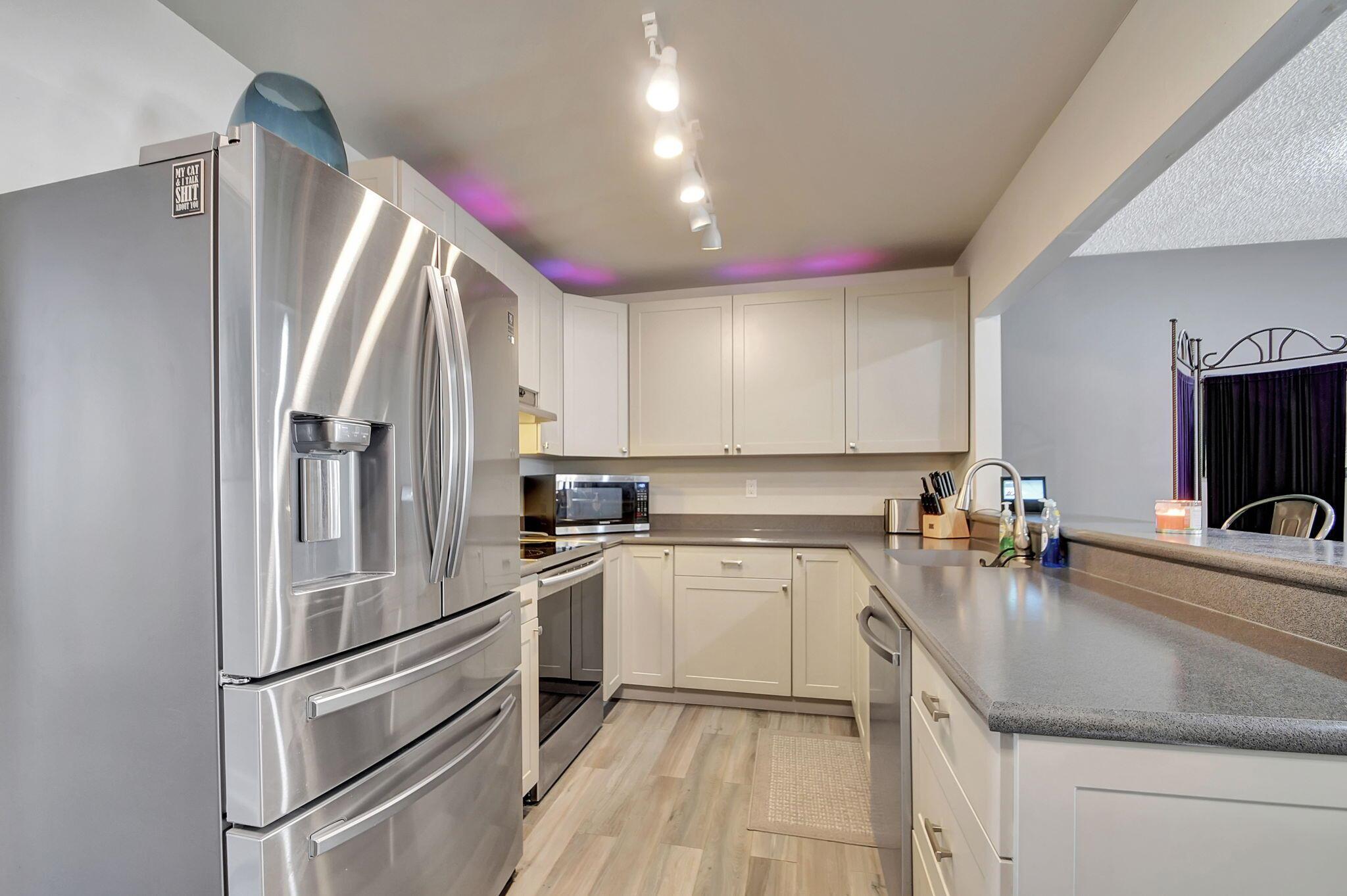 Welcome to this meticulously maintained and completely renovated 3 bed 2 bath + BONUS ROOM with oversized driveway for 3-5 cars. With Over 1600 sqft under air, no detail has been overlooked inside and out. All new flooring and baseboards in every room, the kitchen wall opened to make the room feel even bigger. All stainless steel Samsung appliances. 3 huge glass sliders and a glass block wall in the shower that brings in a ton of natural light. New AC, new fence, new hot tub, new electrical box, new gutters, and that's just to name a few of the many upgrades. Backyard is perfect for entertaining with its tranquil fountain and tropical landscape. Front and side yard redone to provide a low maintenance property with an even lower HOA at just $165. Also all Furniture negotiable.