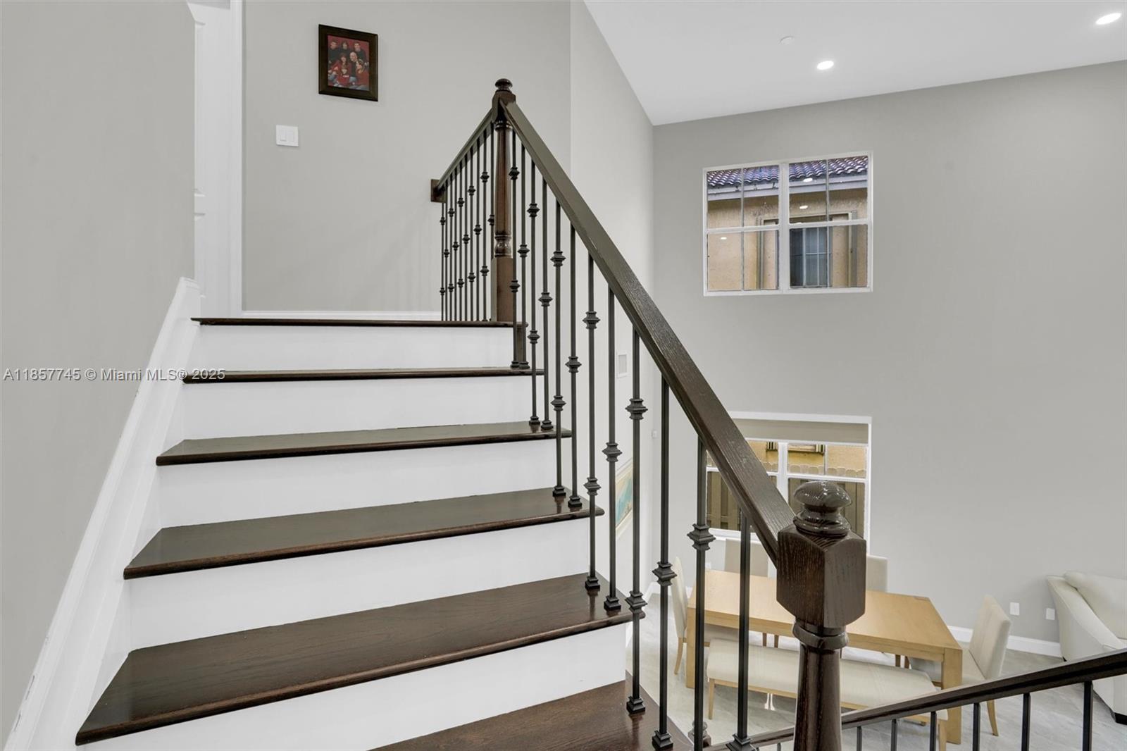 Magnificent lakefront home, lovingly maintained by its original owners and completely remodeled with many upgrades over the last years. Features include a 2-year-old barrel tile roof, accordion hurricane shutters, and new PEX-A plumbing throughout. The gourmet kitchen boasts a massive 8.5' x 5' quartz island, double ovens, newer appliances, and quartz countertops in both kitchen and baths. Elegant, oversized porcelain tile floors flow through the first floor, while upstairs showcases a beautifully redone hardwood staircase and hardwood floors in the loft. Freshly painted exterior, zebra blinds, spacious closets, and updated systems, including an improved AC, ensure comfort and peace of mind. Enjoy serene water views, community amenities, and a true turnkey property with countless extras.
