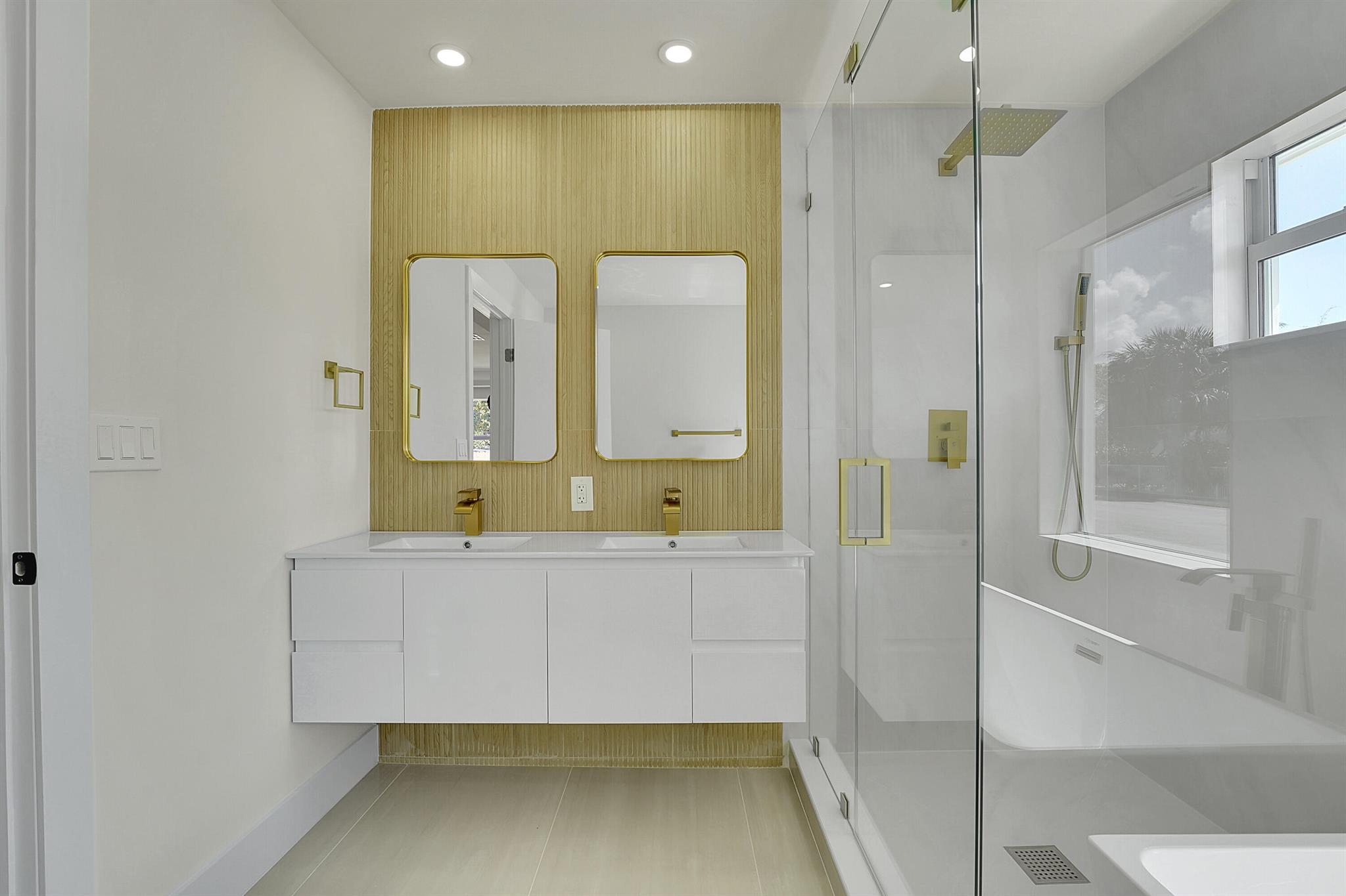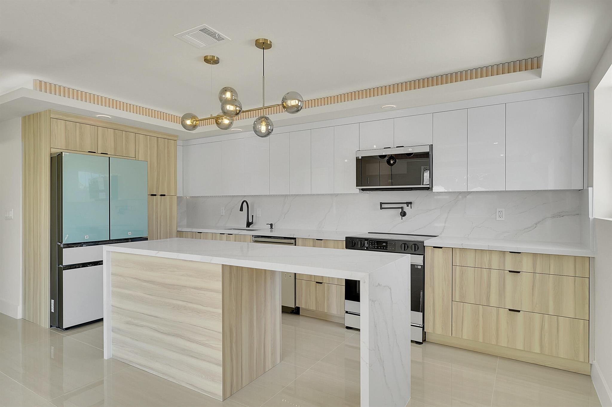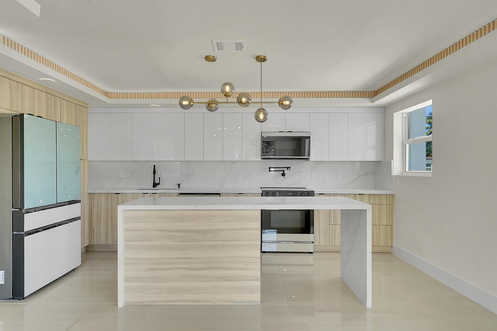 Beautiful, luxurious designed single-family home located five mins from vibrant downtown WPB. This complete interior and exterior remodel embodies a 2024 central A/C system, a new roof, and custom impact windows with premium LED soffit lights. Elaborate, bright living room featuring new tile flooring and that enhances the sense of space. This custom made kitchen is equipped with top of the line Samsung Bespoke appliances, a waterfall Quartz center island, and elegant white cabinetry with stylish pendant lighting. The outdoor space includes a patio, ideal for entertaining or enjoying a quiet evening. This turnkey home is personally crafted with a layout that is the perfect blend of a premium comfort with the convenience of location and proximity to i-95 and the beach.