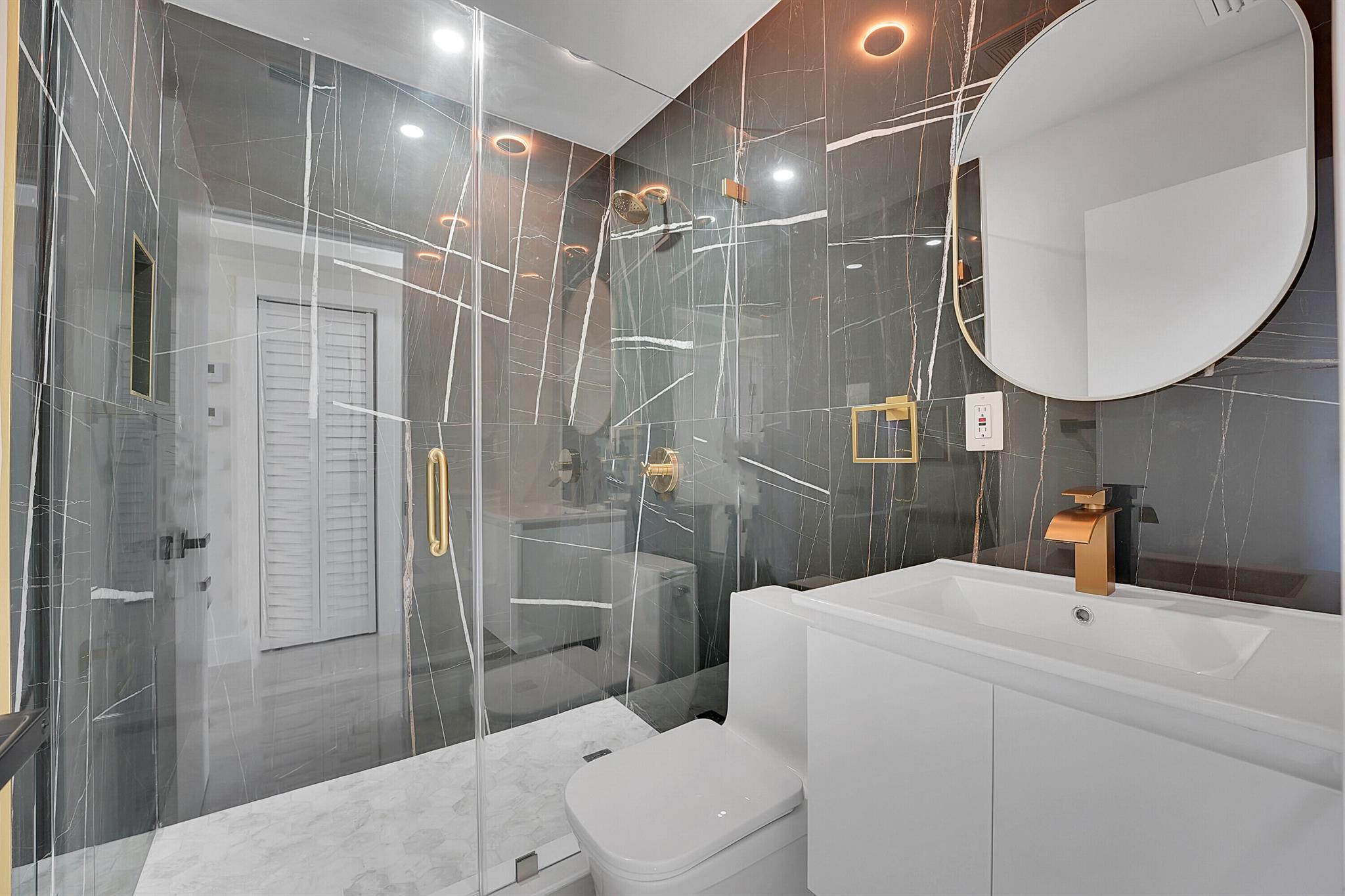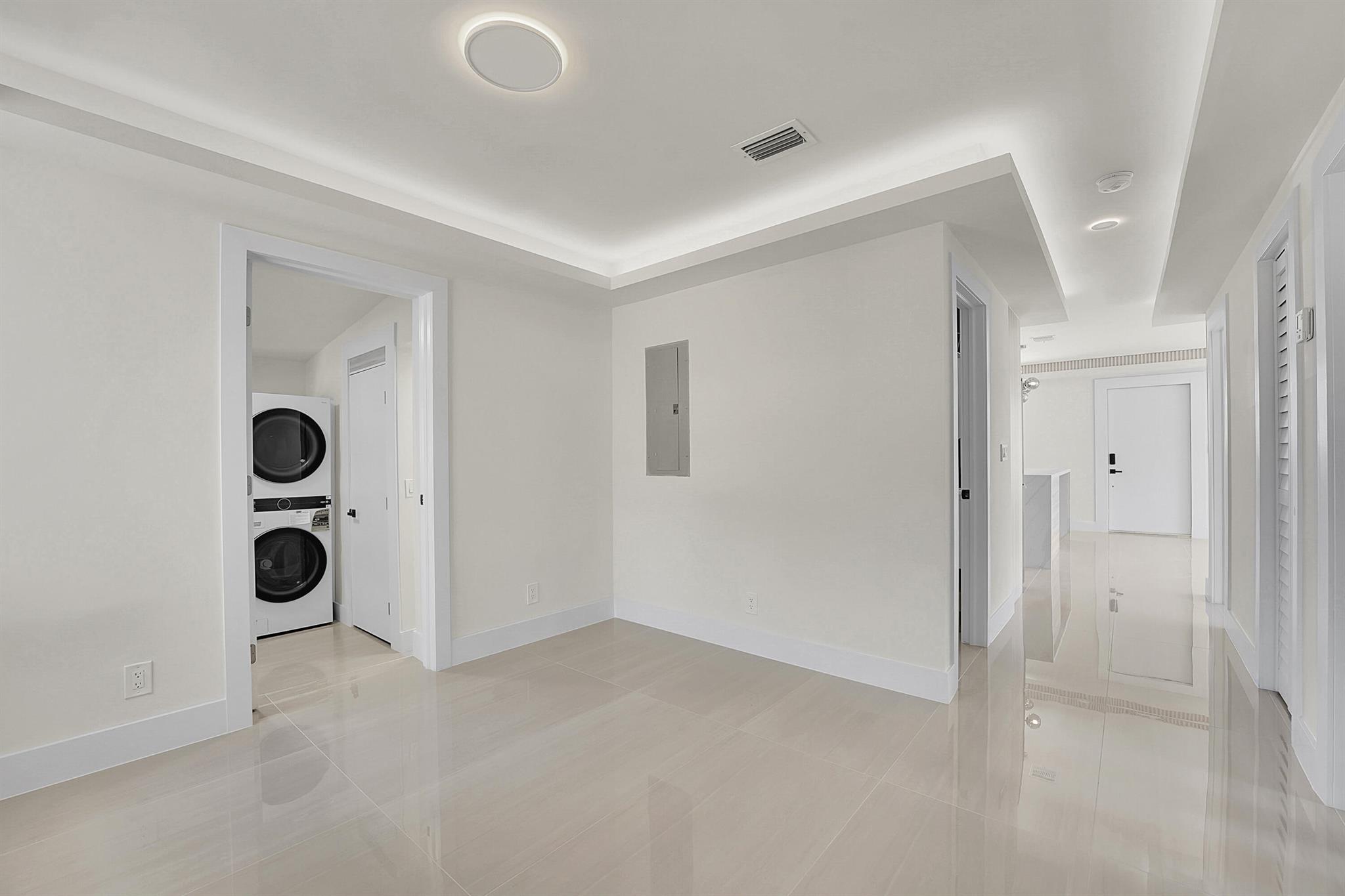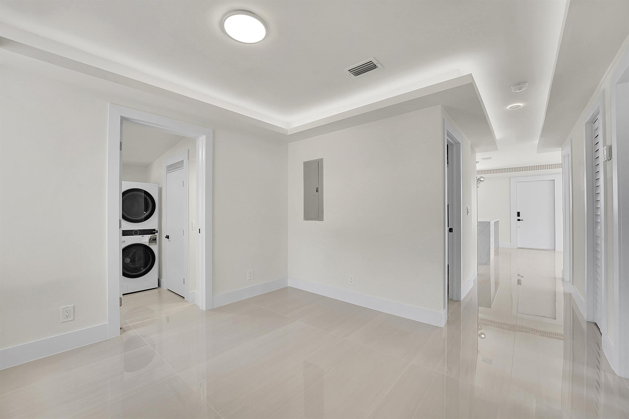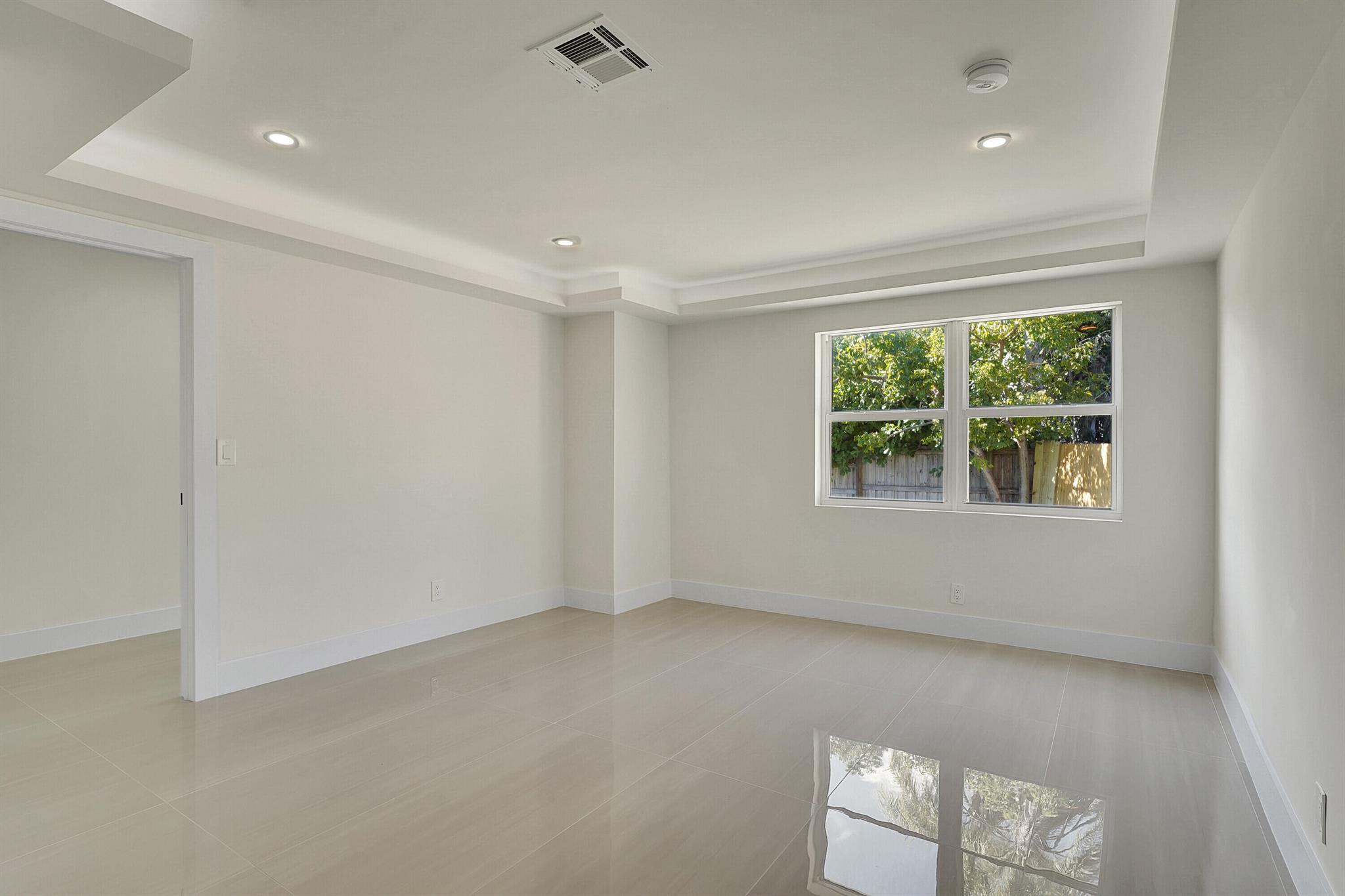 Beautiful, luxurious designed single-family home located five mins from vibrant downtown WPB. This complete interior and exterior remodel embodies a 2024 central A/C system, a new roof, and custom impact windows with premium LED soffit lights. Elaborate, bright living room featuring new tile flooring and that enhances the sense of space. This custom made kitchen is equipped with top of the line Samsung Bespoke appliances, a waterfall Quartz center island, and elegant white cabinetry with stylish pendant lighting. The outdoor space includes a patio, ideal for entertaining or enjoying a quiet evening. This turnkey home is personally crafted with a layout that is the perfect blend of a premium comfort with the convenience of location and proximity to i-95 and the beach.