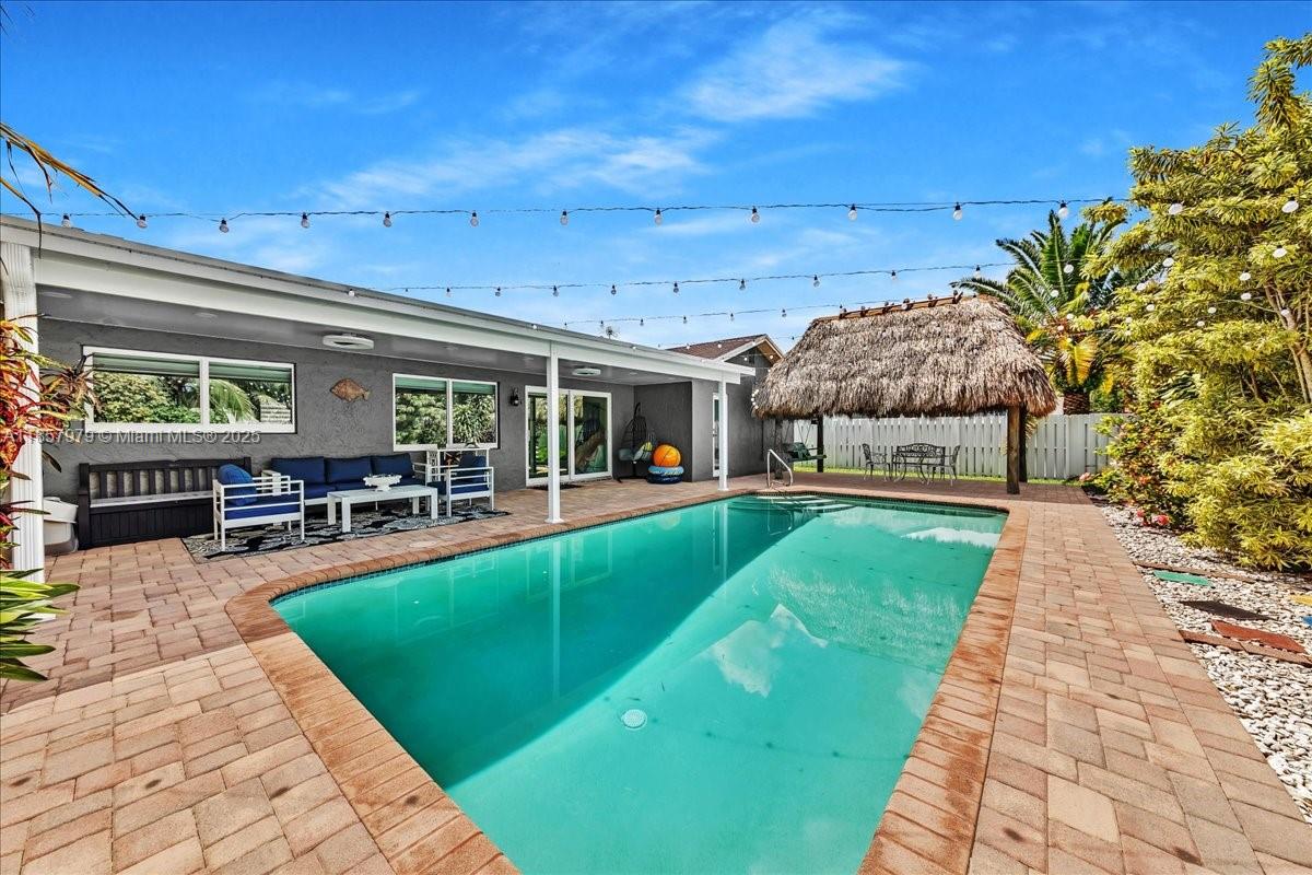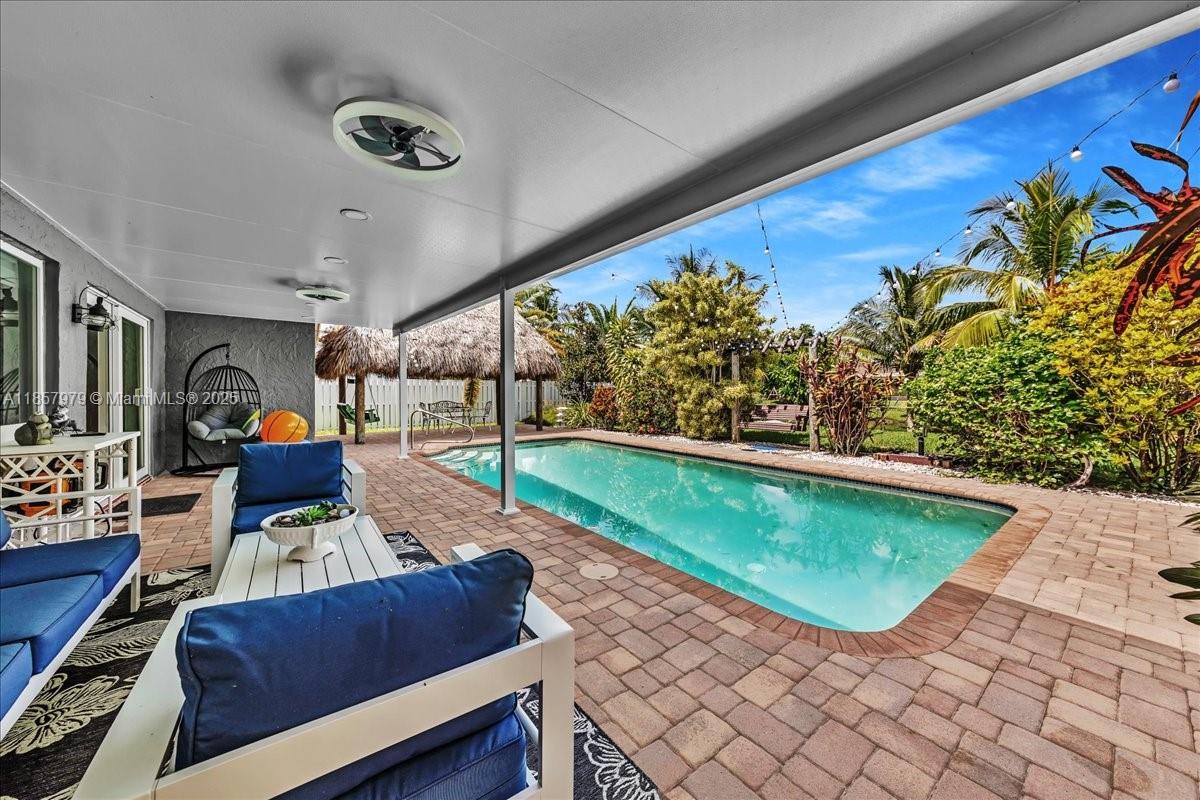 Stunning 3 bed2, 2 baths, 2 car garage waterfront corner lot home pool, fully updated and ready to move in! Step into a sun-filled interior with vaulted ceilings, French doors, neutral finishes, and sliding windows framing serene views. The backyard is a true tropical retreat, sparkling pool, tiki hut, covered patio, and abundant fruit trees for your own harvest. Impact doors/windows and a privacy fence add peace of mind. Ideally located minutes from Sawgrass Mills Mall, BB&T Center, Markham Park, and top-rated medical facilities and schools. Quick access to I-595 and the Sawgrass Expressway makes commuting a breeze. A perfect mix of style, comfort, and Florida outdoor living!