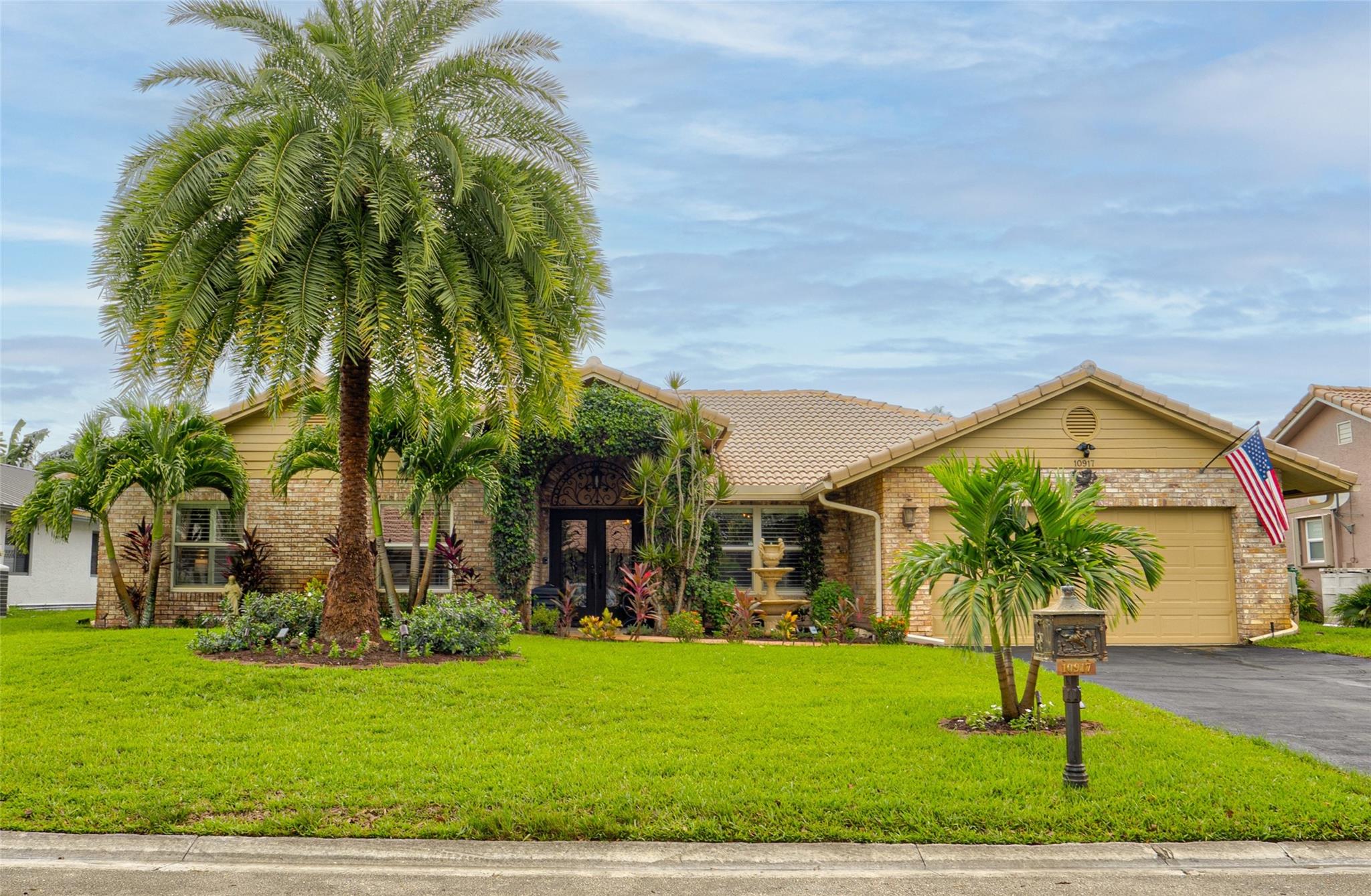 Meticulously maintained Coral Springs 4-bed, 2.5-bath with no HOA! Split floor plan with vaulted ceilings, custom wet bar, impact windows/doors, plantation shutters & cozy fireplace. Spacious walk-in closet adds everyday ease. Courtyard-style backyard oasis features heated pool, fenced yard, new screened lanai, wired outdoor TV & shed with electric. Open kitchen/family room with coffee & wine bar, central vacuum & modern security (Ring & ADT). Steps from Cypress Hammock Park with trails, tennis, pickleball, basketball, pools & water park. Move-in ready with thoughtful updates—style, comfort & entertainment all in one!