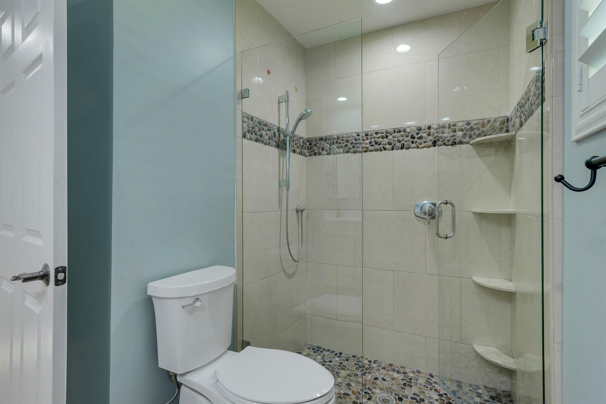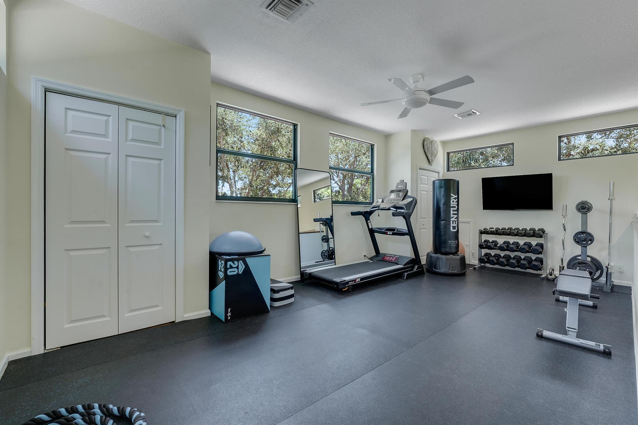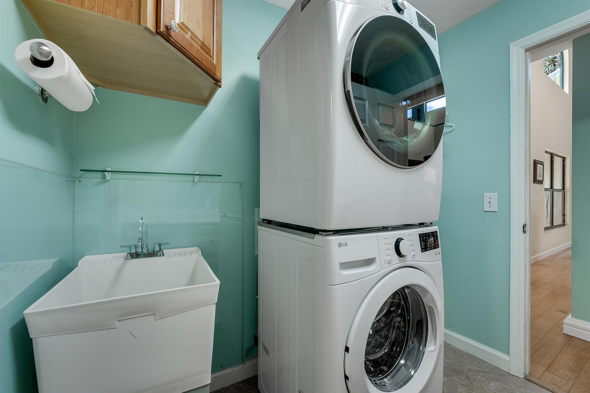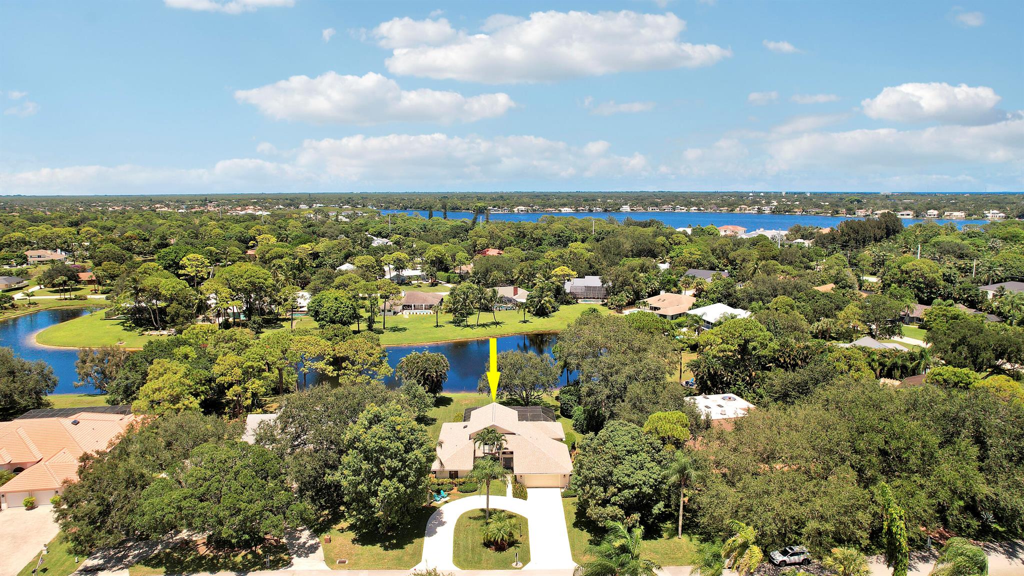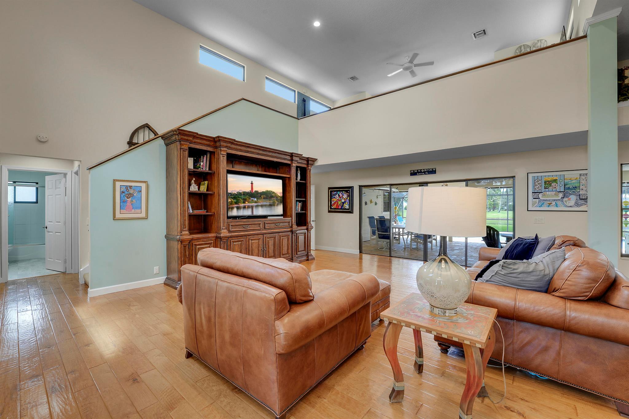Lakefront Living in the Heart of Jupiter. Welcome to this well appointed 4 bedroom, 2-bath home (4th bedroom is a versatile loft), offering nearly 2,500 square feet of open-concept living on a half-acre lakefront lot. Soaring ceilings and abundant natural light create an airy, inviting atmosphere throughout.The spacious kitchen is a chef's dream, featuring a large island with granite countertops, newer stainless-steel appliances including a double wall oven--perfect for entertaining. The split-bedroom floor plan ensures privacy, with generously sized rooms and thoughtful design. Step outside to your private oasis: a screened-in pool with glass tile accents, a new saltwater system, and light pavers that surrounds the pool and extends into the covered patio with custom wood paneled ceiling