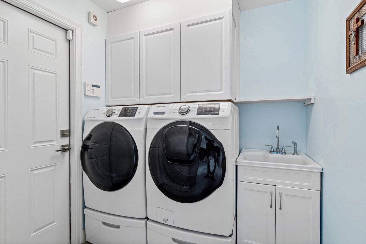 Extensively renovated home with redesigned exterior, added interior enclosure & bath, pool remodel, pavers, new fence, faux-finish garage door, tile floors, crown molding & oversized baseboards. Master suite features tray ceiling, walk-in closet & updated bath. Hurricane-impact windows/doors & garage door. Custom TV enclosure, retractable shades & garage shelving. Major upgrades include epoxy-lined water lines & new gas line for whole-home generator. Systems: 4-ton AC (2021), 1.5-ton AC (2018), water heater (2020), pool heater (2021), pool pump recently replaced.
