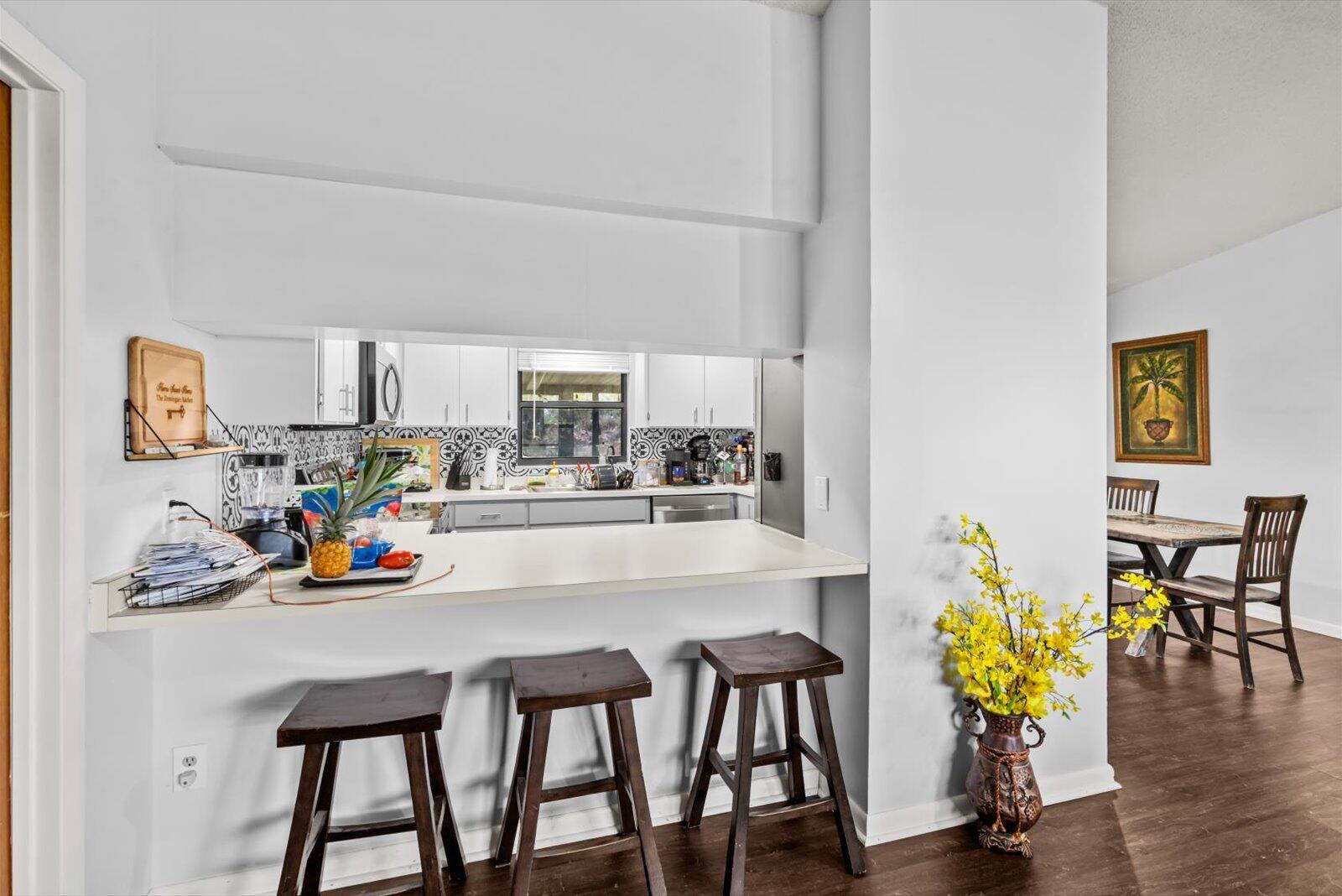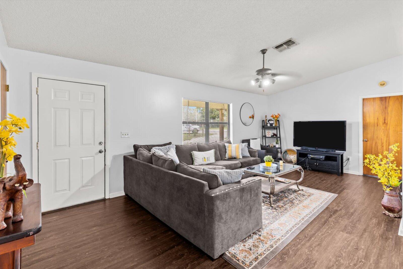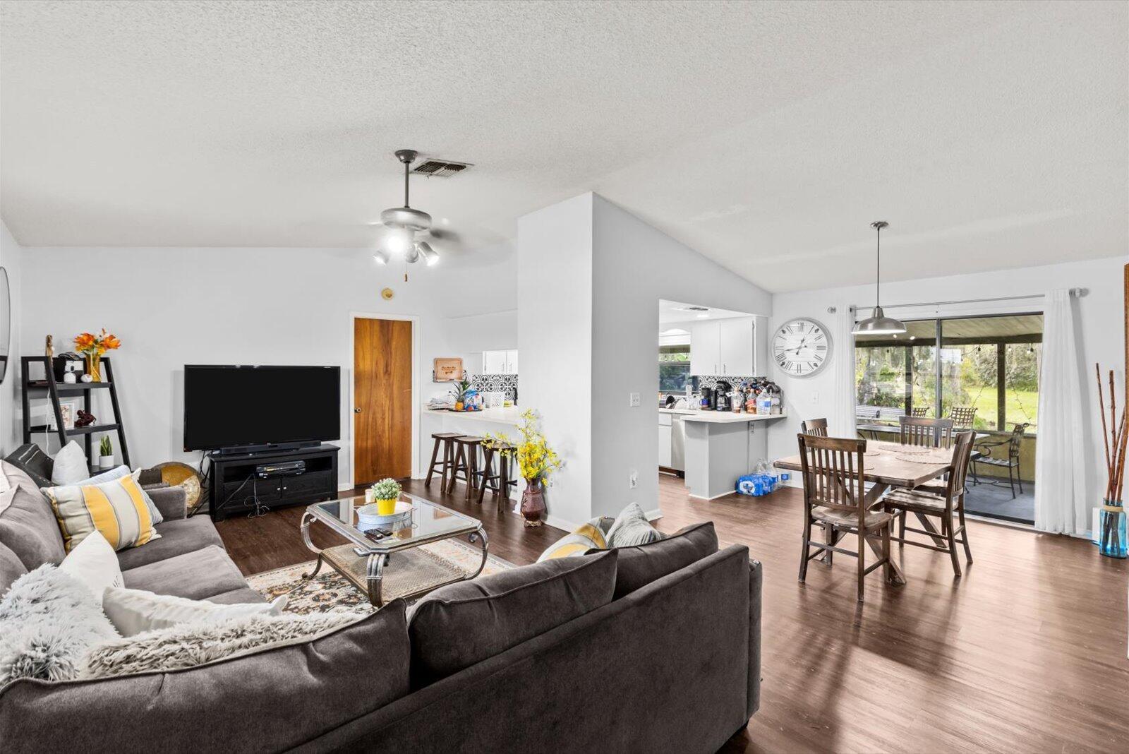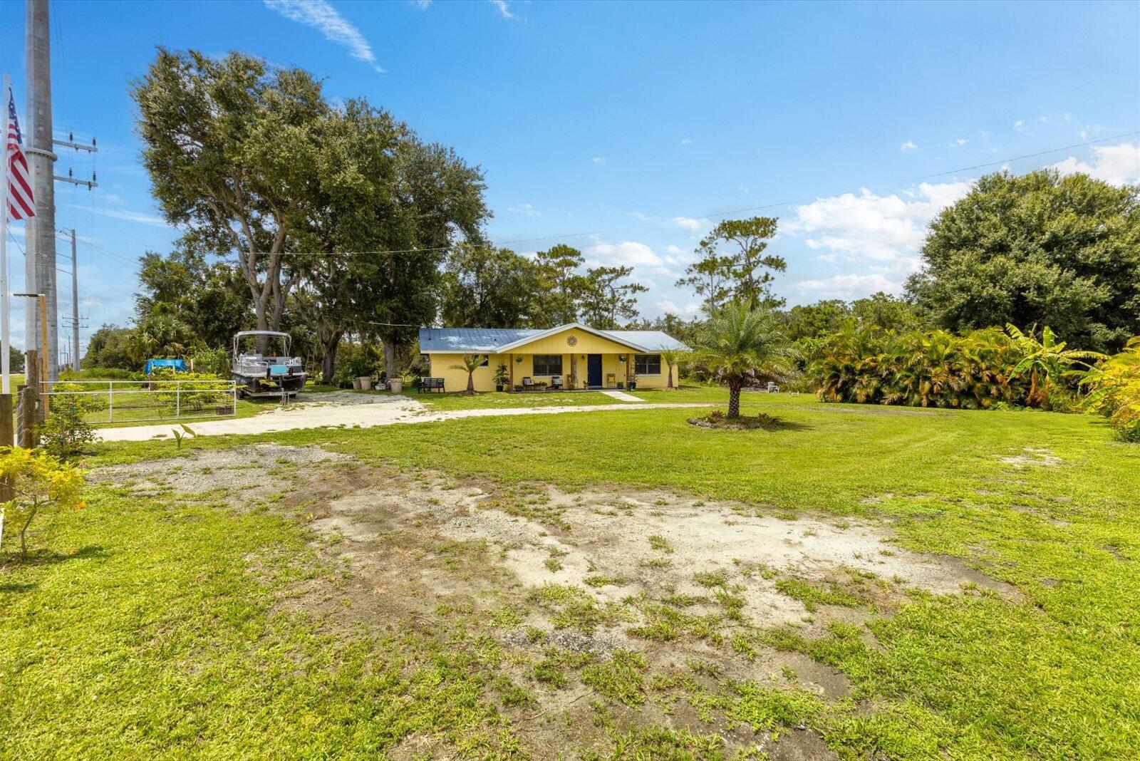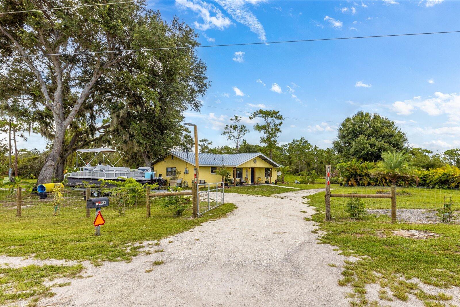 Step inside this charming 3/2 CBS home on a newly fenced 1 acre lot, plentiful with all kinds of fruit trees & you will fall in love! The fence has a large swinging door for large vehicles, trailers, boats, etc & further down there is another set of double doors to bring in vehicles or equipment etc. There is even a chicken coop, so you can enjoy fresh eggs! The property is also zoned commercial so the possibilities are endless! The kitchen & bathrooms have recently been updated too! The kitchen has new stainless steel appliances & a beautiful tile backsplash. The bathrooms have both been updated with new tile wall surrounds & a new vanity in the guest bathroom! The washer & dryer are newer as well! You will also find upgraded luxury vinyl plank flooring throughout! Sit outside on your