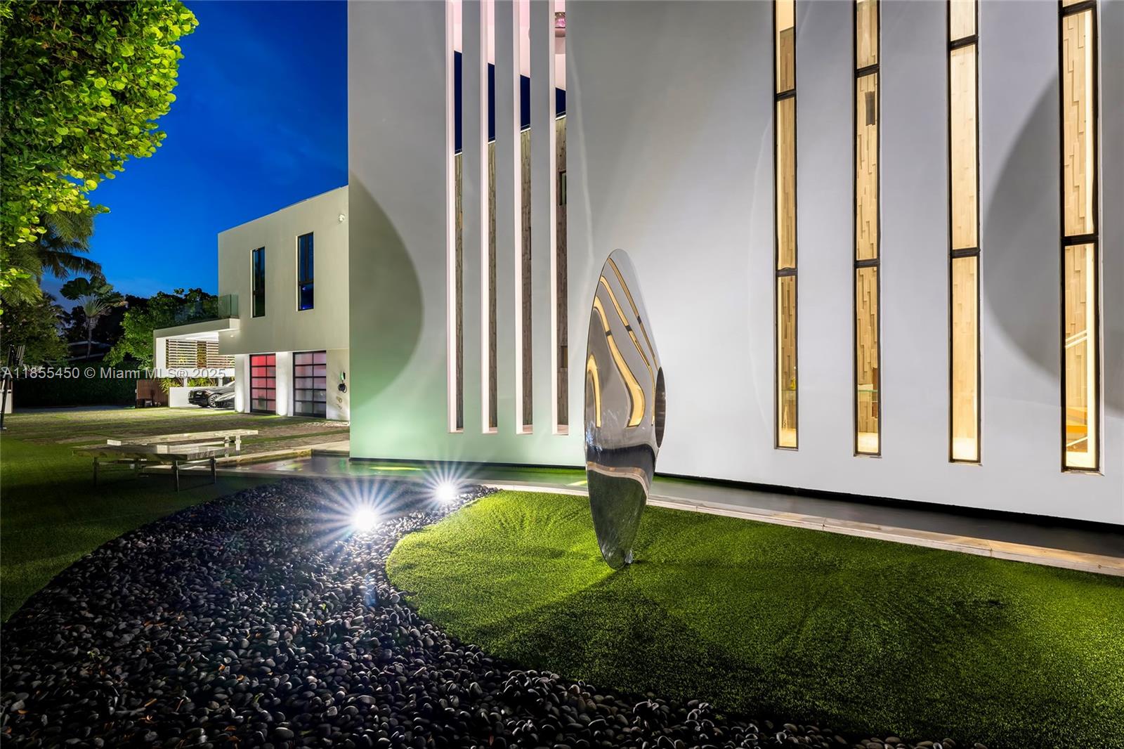 This striking modern tri-level waterfront residence blends bold architecture with refined luxury. Set on a 17,676 SF gated lot w/approx. 90FT of WF, the home offers 9,424 total SF with 5BR/7.5BA, expansive family, dining, & living areas all with water views. Highlights include marble & rich hardwood floors, custom millwork, chef’s kitchen with Wolf and Miele appliances, built-in aquarium, & seamless indoor-outdoor flow. Principal suite features an expansive terrace, spa-style bath, and massive walk-in closet. Additional amenities include a rooftop lounge with firepit & TV, a gym-converted garage, state-of-the-art theater, resort-style pool w/waterfall, summer kitchen, custom bar, 45FT dock, 3 jet ski slips & direct Intracoastal access. This residence epitomizes the Miami lifestyle.