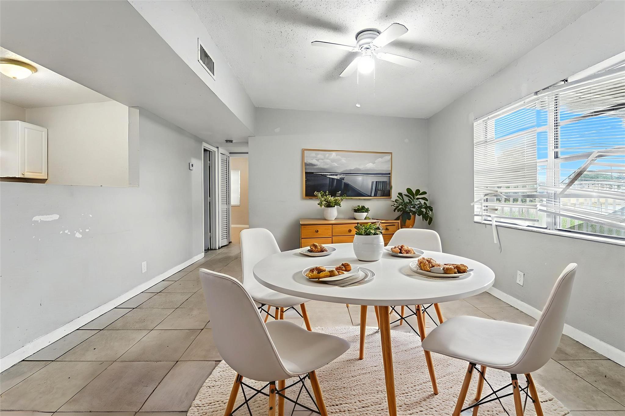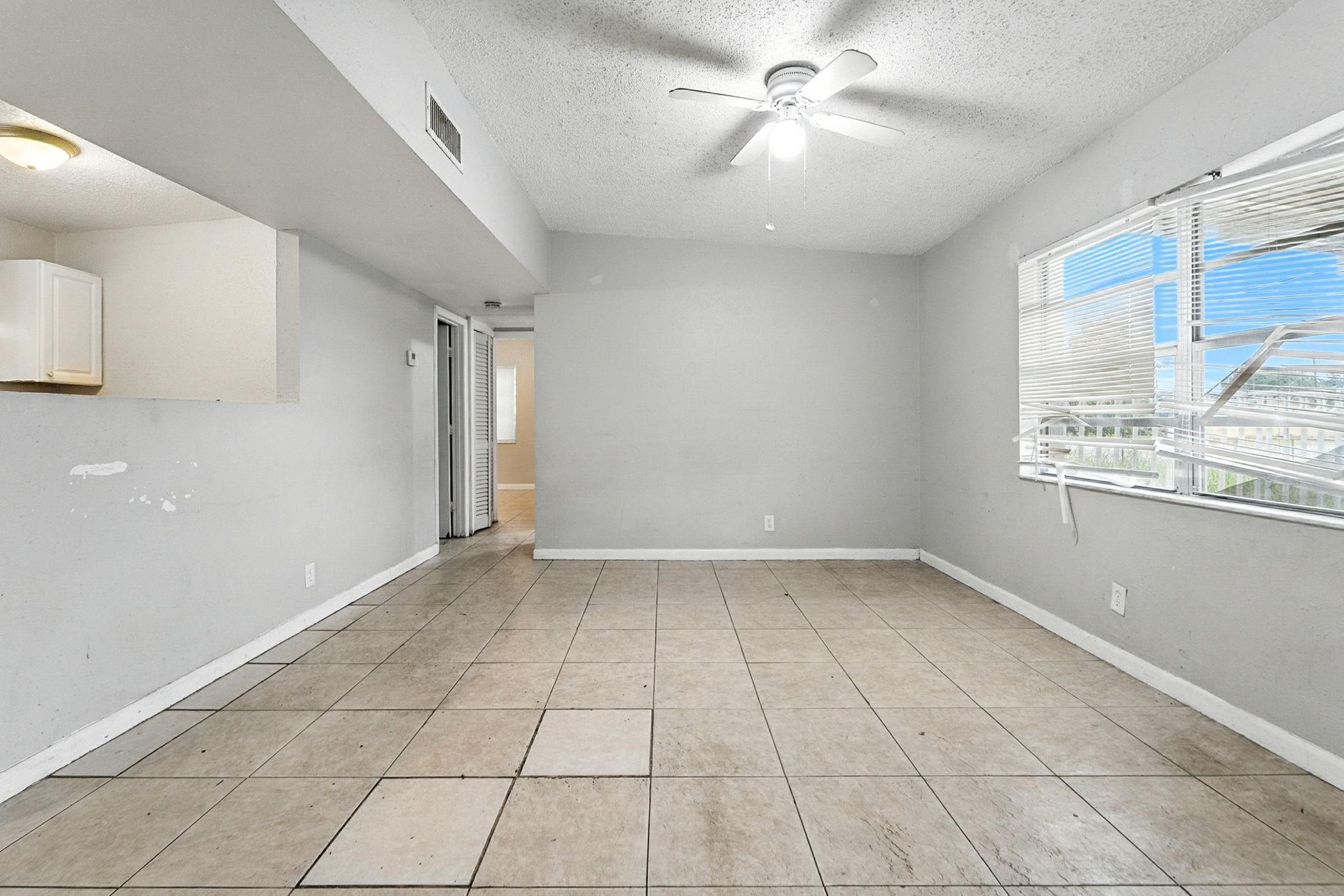 Charming 1-story home with 3 bedrooms and 2 bathrooms, perfect for those ready to add their personal touch. Features a small front porch and a combined living and dining area for flexible living space. The fenced backyard offers privacy and outdoor potential. One or more photos have been virtually staged. Needs TLC. Schedule a showing today!