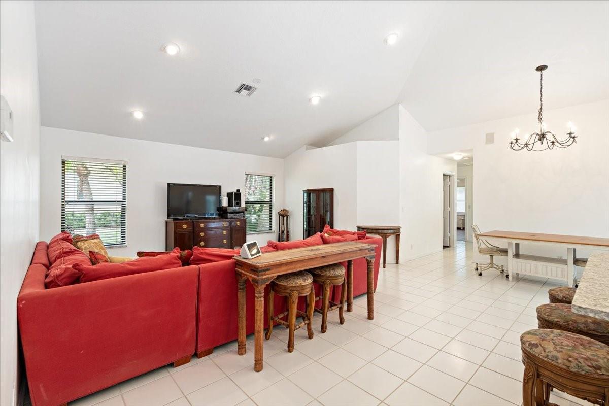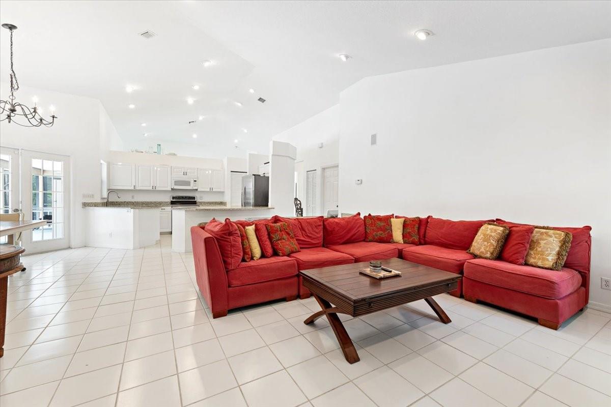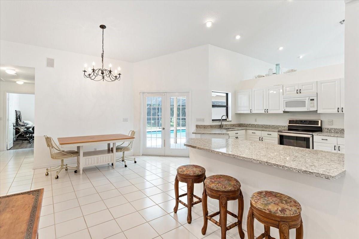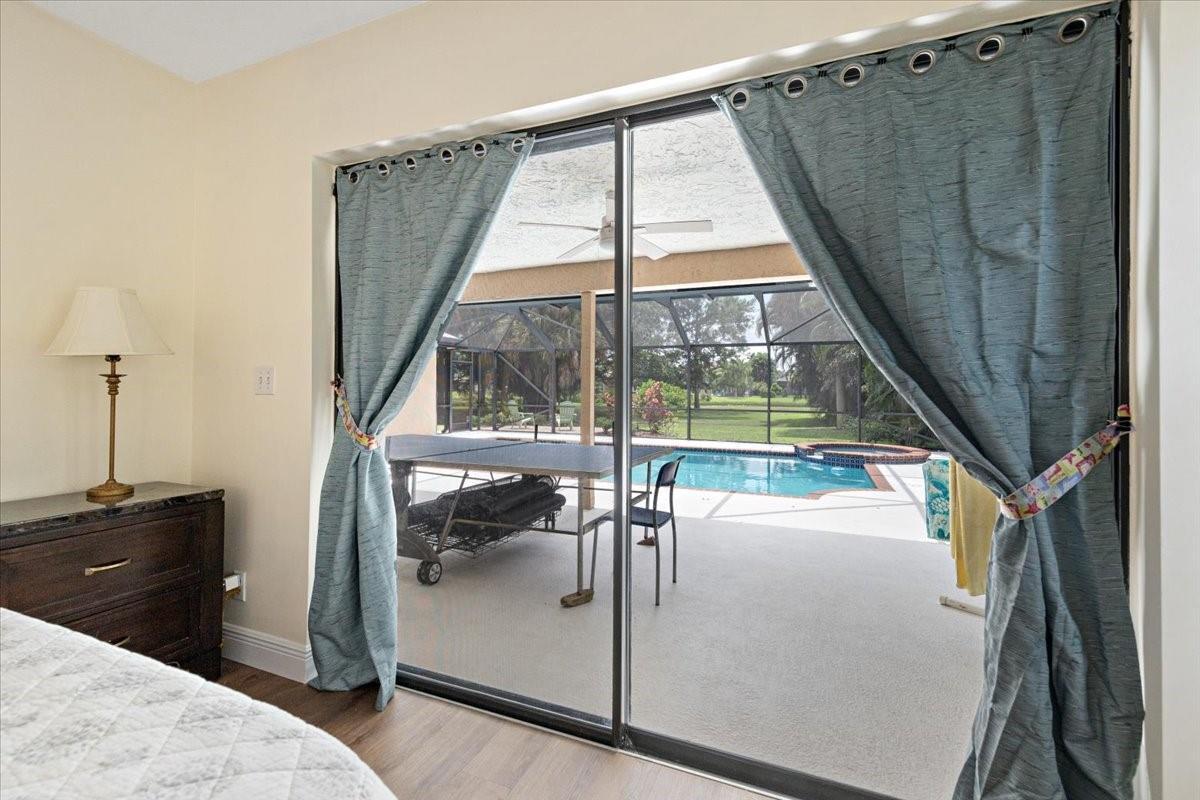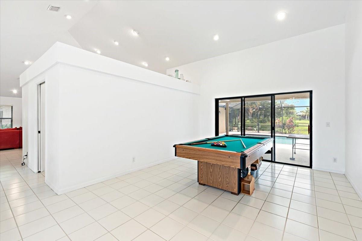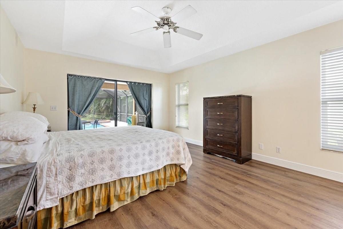 Welcome to your private paradise in the exclusive gated community of Danforth! This stunning residence sits on an expansive 11,741 SQFT lot, stretching to a serene canal. Enjoy the oversized screened-in patio with resurfaced pool, spa, and convenient cabana bath access. Inside, vaulted ceilings greet you, along with an upgraded kitchen, recessed lighting, and freshly painted interiors. All bedrooms feature luxury vinyl flooring, while clean white tile runs throughout the living areas. The spacious 2,396 LIV SQFT split floor plan provides both comfort and functionality. The master suite boasts dual walk-in closets and an oversized dual walk-in shower. Additional upgrades include NEW ELECTRIC PANEL 2025, NEW 2024 metal roof, newer washer/dryer, hurricane shutters, and 2019 WH
