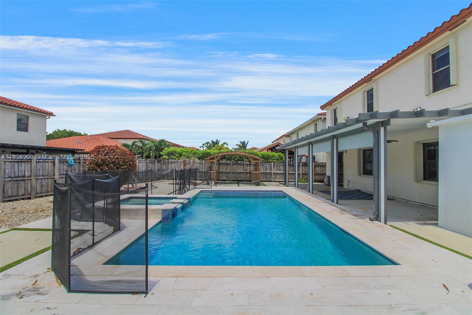 Located in the desirable community of Venetian Parc West, this beautifully updated 5-bedroom, 3-bath home offers over 2,928 sq ft of thoughtfully designed living space and an inviting backyard retreat. Enjoy a stunning pool, built in 2023, featuring a travertine tile surround, side parking—perfect for a small boat or additional vehicle. The first floor includes a full bedroom and bathroom, ideal for guests. Upgrades include a modern kitchen, renovated bathrooms, a new A/C system, updated appliances, and accordion hurricane shutters for peace of mind. The HOA maintains the front yard, near schools, parks, shopping centers, hospitals, and major expressways. Take advantage of a $5,000 credit towards buyer's closing costs when buyers choose the seller’s preferred title company!”