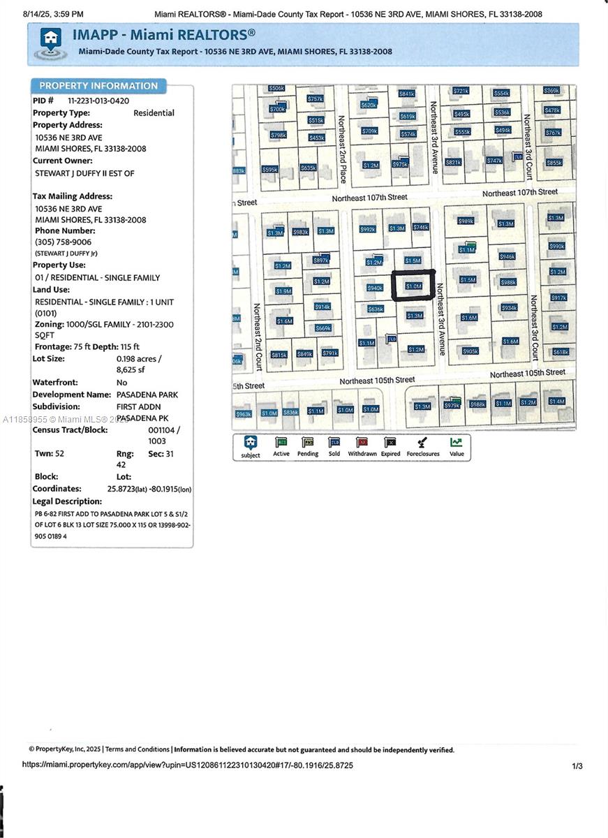 HOME IS IN ADVANCED STATE OF DISREPAIR AND IS CURRENTLY UNLIVABLE. HIGHEST & BEST USE IS CONSIDERED TO BE DEMOLITION AND CONSTRUCTION OF NEW SINGLE FAMILY RESIDENCE. GREAT LOCATION IN HIGH DEMAND MIAMI SHORES VILLAGE AND WALKING DISTANCE TO PUBLIC, PRIVATE & PAROCHICAL SCHOOLS. PROPERTY IS BEING SOLD IN "AS IS" CONDITION WITH NO CONTINGENCY FOR INSPECTIONS. CASH OFFERS ONLY WITH PROOF OF FUNDS BEFORE OFFERS ARE PROCESSED. SALE MAY BE SUBJECT TO PROBATE COURT APPROVAL.