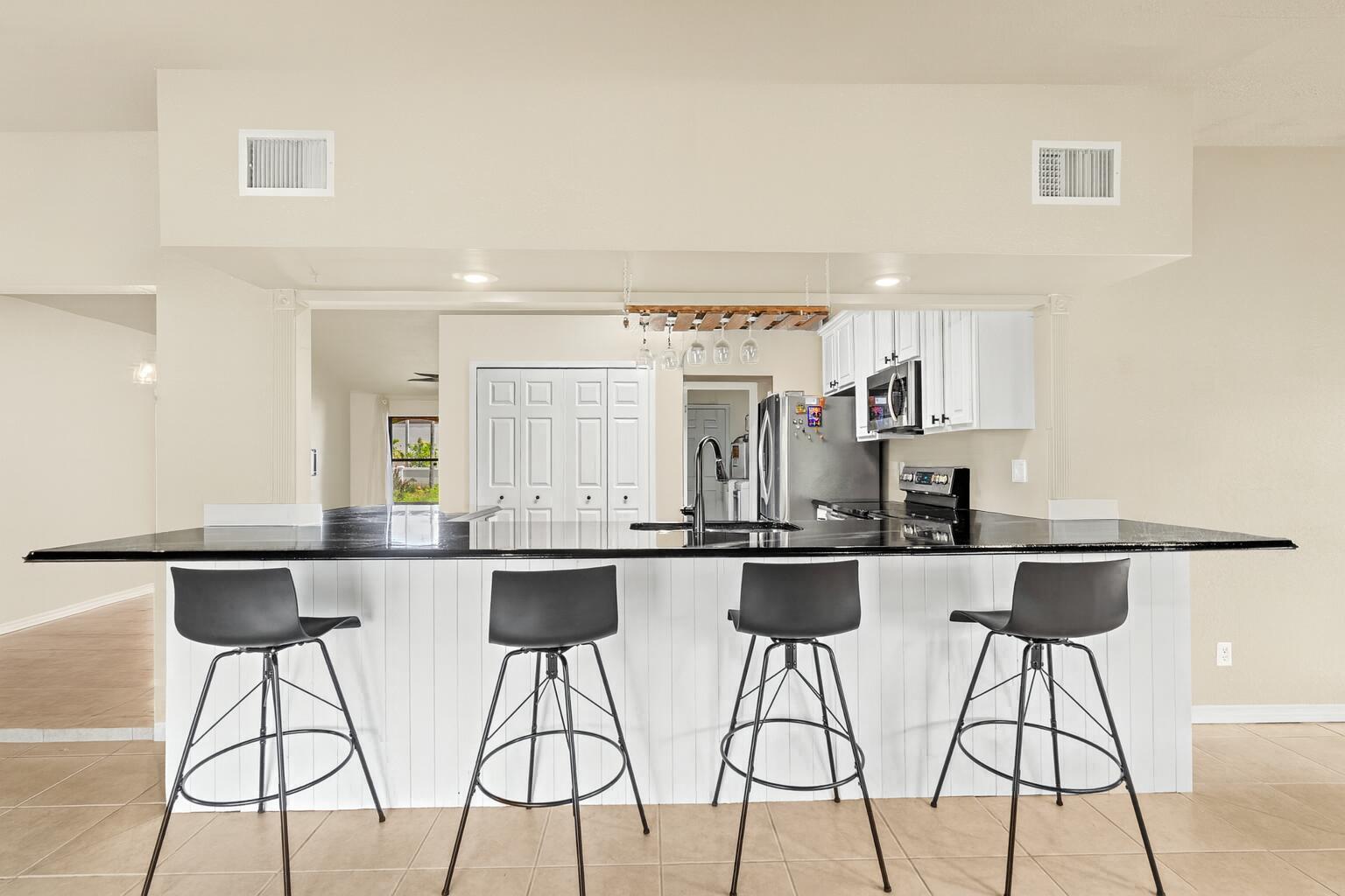 Sitting on nearly half an acre (0.46 acres) in a prime location just off Gatlin, this 3-bedroom, 2-bath home offers incredible outdoor living and unbeatable convenience. Enjoy a spacious backyard with RV parking, a storage shed, a deck with an outdoor kitchen, and a relaxing jacuzzi, perfect for entertaining or quiet evenings at home. Inside, you'll find a great layout and a brand-new roof for peace of mind. The popcorn ceilings have already been removed, and while the current all-black paint creates a dramatic look, it's an easy update for your own style. Giving you the opportunity to make this home truly yours without major renovations.With a double lot, spacious yard, and a family-friendly neighborhood, this property blends privacy, location, and potential in one unique package.