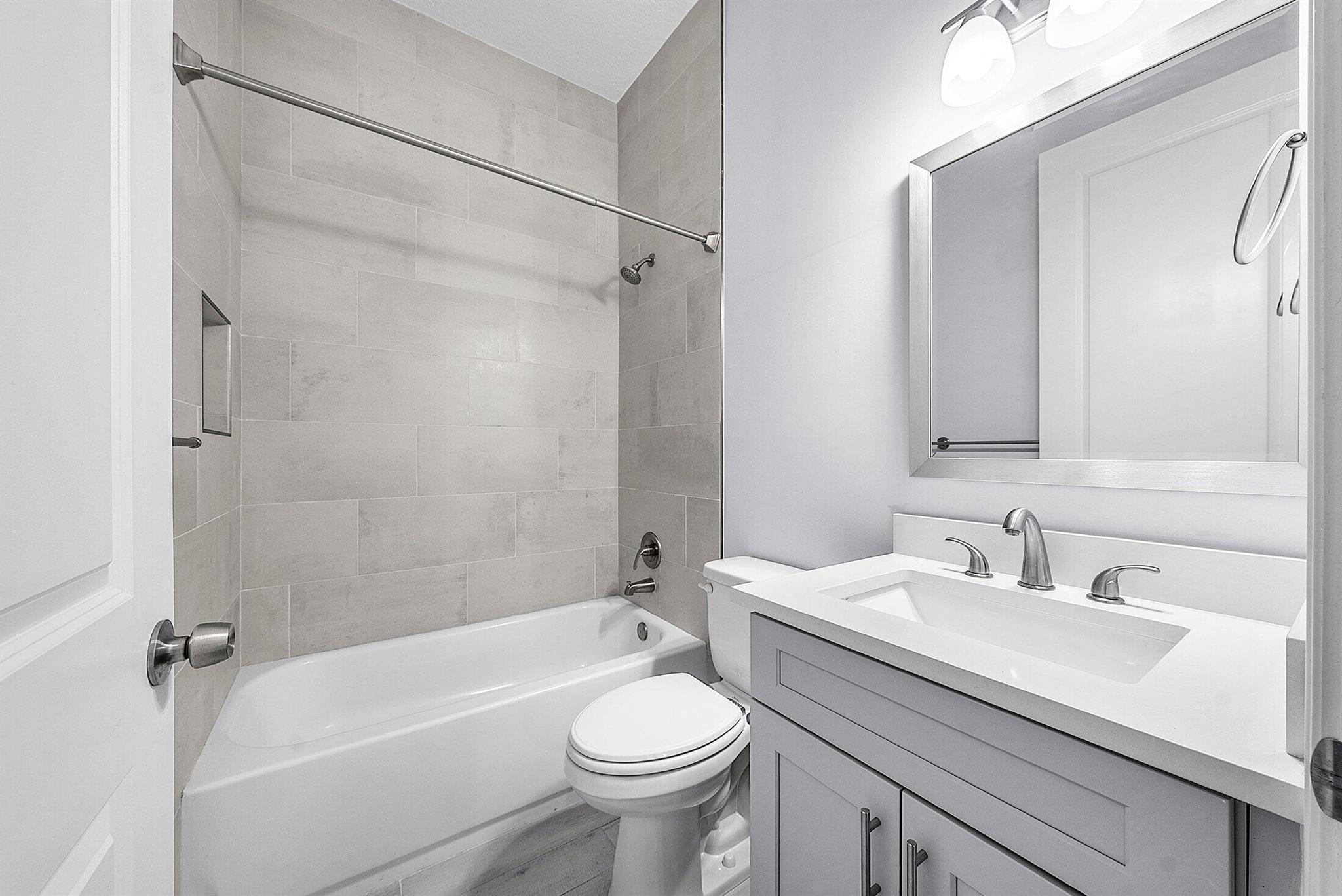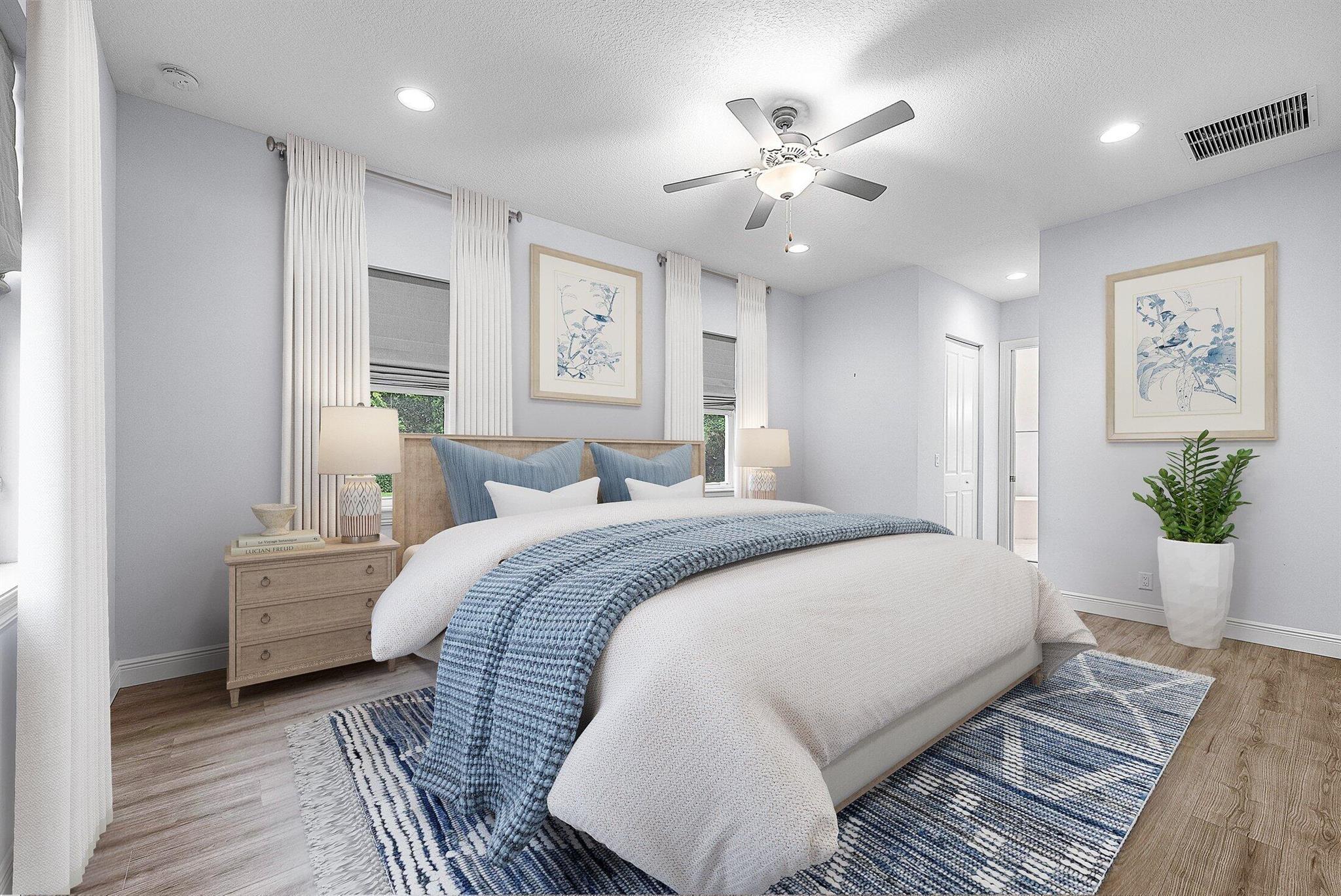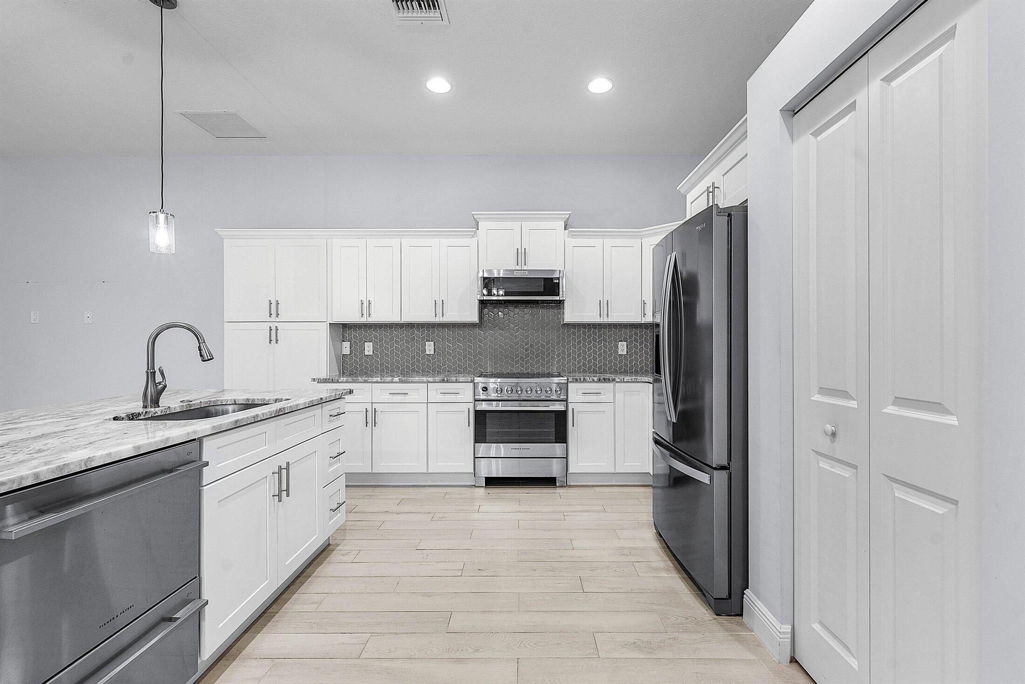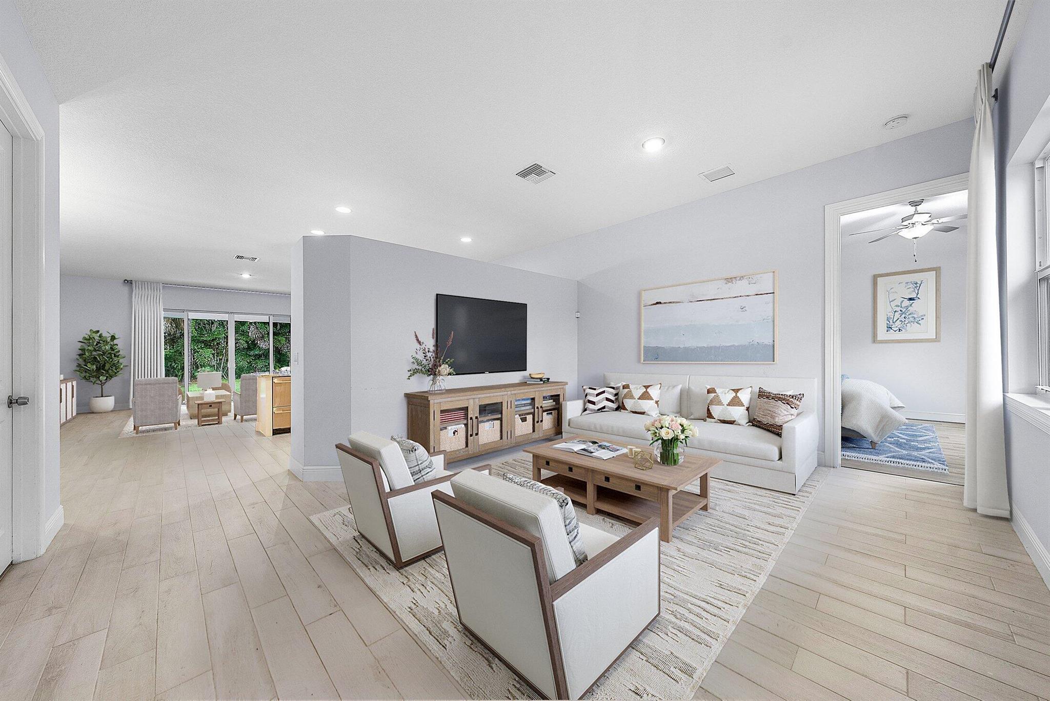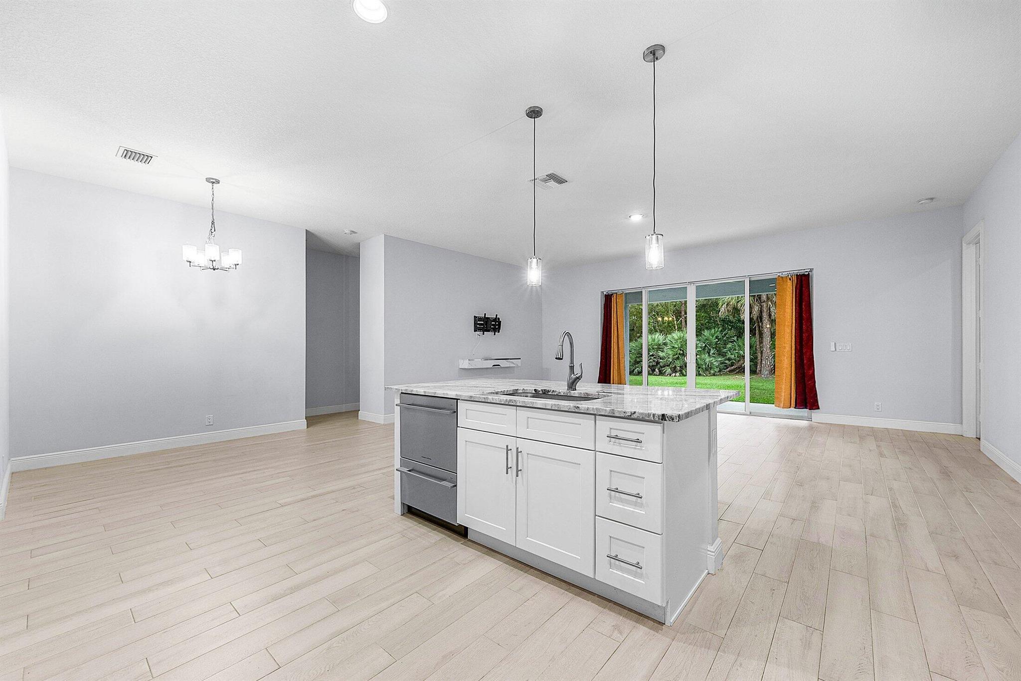 WELCOME HOME This well appointed 2022 built gem is resting on a premium 1.15 acre lot and boasting 4 true bedrooms, 2 full baths, 2 car garage, upgrades galore, hurricane impact windows and doors throughout and this beauty is in a peaceful location! ENTERING you will discover that this home is on a high and dry lot with no pond and fully fenced. The covered entry brings you inside where you are greeted by 10' volume ceilings, high-end flat wall finish, porcelain and luxury vinyl flooring, abundance of natural lighting and gorgeous kitchen that features; a stainless steel appliance package, quartz counter tops, lovely backsplash, spacious island with bar, shaker style cabinetry with two pantries, breakfast nook and great room that overlooks the expansive green space. (CLICK)