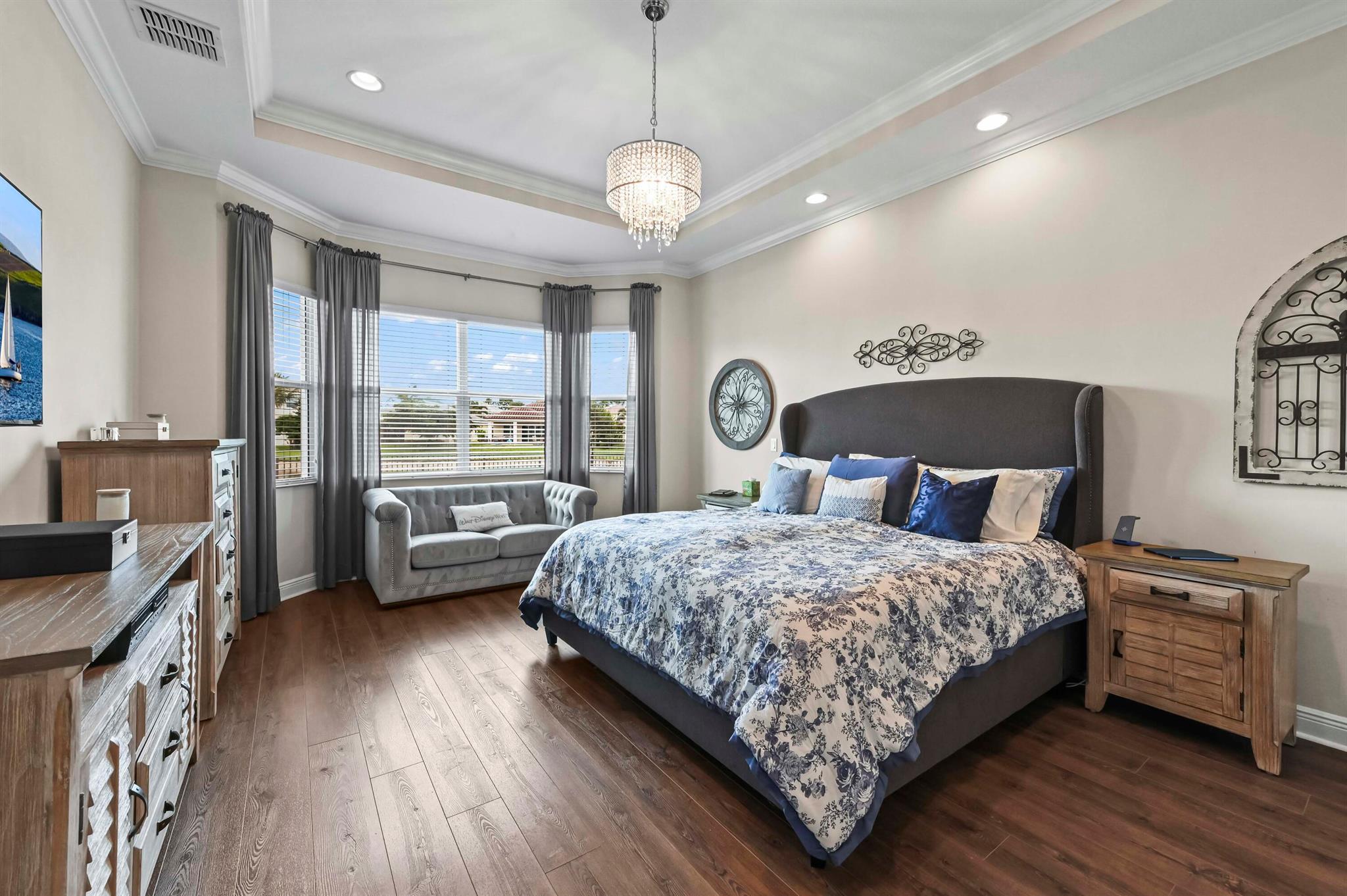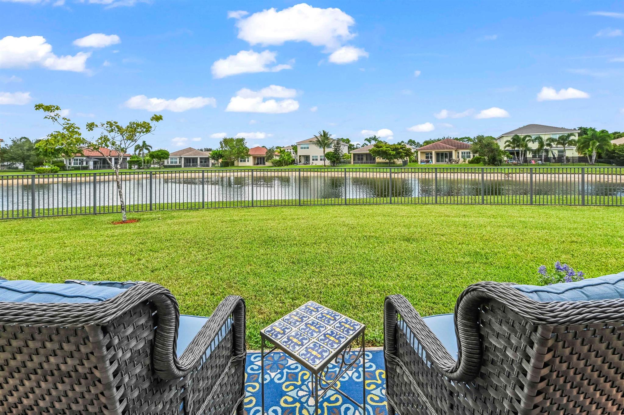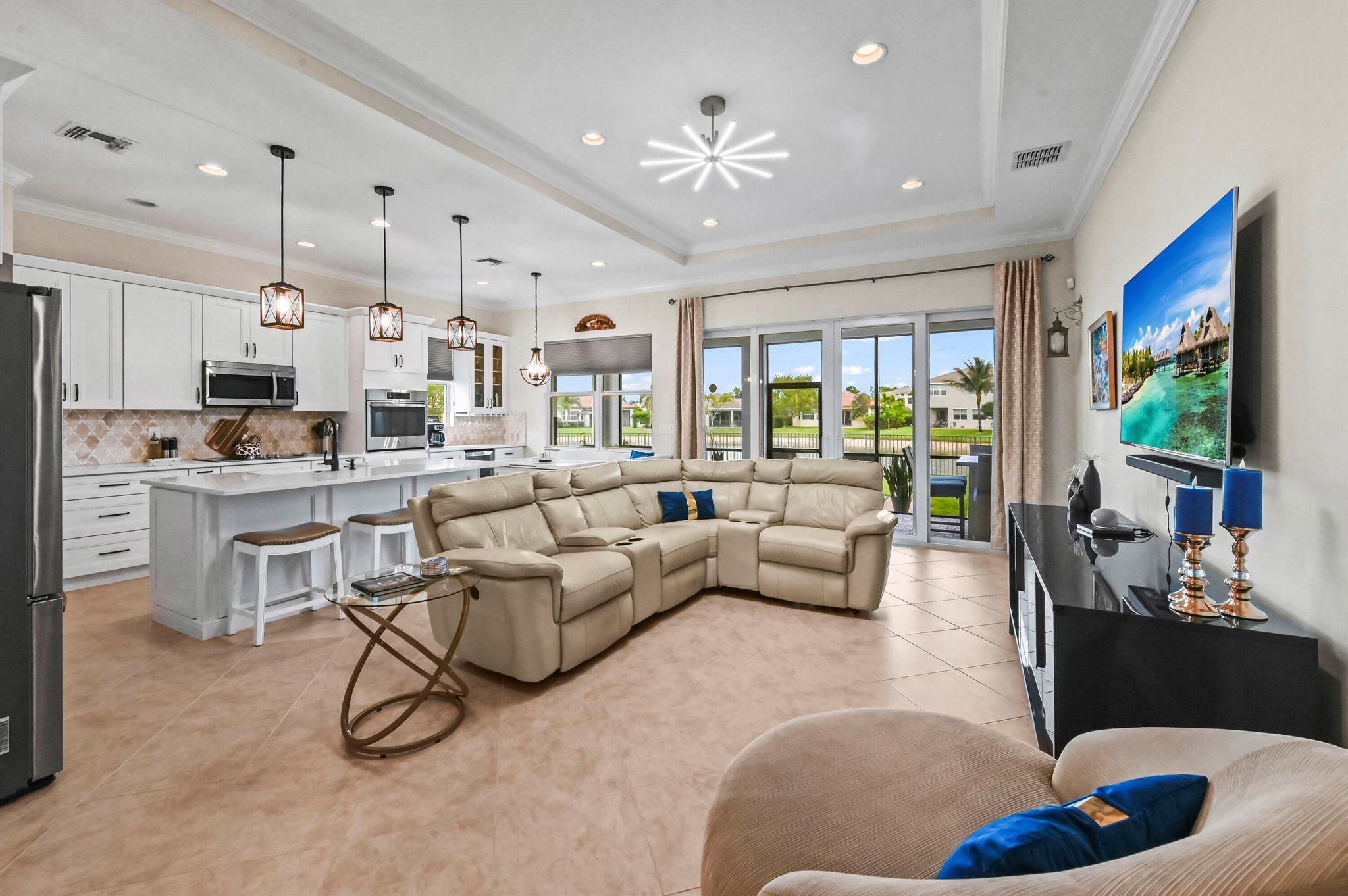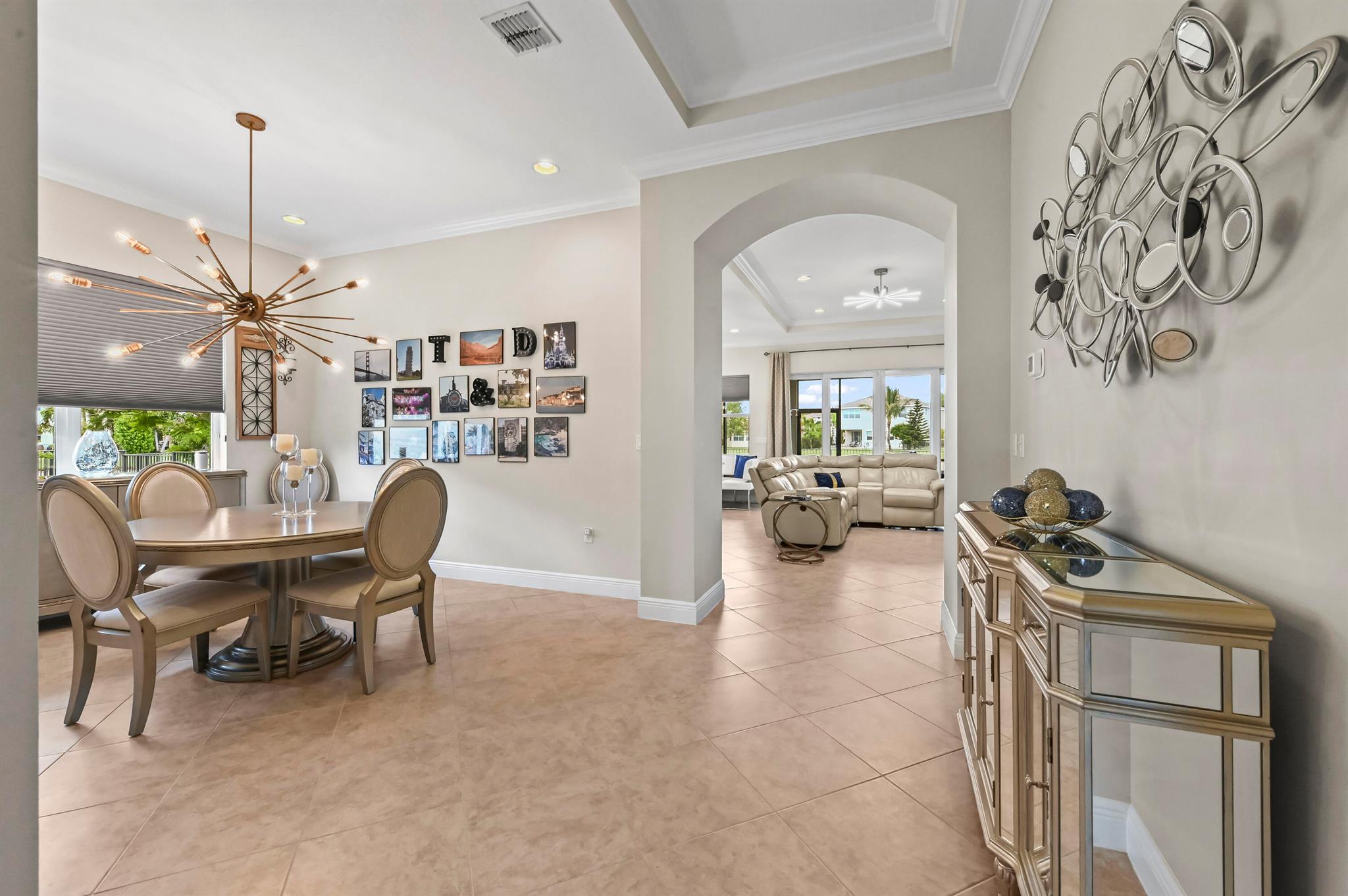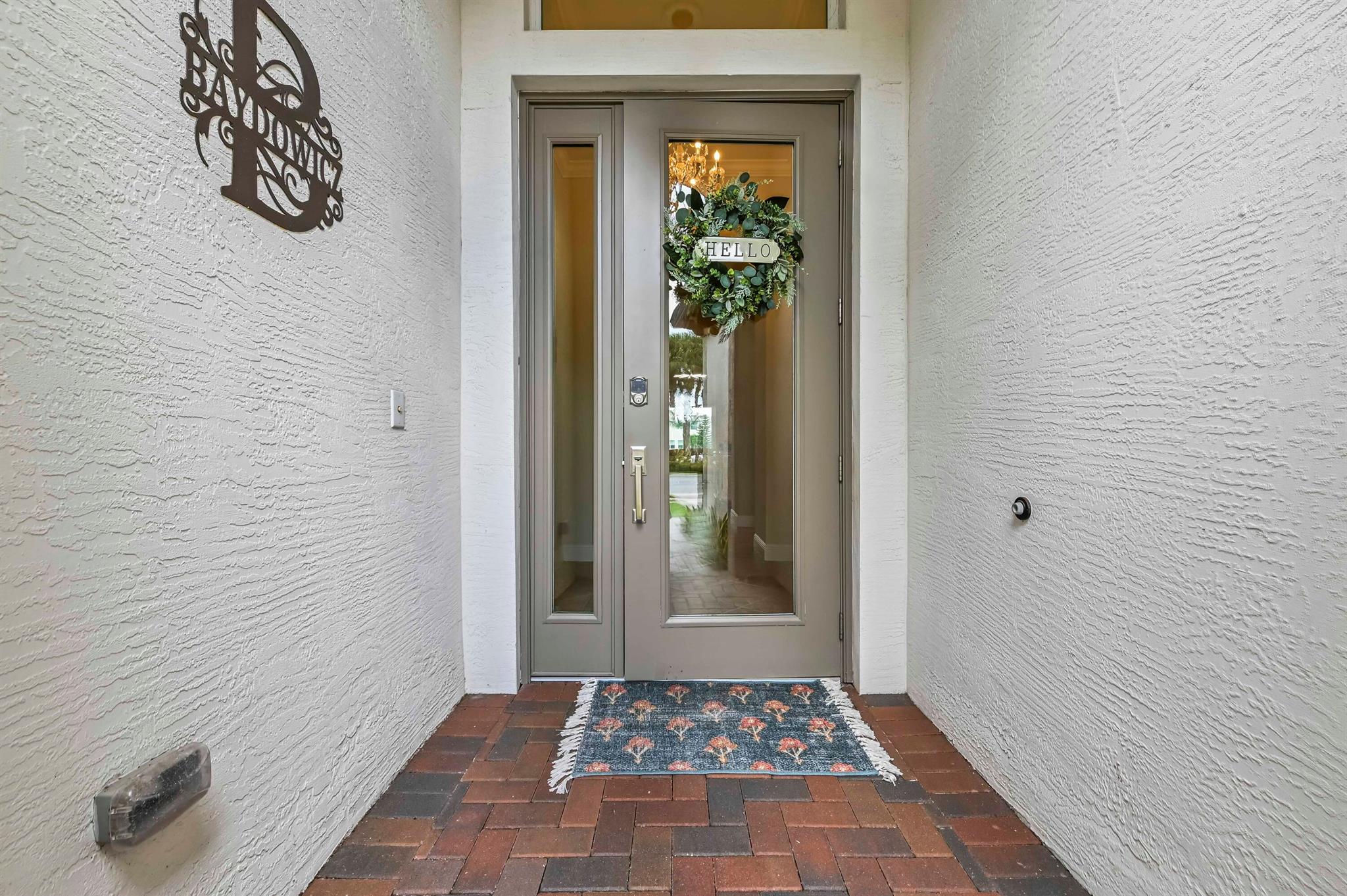 From the moment you arrive, you will be captivated by this stunning waterfront single-family home, perfectly situated on a cul-de-sac and an oversized lot with lush landscaping in the prestigious gated community of Portosol. This residence, with its 3 full bedrooms, 2.5 bathrooms and a den is designed for both elegant living including tray ceilings & custom moldings throughout and everyday comfort. A grand entrance leads to a formal dining room, perfect for hosting unforgettable gatherings, while the thoughtful split-bedroom floor plan ensures privacy for all. This home also features a dedicated office or den, providing an ideal space for remote work or a quiet retreat and can easily be converted to a 4th bedroom if needed.