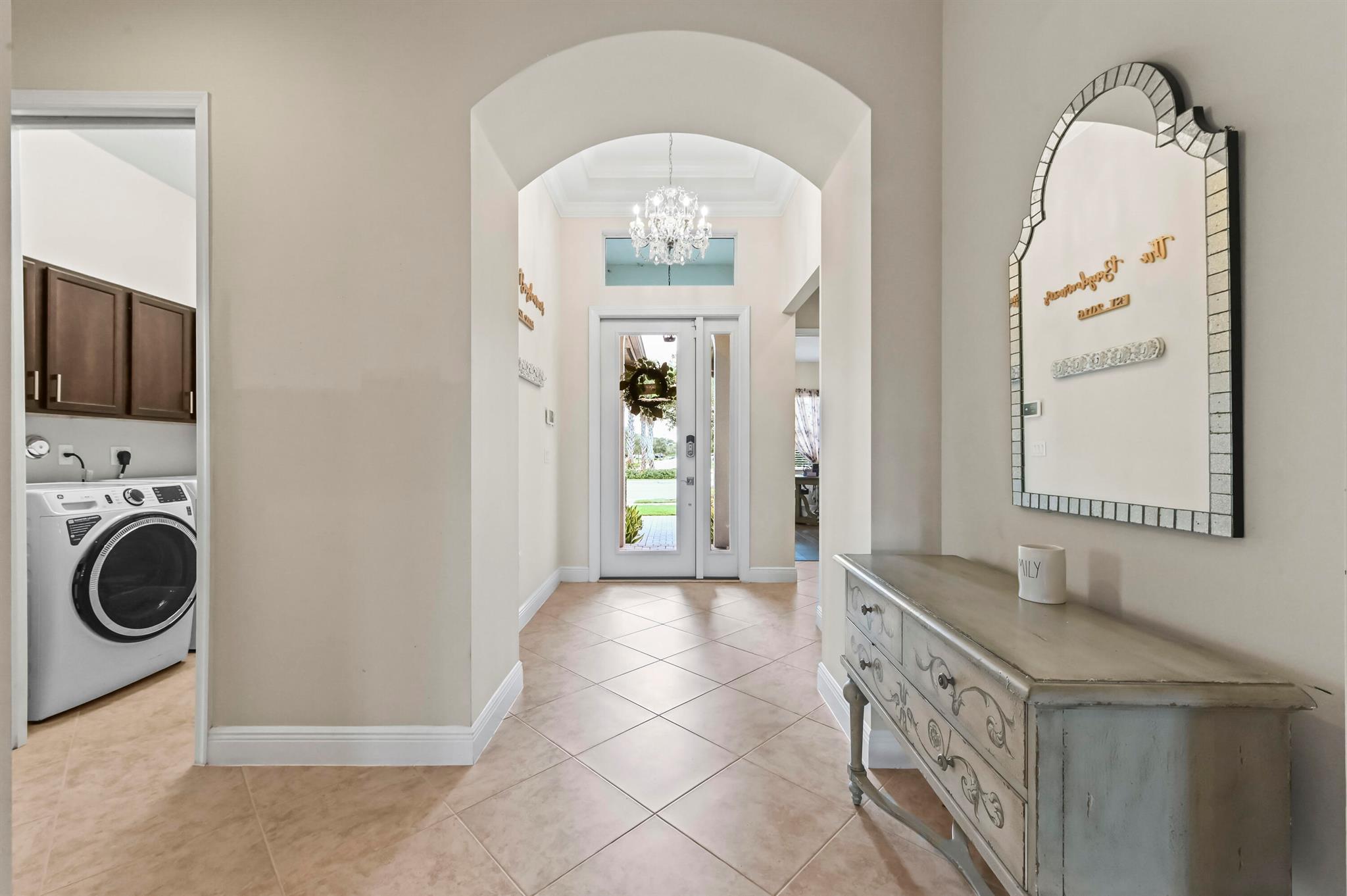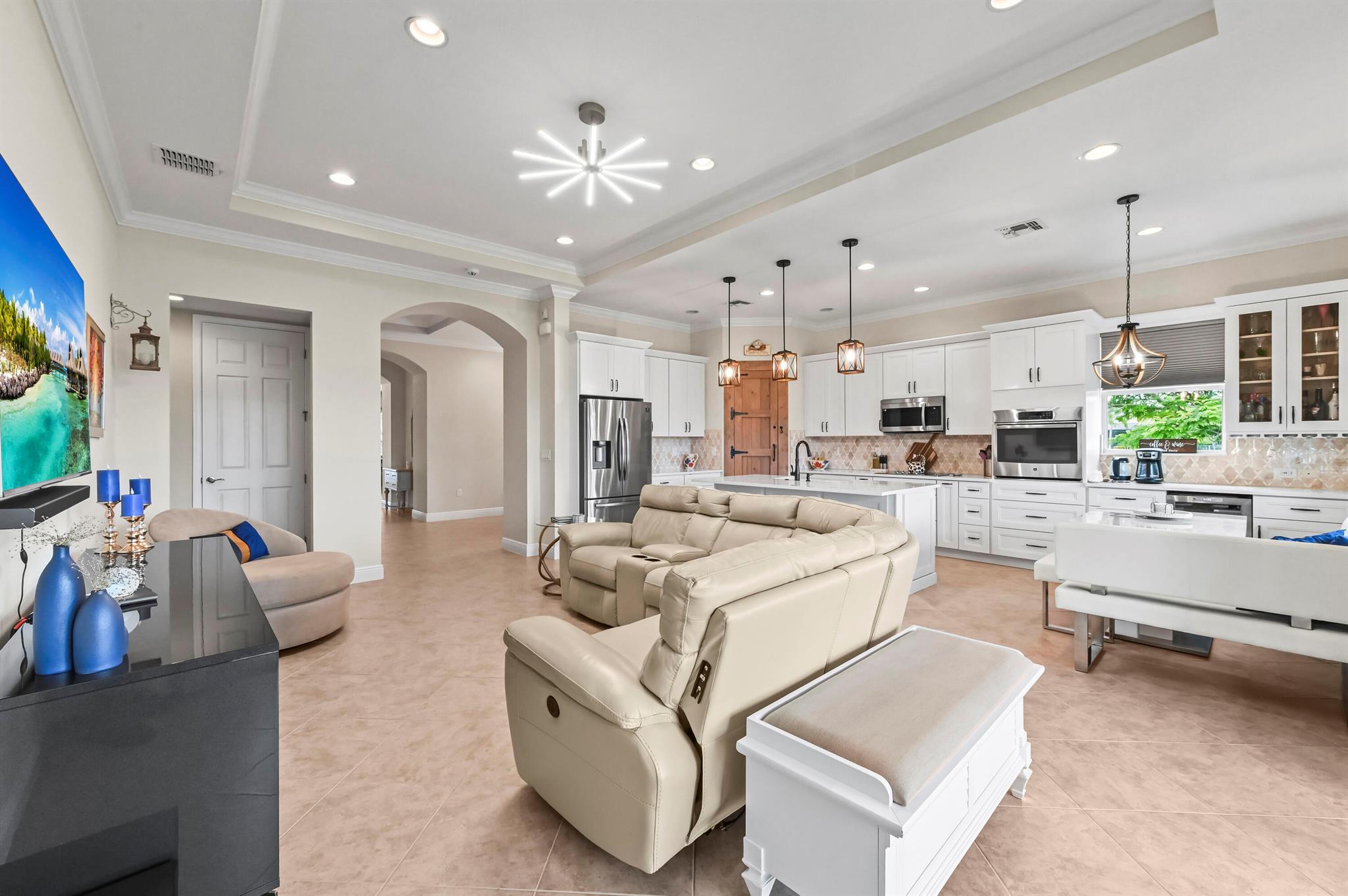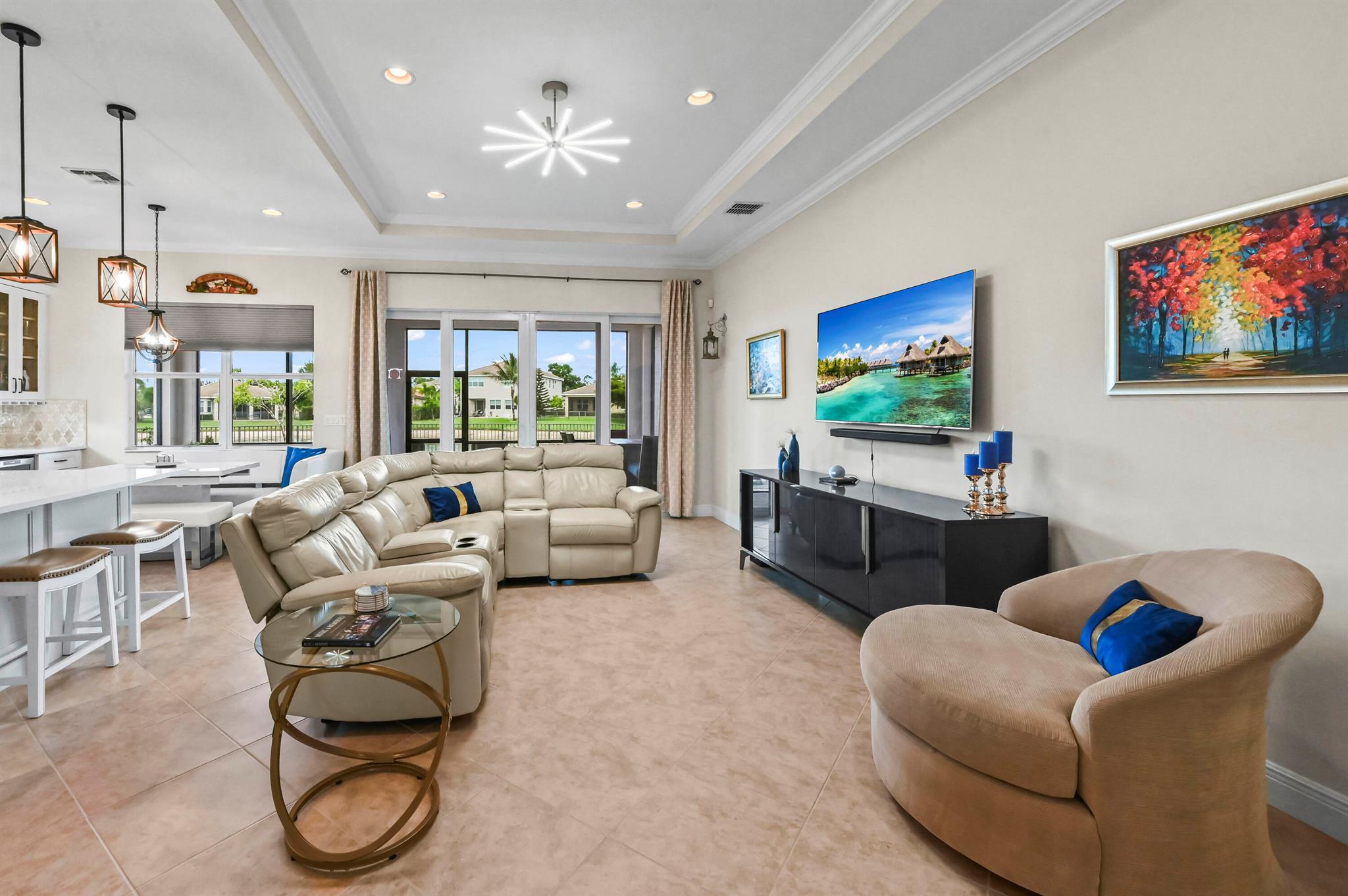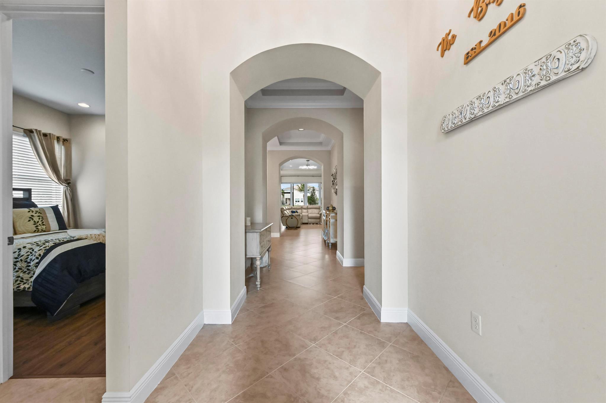 From the moment you arrive, you will be captivated by this stunning waterfront single-family home, perfectly situated on a cul-de-sac and an oversized lot with lush landscaping in the prestigious gated community of Portosol. This residence, with its 3 full bedrooms, 2.5 bathrooms and a den is designed for both elegant living including tray ceilings & custom moldings throughout and everyday comfort. A grand entrance leads to a formal dining room, perfect for hosting unforgettable gatherings, while the thoughtful split-bedroom floor plan ensures privacy for all. This home also features a dedicated office or den, providing an ideal space for remote work or a quiet retreat and can easily be converted to a 4th bedroom if needed.