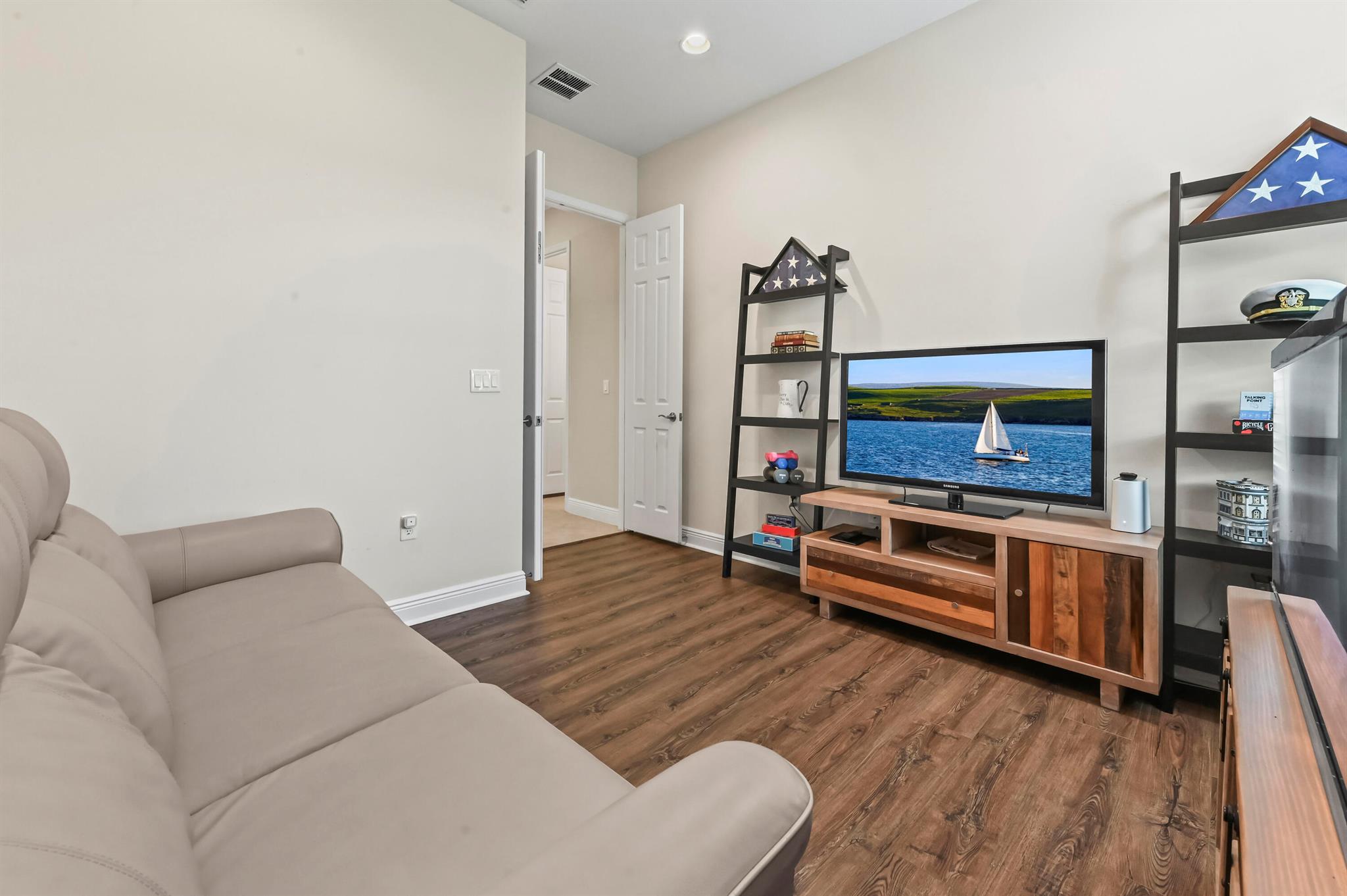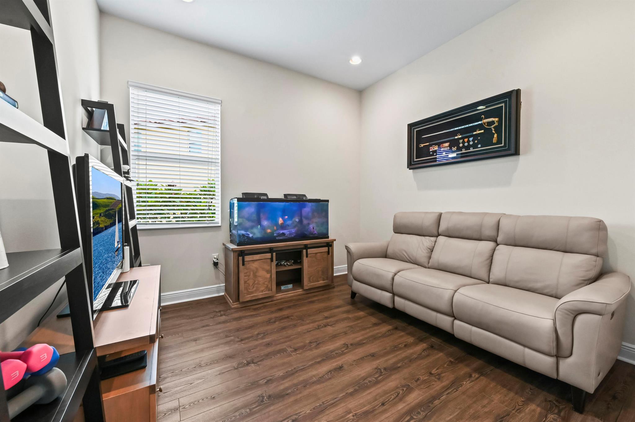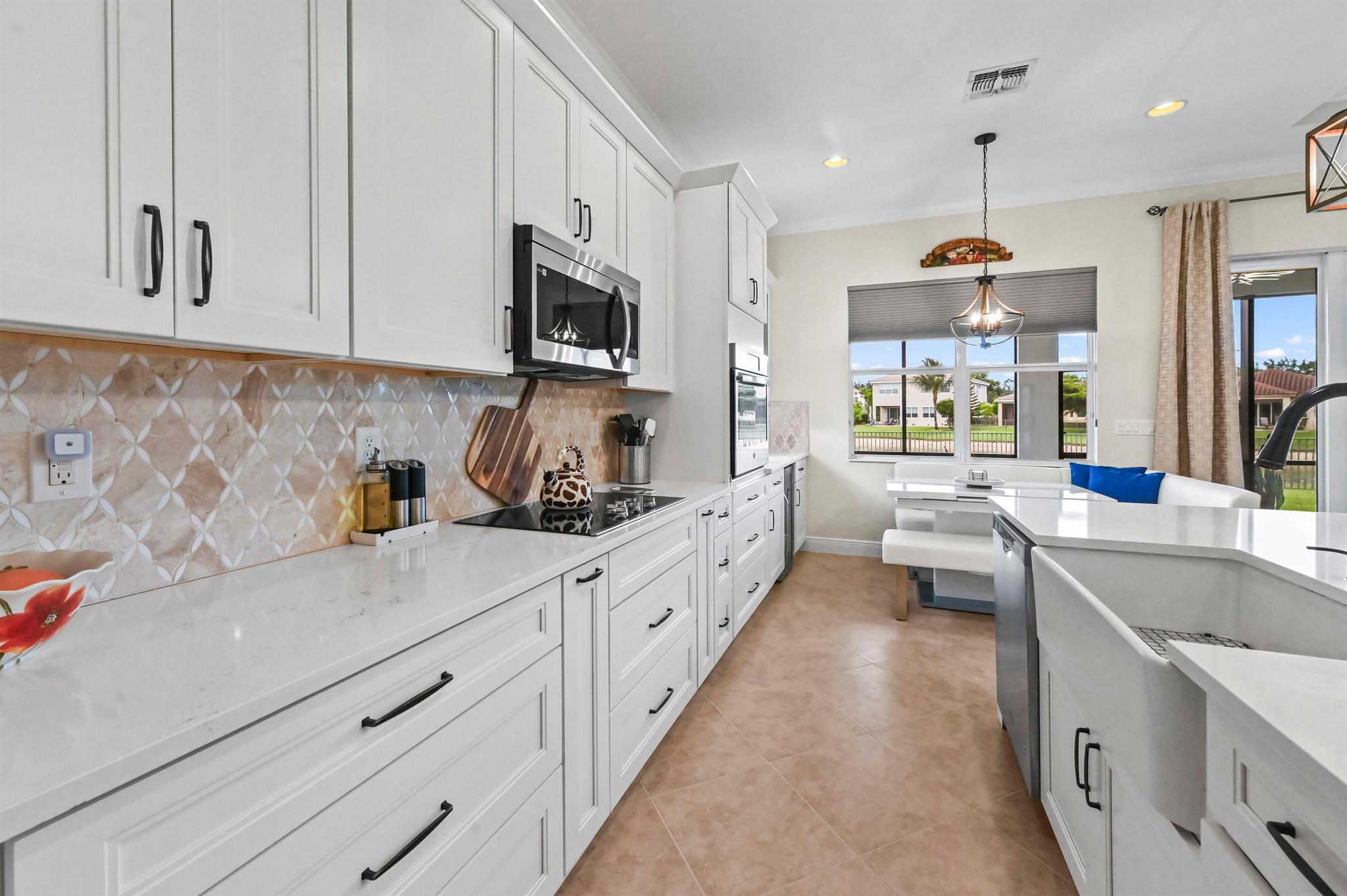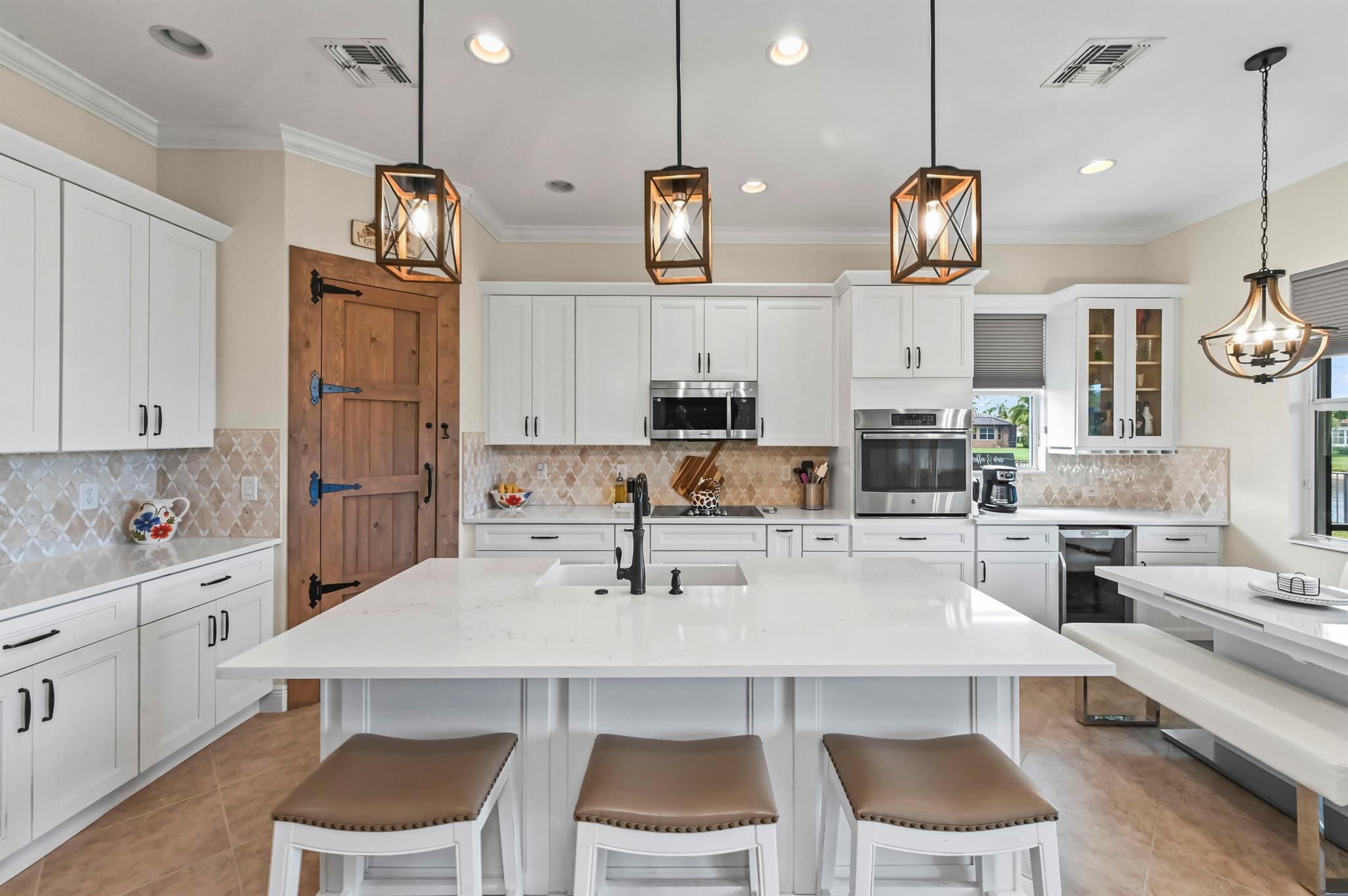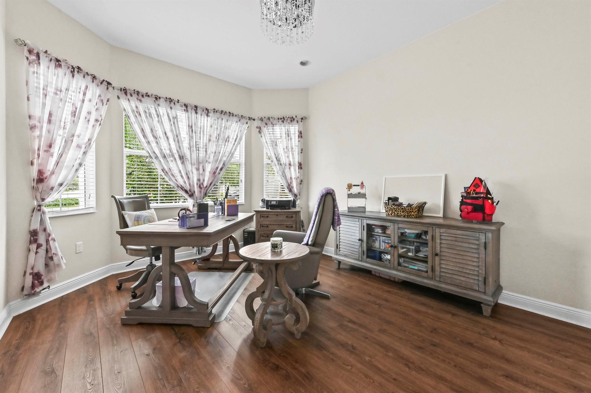 From the moment you arrive, you will be captivated by this stunning waterfront single-family home, perfectly situated on a cul-de-sac and an oversized lot with lush landscaping in the prestigious gated community of Portosol. This residence, with its 3 full bedrooms, 2.5 bathrooms and a den is designed for both elegant living including tray ceilings & custom moldings throughout and everyday comfort. A grand entrance leads to a formal dining room, perfect for hosting unforgettable gatherings, while the thoughtful split-bedroom floor plan ensures privacy for all. This home also features a dedicated office or den, providing an ideal space for remote work or a quiet retreat and can easily be converted to a 4th bedroom if needed.