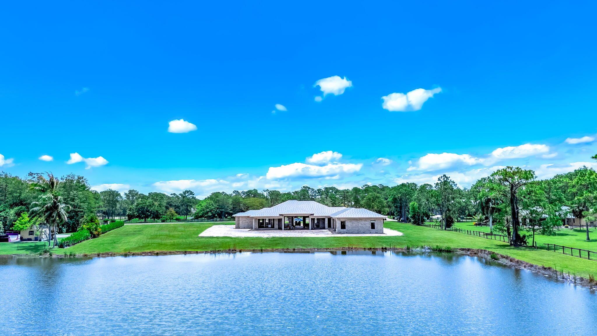 Welcome to Homeland! Gorgeous waterfront new construction in gated equestrian community. 5-acre lot with partial lake. Main house has 6 bedrooms, 5.5 baths, a huge flex room and a 6 car garage. Separate 1,000 SF 2/1 guest house for a total of 12,000 SF under roof. 19-foot foyer, 14-foot ceilings in main area, 12-foot ceilings throughout, including garages. Covered loggia for seamless structure. Magnificent master suite with outdoor shower. Fantastic club room with built-in bar. Salt water heated pool & spa. Top-of-the-line finishes, fixtures and appliances. 1,000 gallon propane tank with 80kW Kohler generator, motorized screens, & fireplaces. Ample room for accessory structures. Potential for finishes customization still available. Property under construction with Winter 2026 delivery.