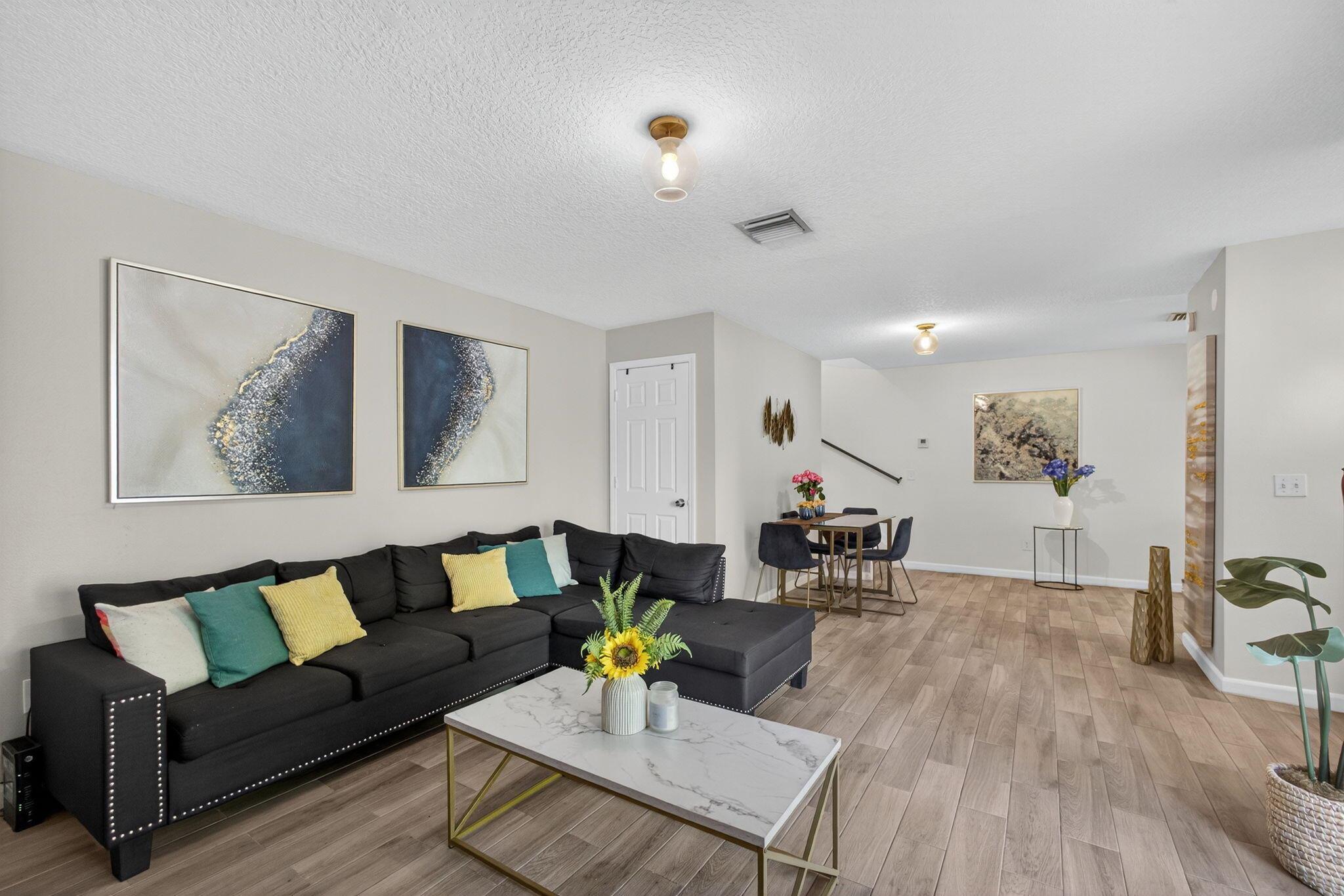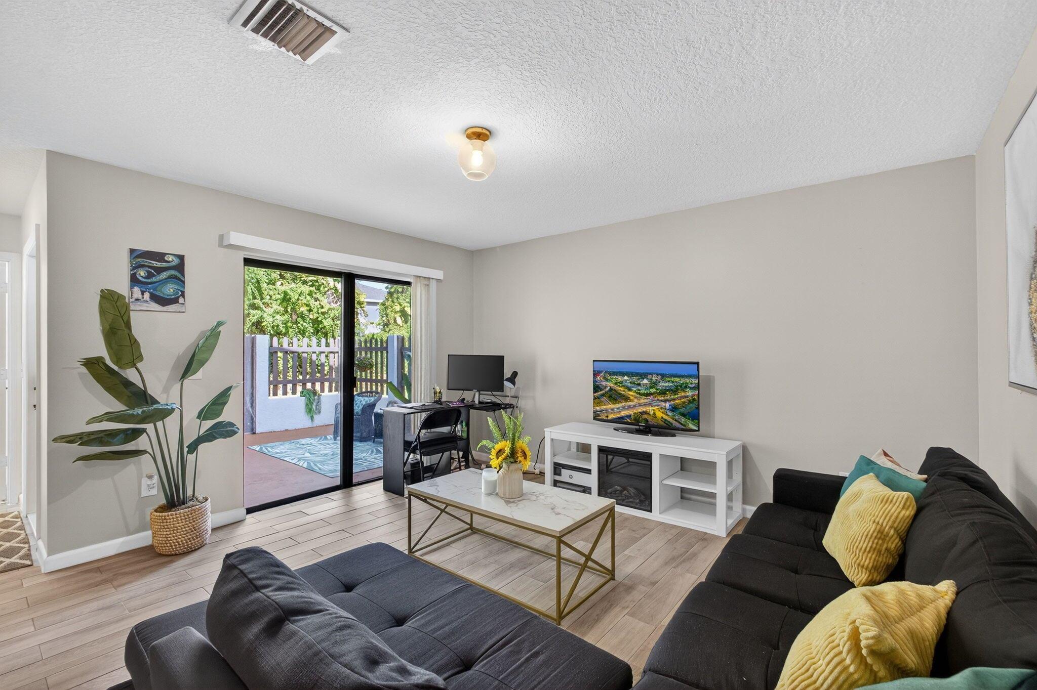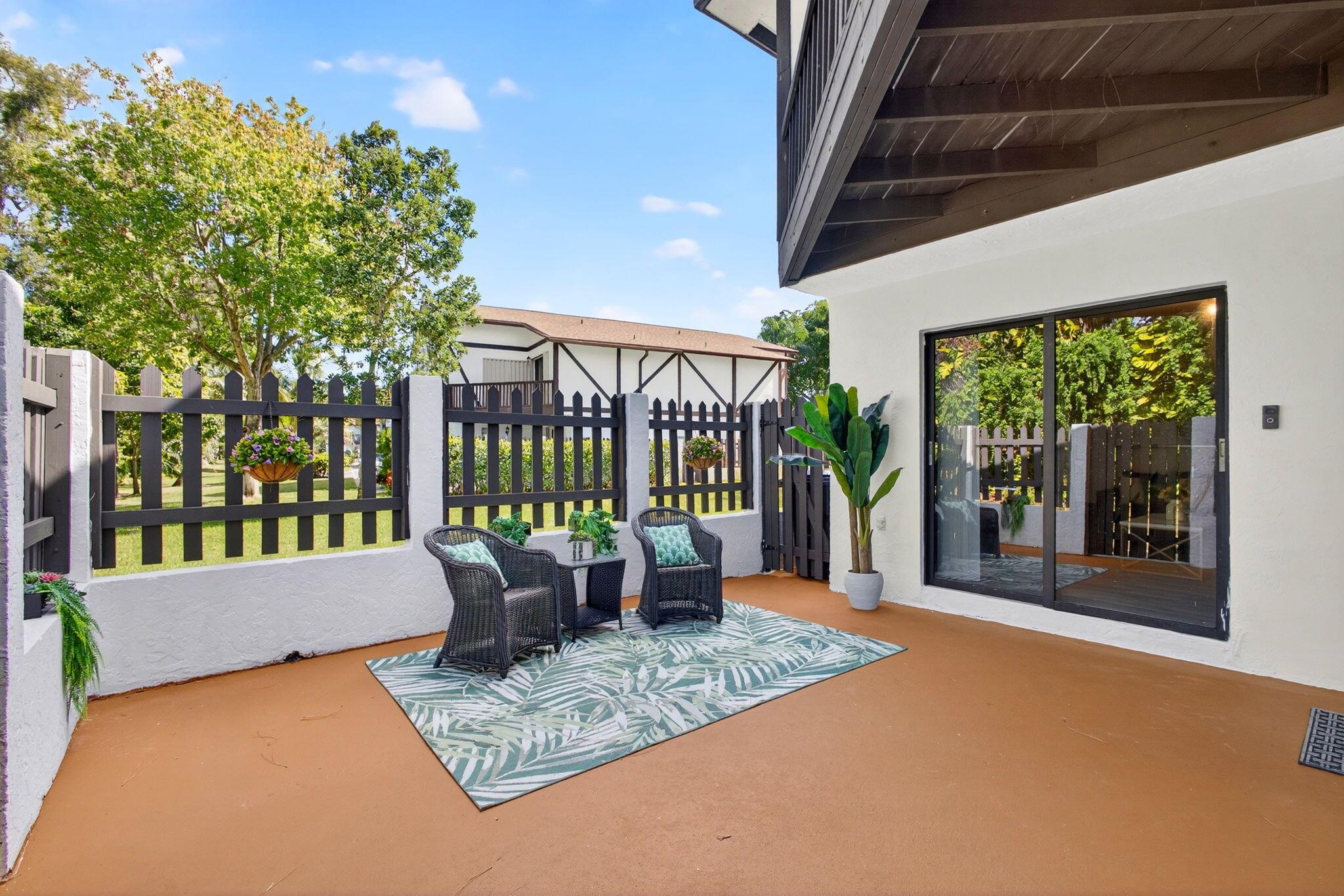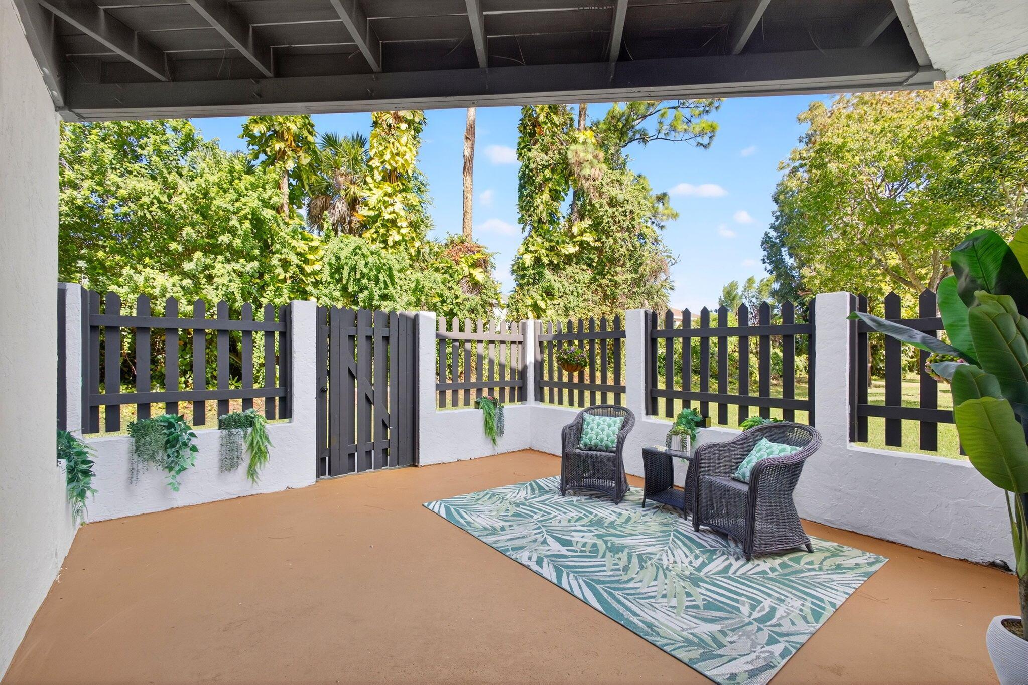 Discover this beautifully updated townhouse in a highly sought-after gated community in West Palm Beach. Offering a spacious, light-filled layout, this home boasts both a private balcony and a secluded courtyard -- perfect for enjoying the Florida lifestyle. Recent upgrades include a brand-new roof, updated appliances, new tile flooring downstairs and laminate upstairs, a renovated shower, new A/C, and a newer kitchen. Low HOA fees, a sparkling community pool, and an unbeatable location close to shopping, dining, and major highways.