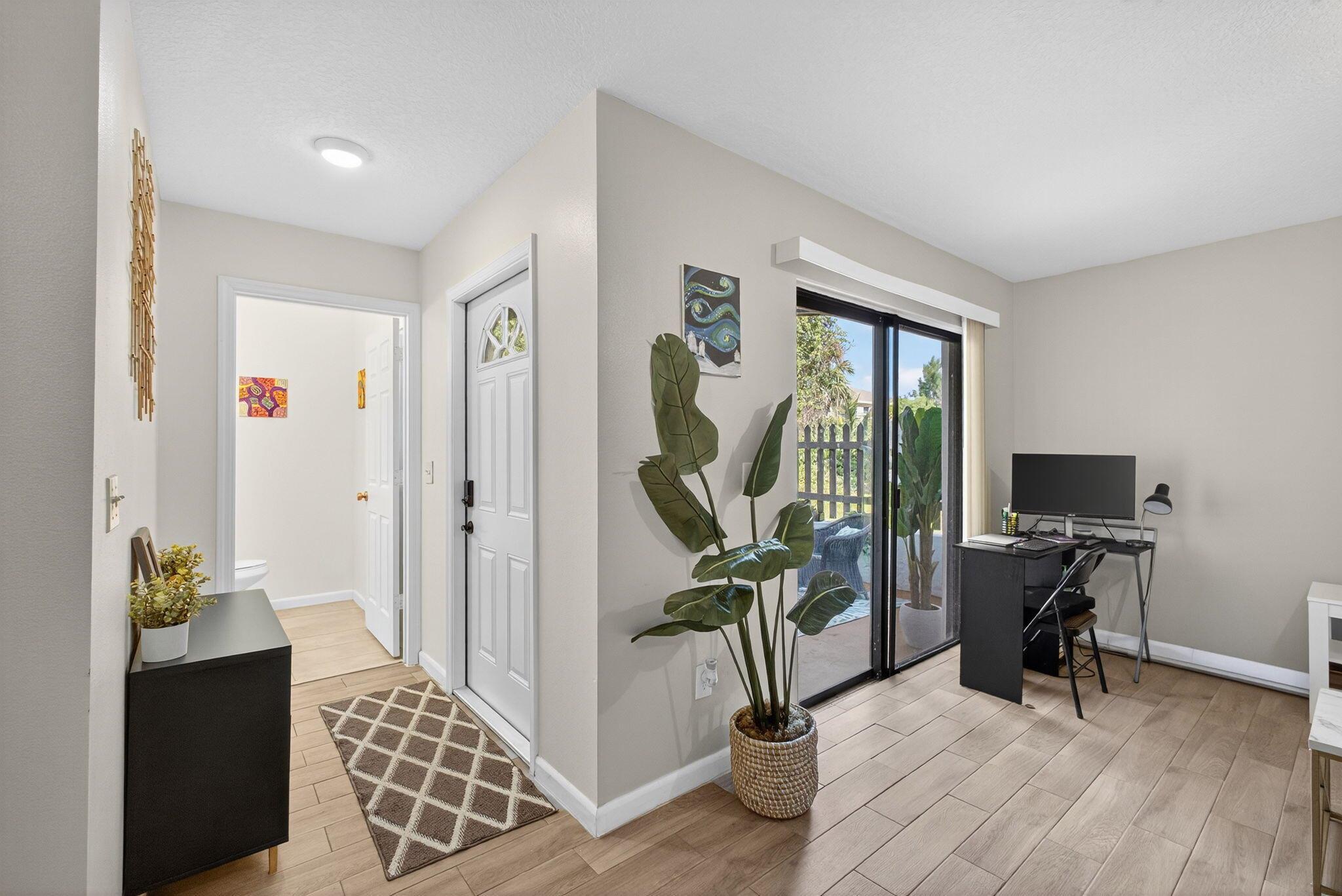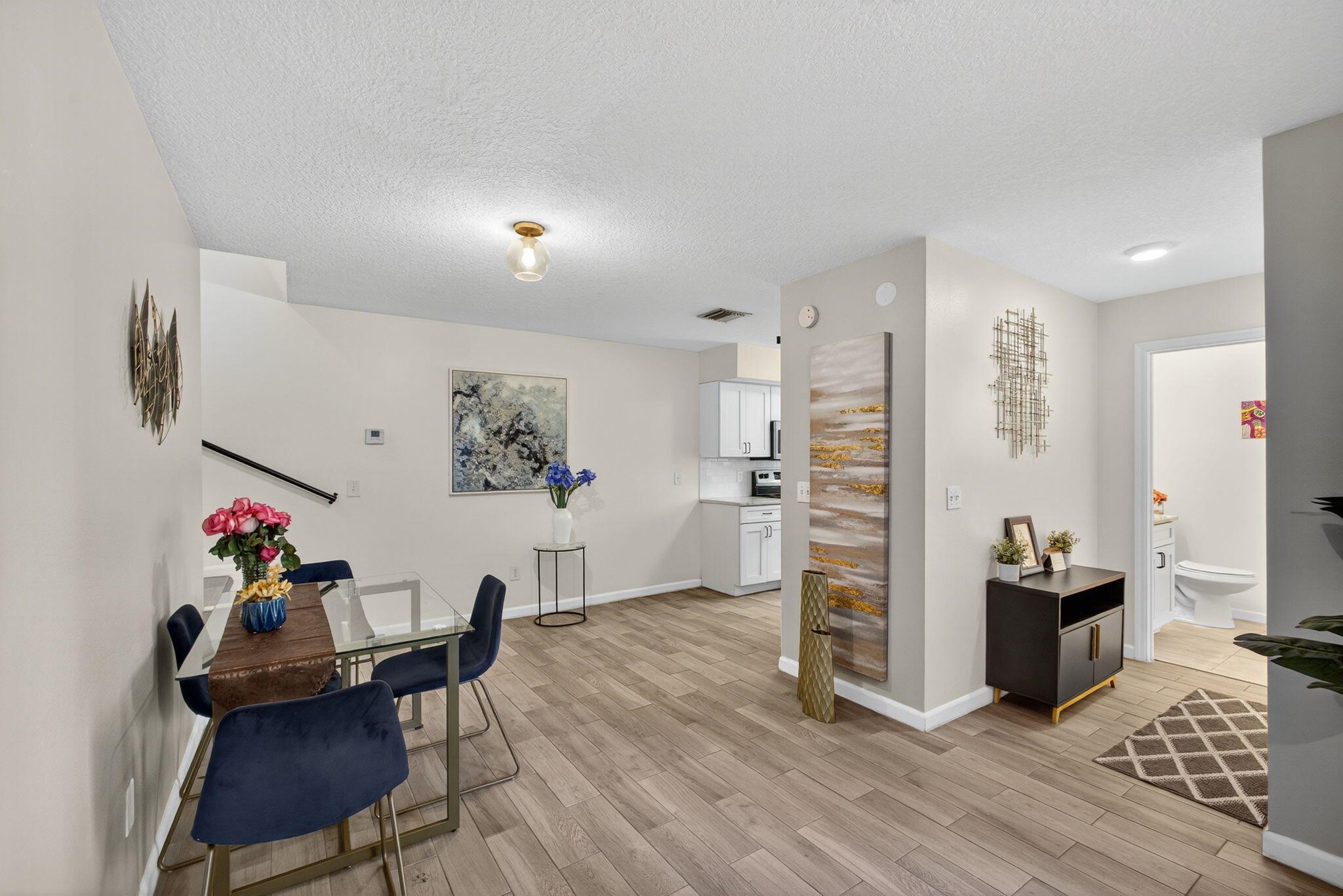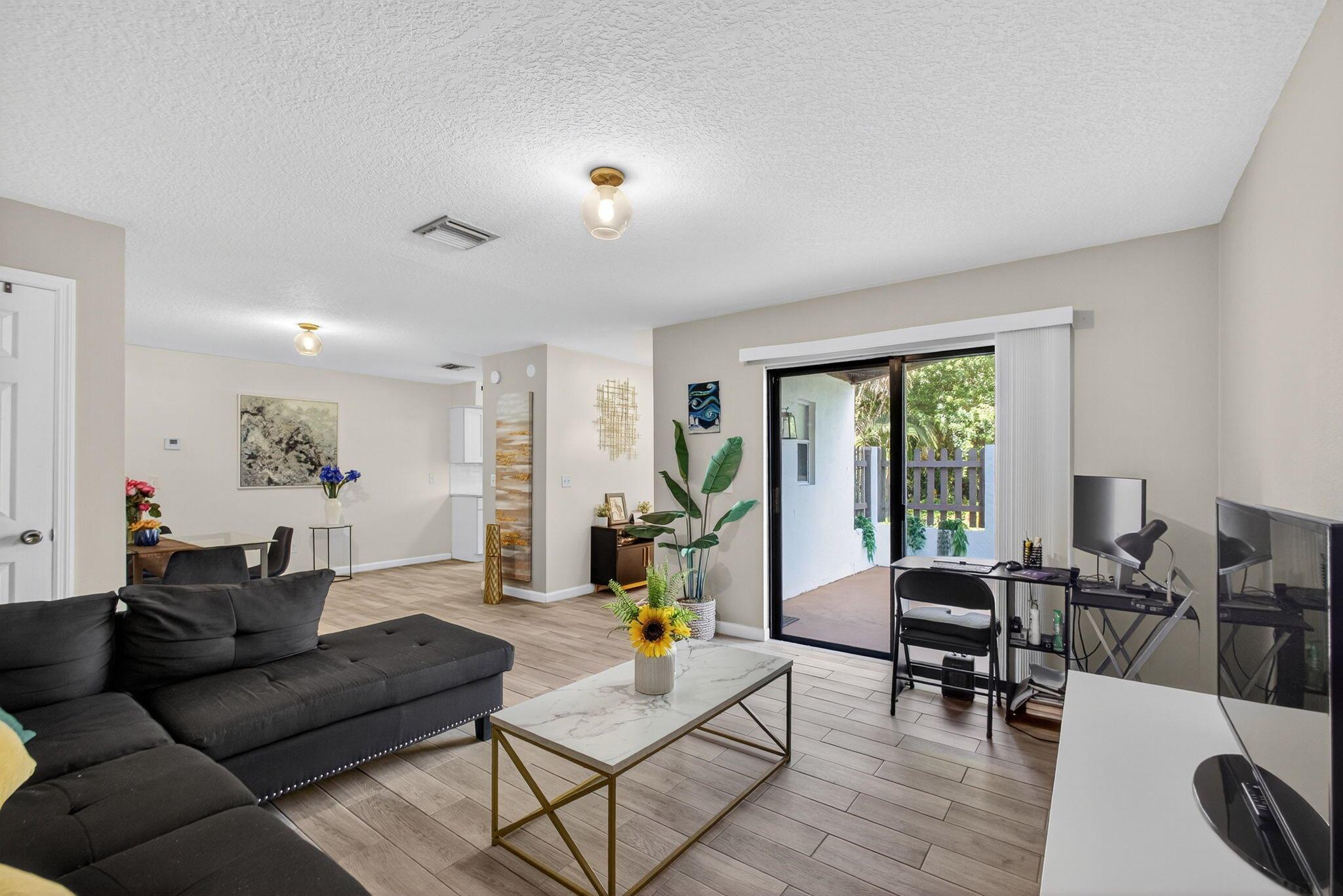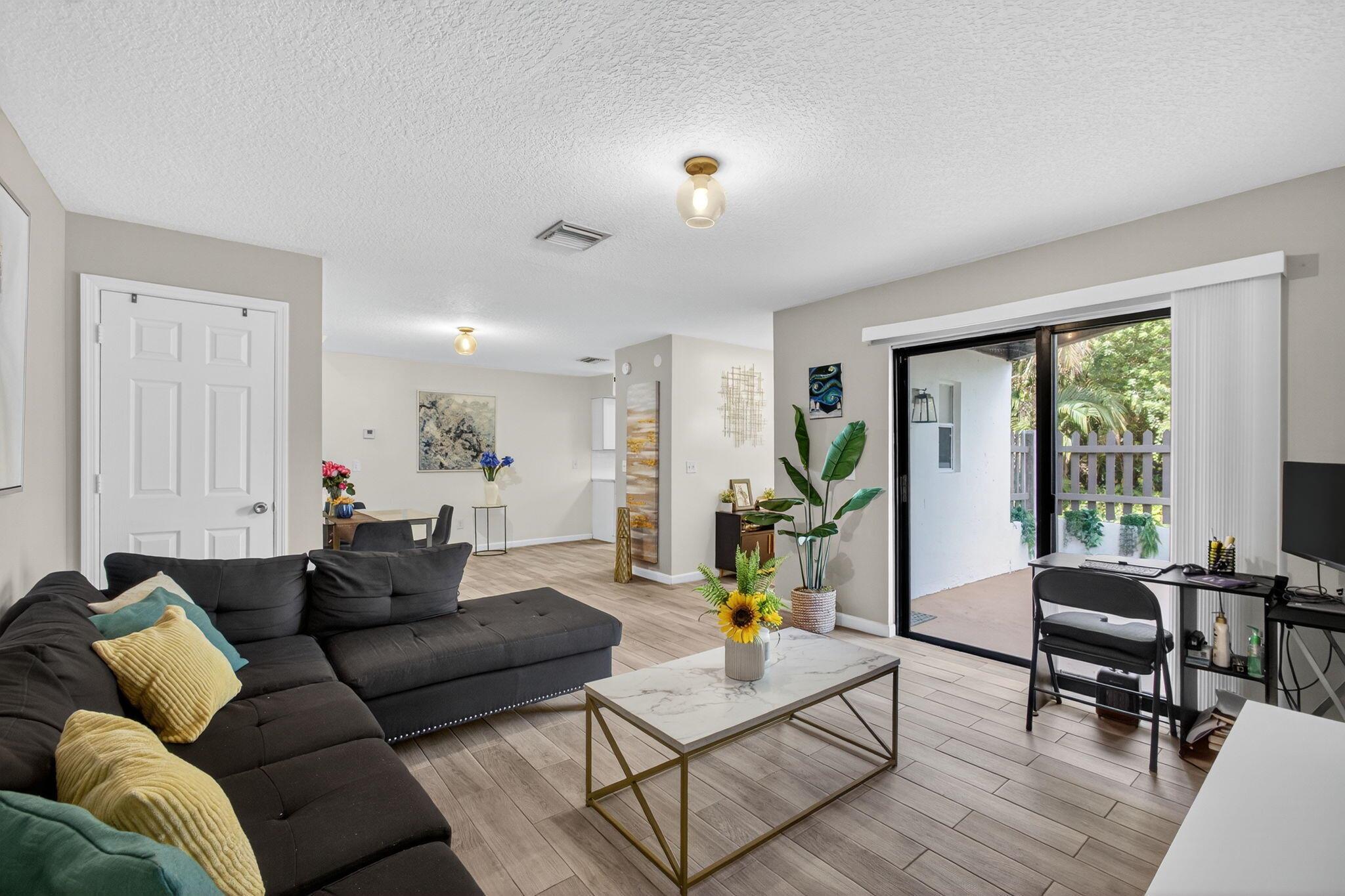 Discover this beautifully updated townhouse in a highly sought-after gated community in West Palm Beach. Offering a spacious, light-filled layout, this home boasts both a private balcony and a secluded courtyard -- perfect for enjoying the Florida lifestyle. Recent upgrades include a brand-new roof, updated appliances, new tile flooring downstairs and laminate upstairs, a renovated shower, new A/C, and a newer kitchen. Low HOA fees, a sparkling community pool, and an unbeatable location close to shopping, dining, and major highways.