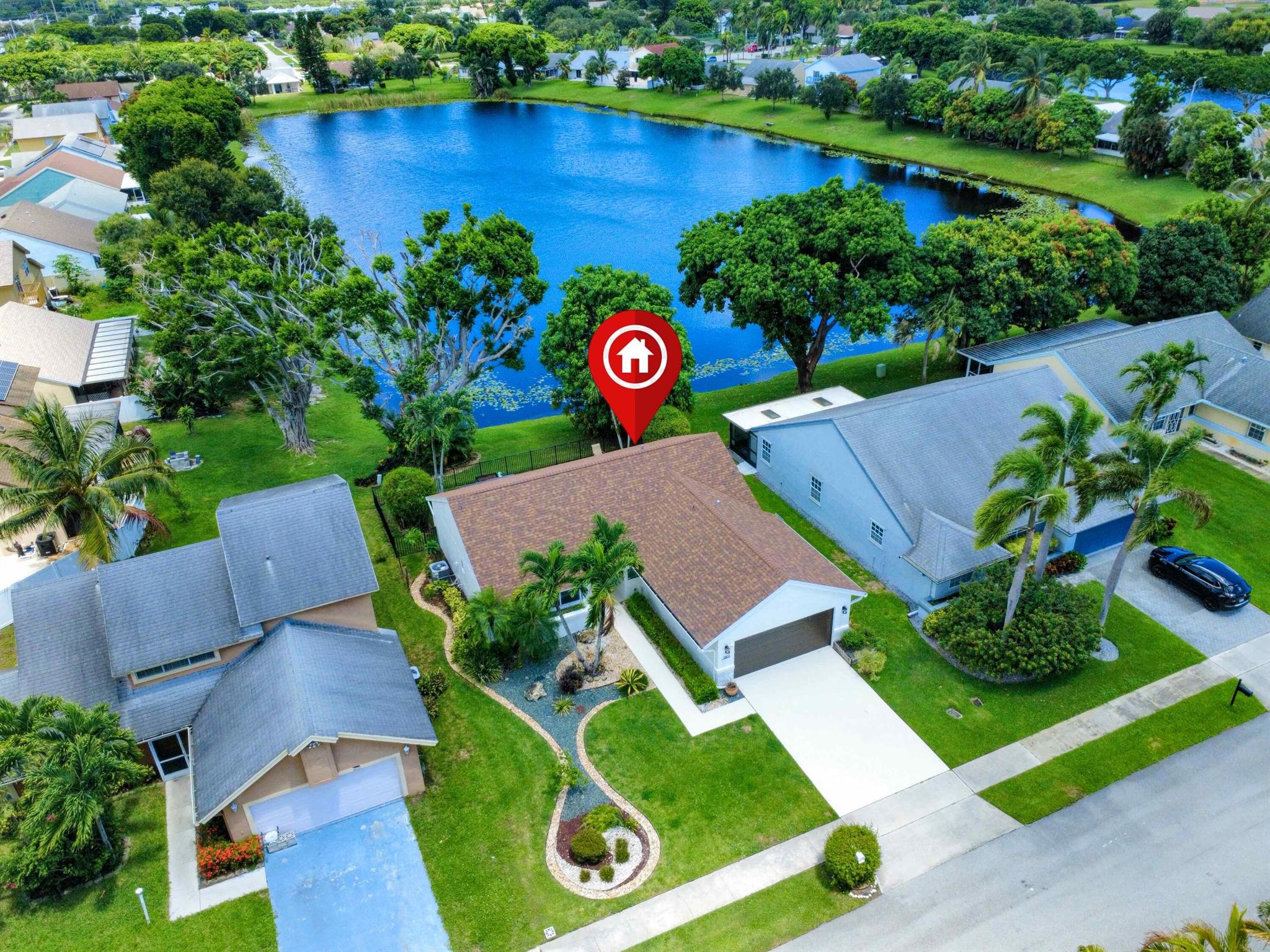 Welcome to this centrally located gated community with easy access to I-95 and the turnpike. Close to shopping and restaurants. The property boasts a newly painted exterior, new roof, new impact windows, new HVAC, new water heater and lush landscaping. The open floor plan, with updated cabinetry and appliances, offers a fantastic lakeview with plenty of natural light. This three bedroom, two bath, two car garage property is move in ready. Enjoy the back patio with long lake views that is fully fenced in and ready for entertaining.