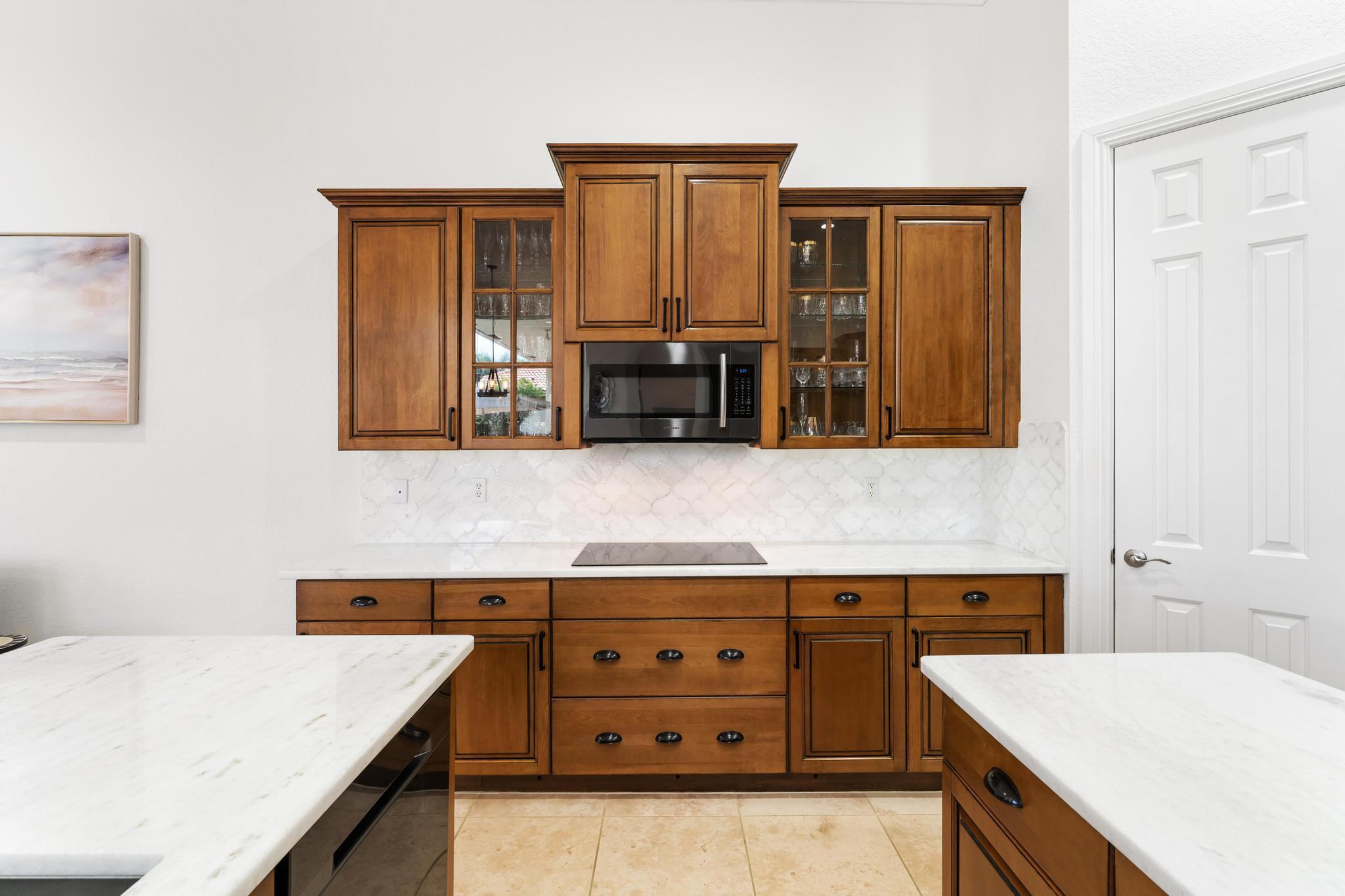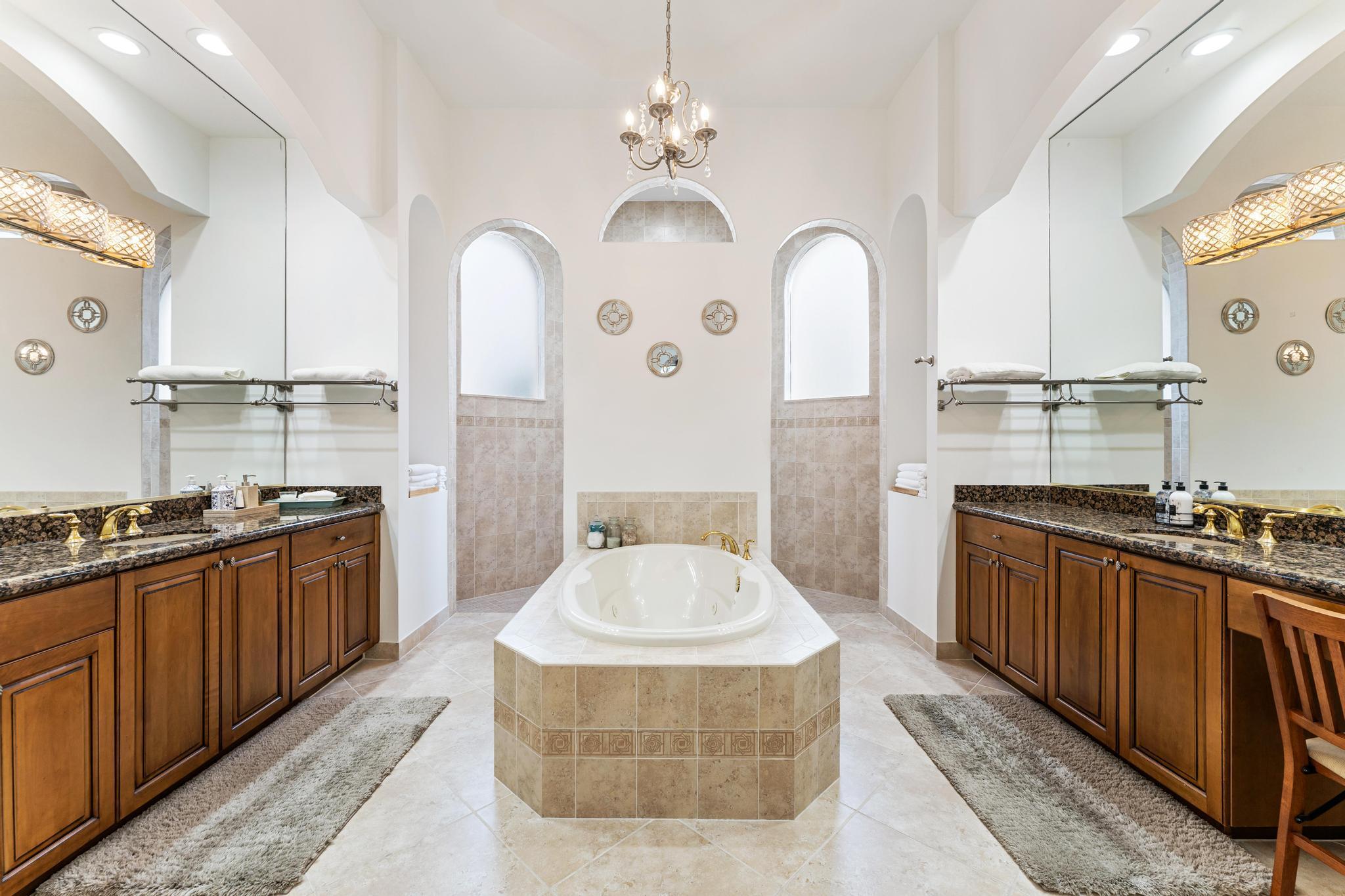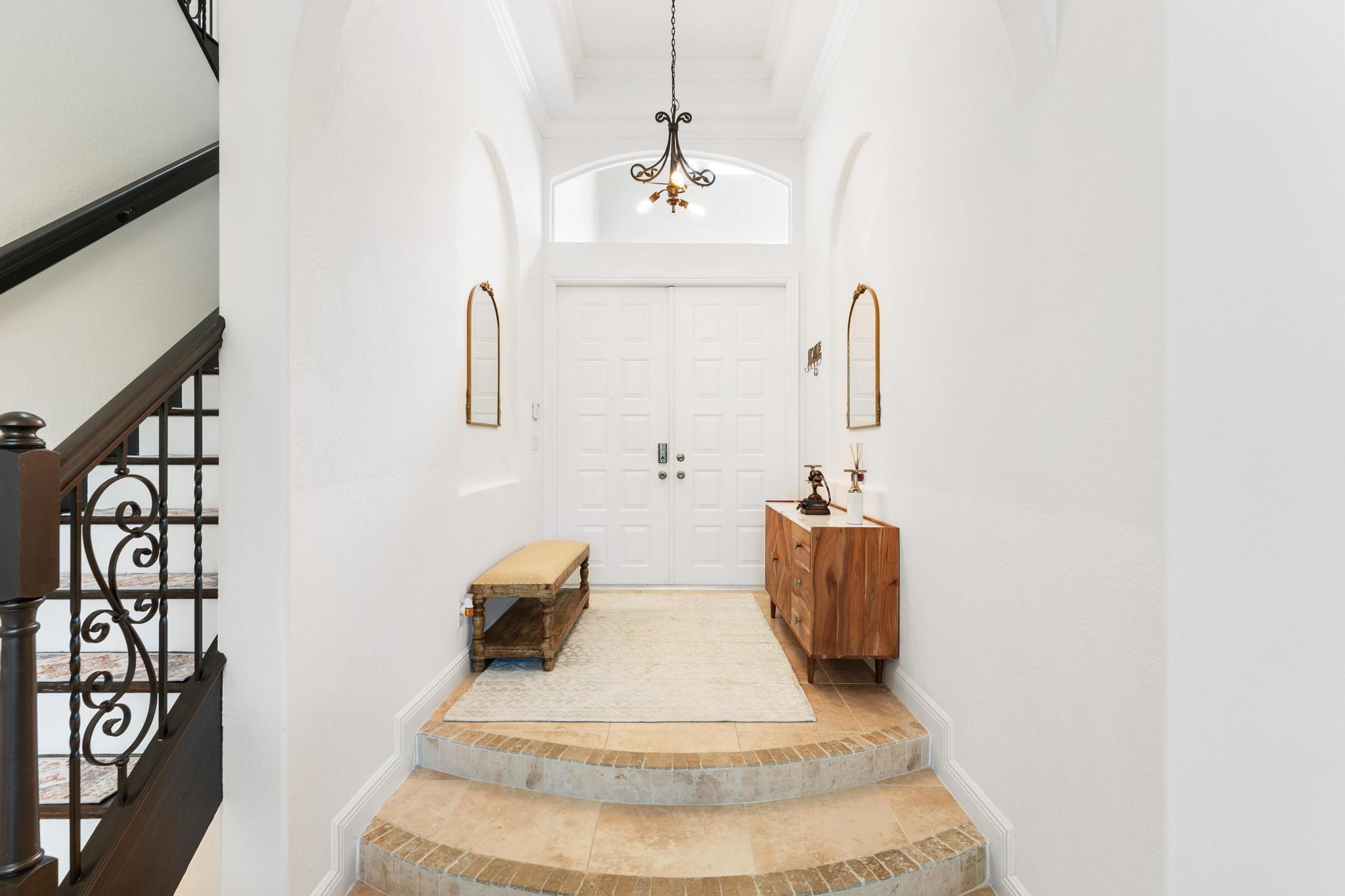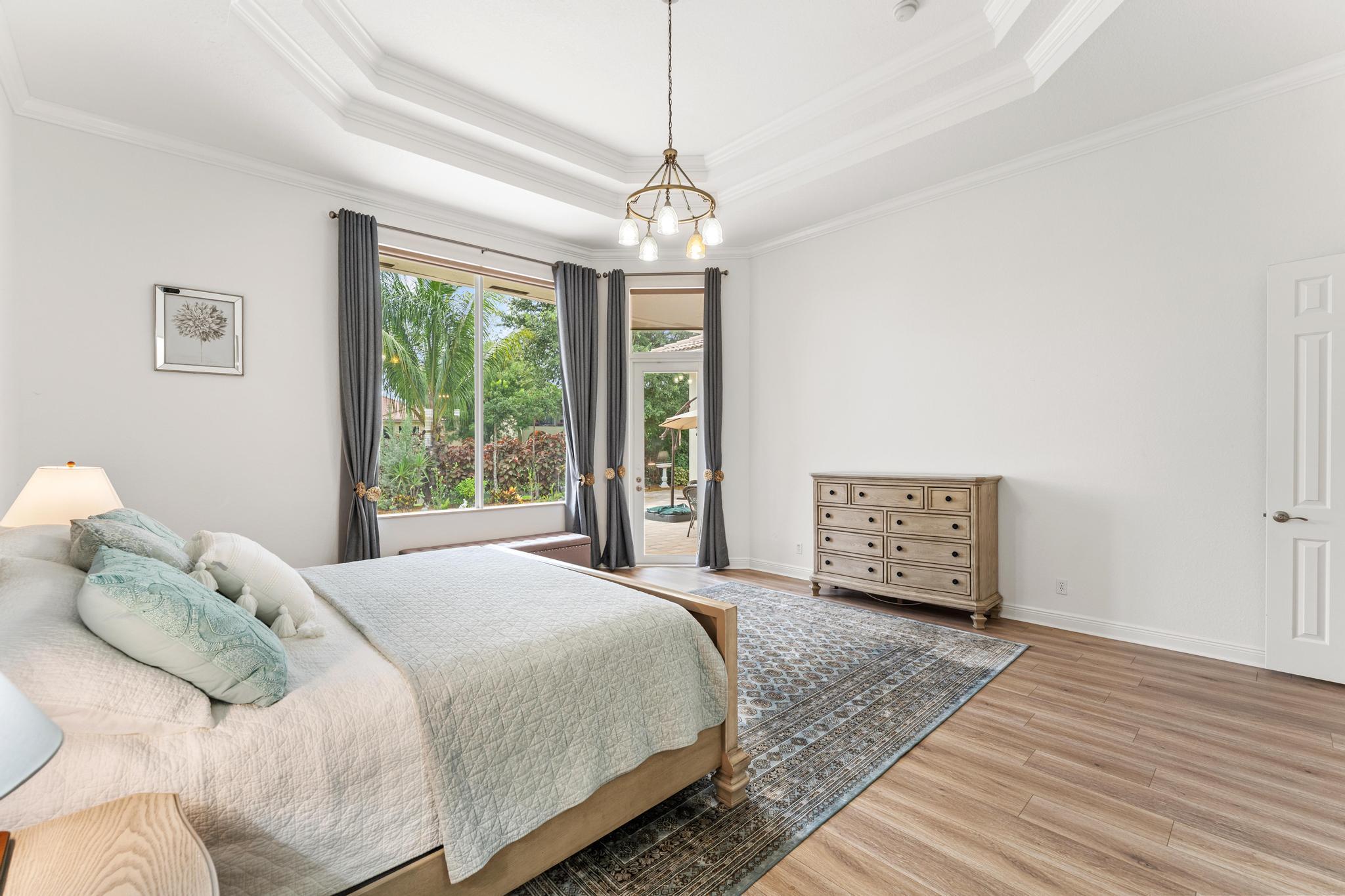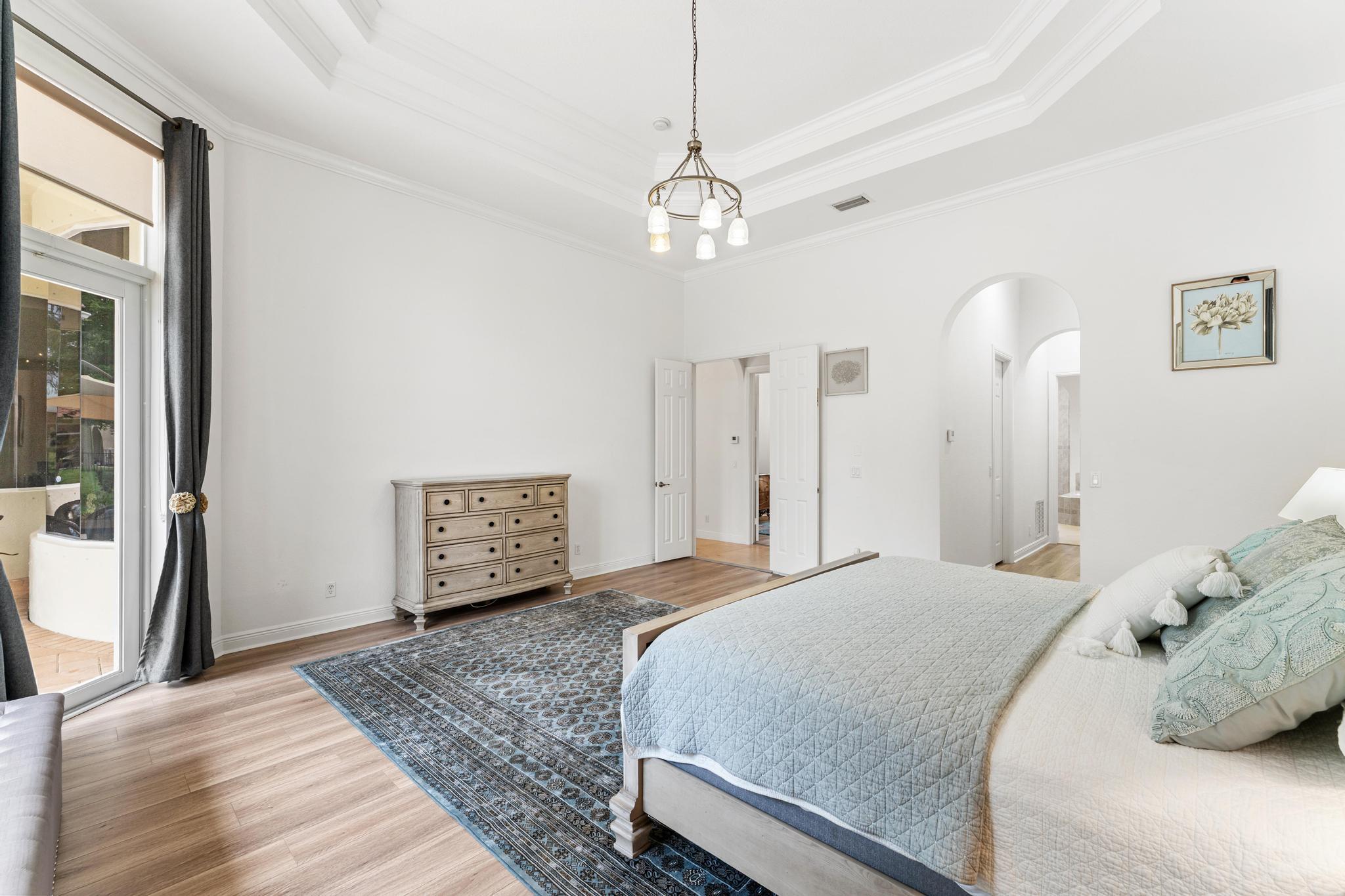 This elegant estate offers 4,179 sq ft with an open layout designed for both comfort and entertaining. Inside, the home showcases white marble countertops that flow seamlessly into the backsplash, updated flooring, and expansive living areas filled with natural light through oversized glass and arched windows. Beautiful French doors help create indoor-outdoor living through thoughtful design.The primary suite is a retreat of its own, featuring a European-style walk-around shower, jacuzzi tub, and dual sinks. Additional bedrooms provide flexibility for family, guests, or a private office.Outdoors, enjoy sweeping lake views from the extended patio with room for a pool and an outdoor bathroom. Located just minutes away from Turnpike, shops, golf, and so much more.