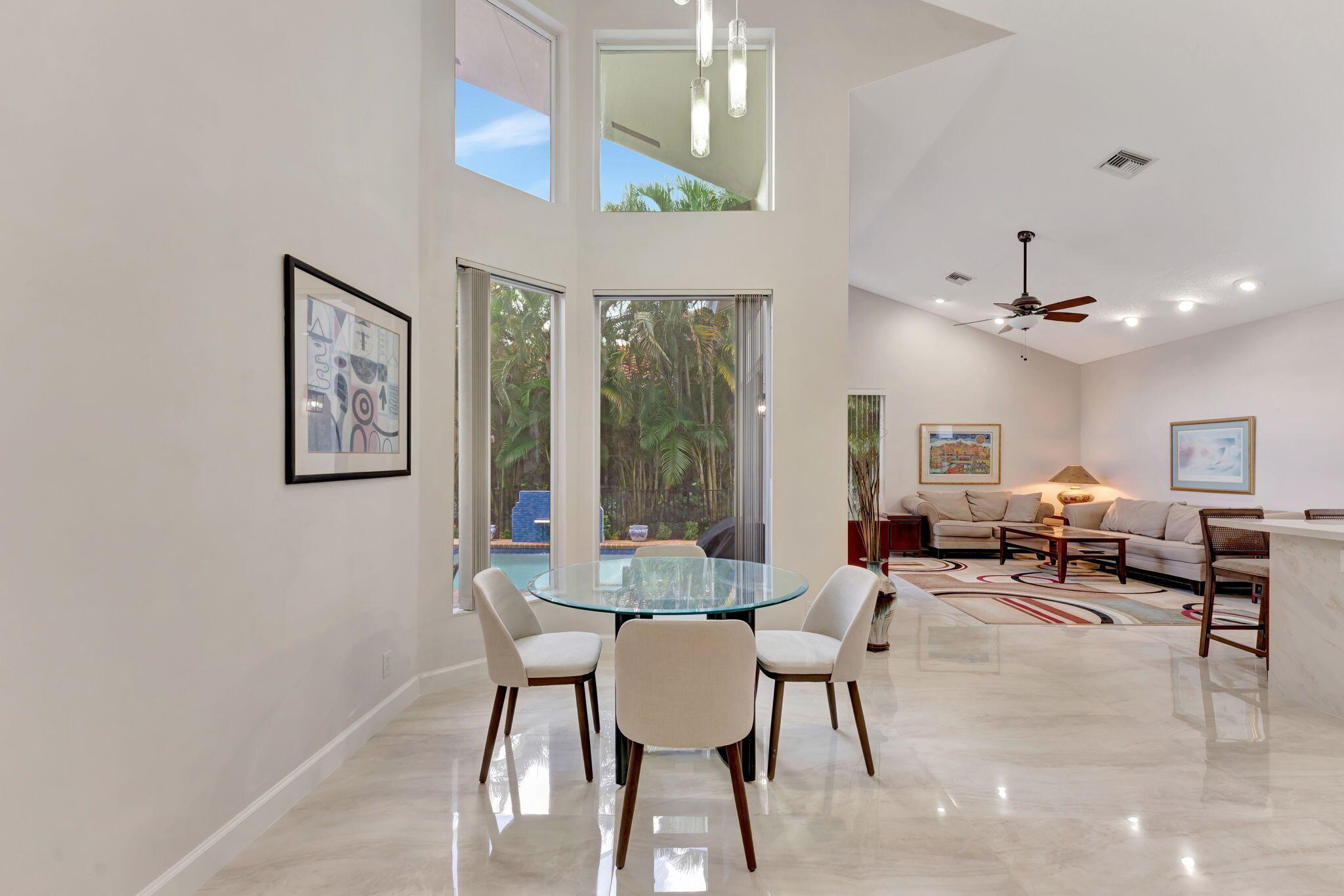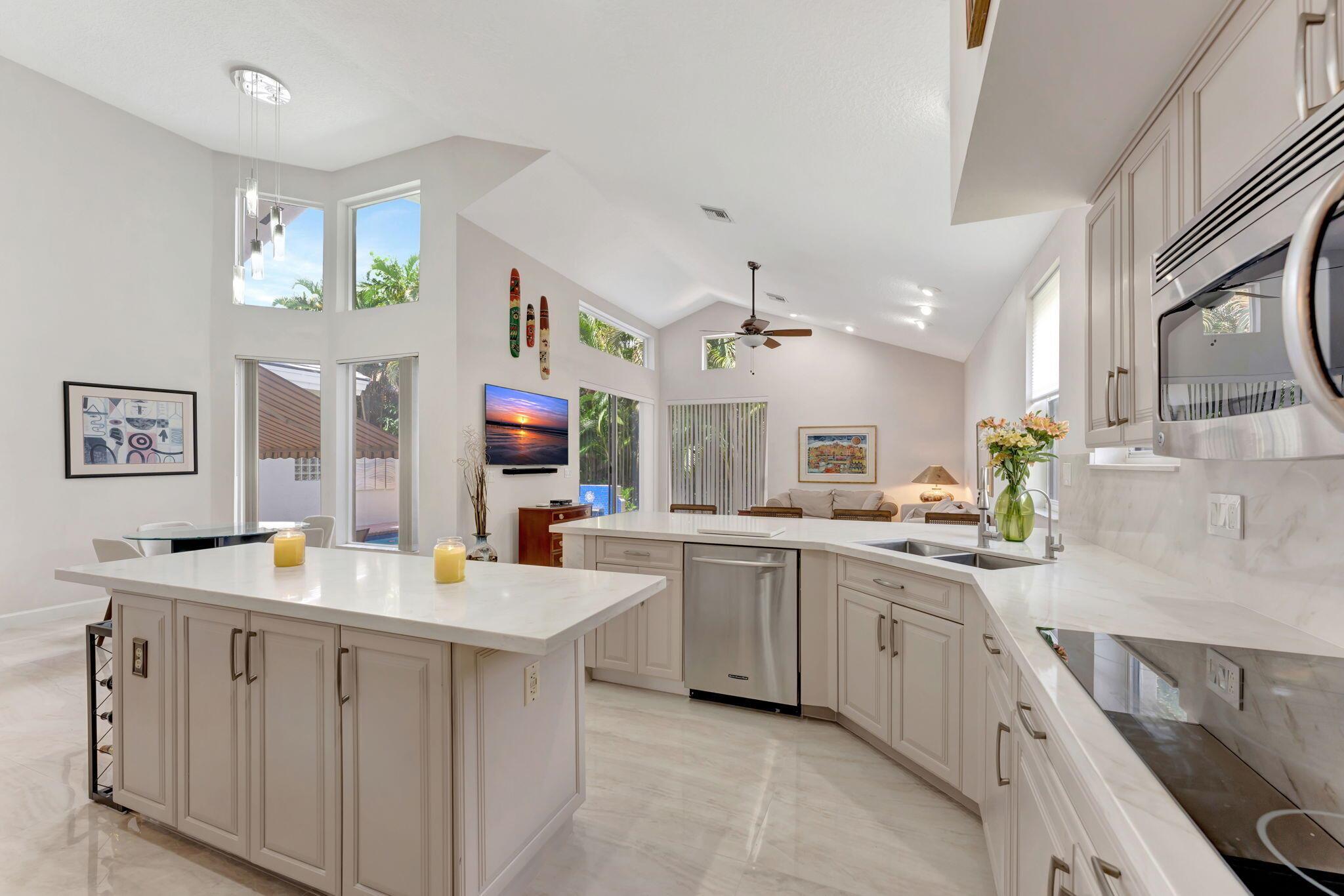 Stunning single-story home in the prestigious Seasons community of Boca Raton, featuring a new roof (2024) and new AC system (2025). The home was just completely painted on the outside, adding to its fresh, move-in-ready appeal. This elegant residence offers soaring ceilings and abundant natural light throughout, with 4 bedrooms, 3 full baths, and 2 half baths, all fully remodeled. The smartly updated kitchen boasts quartz countertops, stainless steel appliances, and ample cabinet space. Beautiful new flooring and 5'' baseboards complement the freshly painted neutral interiors with a modern touch. Enjoy formal dining and a floor plan perfect for both intimate and large group entertaining.