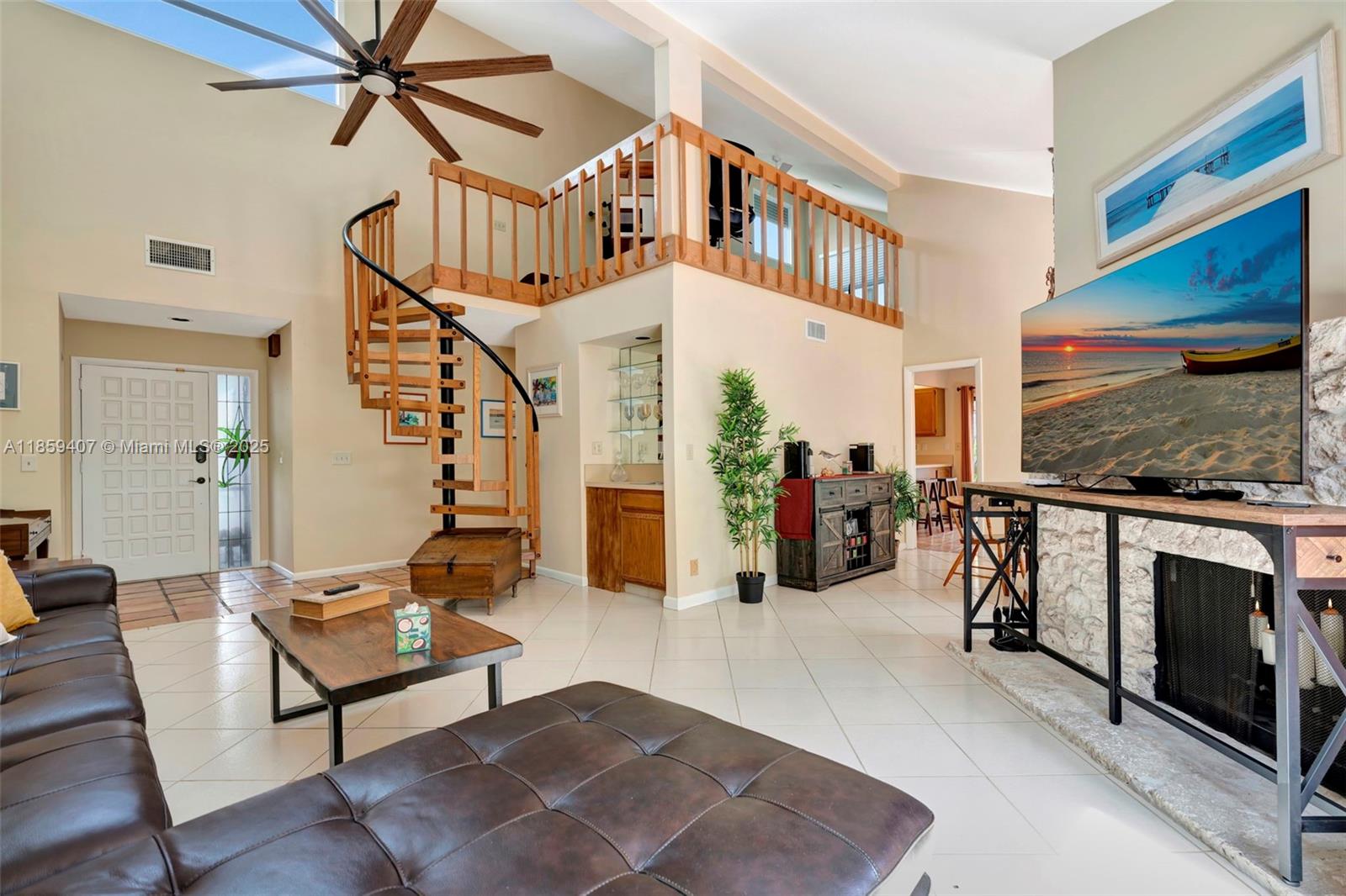 Leaset expensive single family home in JL and Greens Cay, priced to sell. Spacious 2/2.5 /2, vaulted ceilings and tons of natural light, an elegant wood burning stone fireplace in the living room , wet bar, formal dinning room, spiral staircase leading to a oversized second-floor loft that can be enclosed and has storage, eat-in kitchen with pantry and stainless steel appliances, there are two beautifully landscaped patios for outdoor entertainment and grilling , master bedroom is large and on the ground floor with walk in closet , 2nd bedroom is a suite by itself and a private bath and remodeled shower. Two car garage and plenty of guest parking spaces. Upgrades include tile roof 2021, impact windows 2024, AC 2018. 24 hour manned gate. Close to shops, restaurants, Hospital and airport.