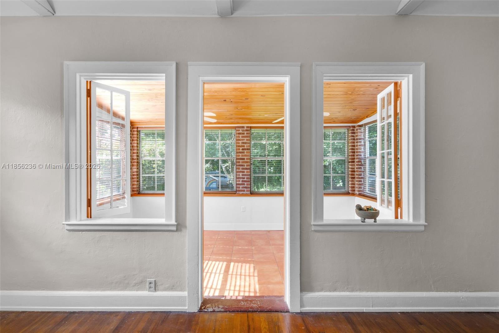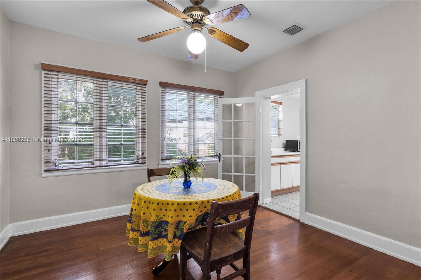 Price reduction for a quick sale! Beautiful updated historic home located in the Historic District of prestigious South Miami. Nestled in an area surrounded by native plants, birds, and butterflies, makes you feel in a tropical paradise all year round. Quiet one-way street by a canal leads to Brewer Park, a tropical Audubon Society birding location. Three bedrooms, two baths, formal living and dining area leading to a very spacious kitchen with an additional room. The spacious primary bedroom provides a serene retreat overlooking the lush backyard, with ample closet space and a private bathroom. A sunroom and loft offer additional space. Garage converted to utility room and laundry with Brazilian racks. This home combines functionality and charm with a beautiful and peaceful environment.