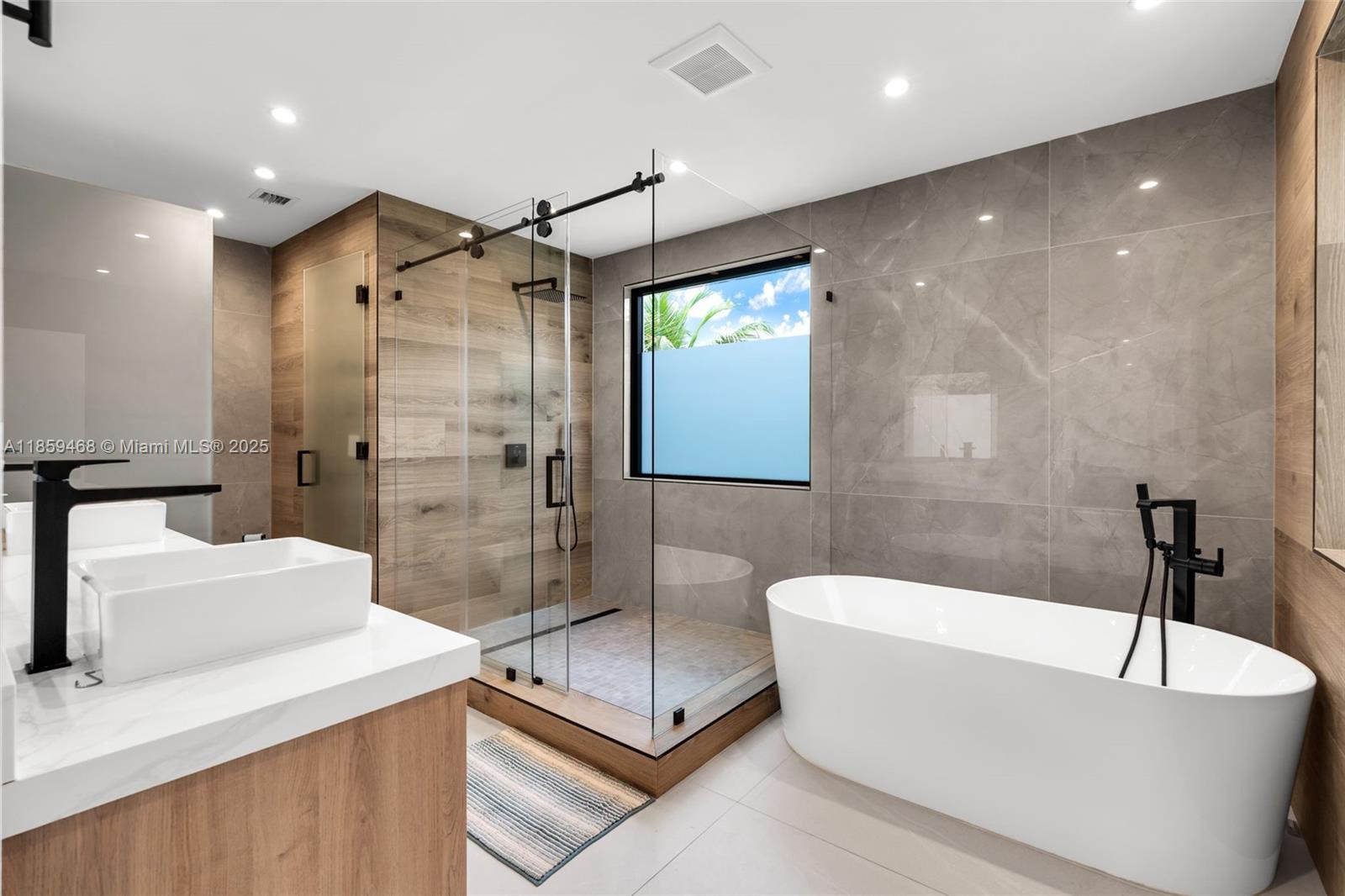 Welcome to "The Casa Zen" – a stunning new-construction sanctuary masterfully designed for refined indoor-outdoor living. This single-story 5-bedroom, 5-bath residence (plus cabana bath & outdoor shower) blends modern elegance with resort-style comfort. Soaring 13’9” ceilings, 48x48 porcelain floors, 8-ft solid wood doors, & walls of impact glass create a dramatic, light-filled backdrop overlooking the pool. The chef-inspired kitchen boasts quartz countertops, Viking appliances, gas range, wine cooler, & pantry. Spacious bedrooms offer peaceful retreats, each with sleek modern baths. Entertain effortlessly under the covered pergola with summer kitchen, heated pool, & jacuzzi. Complete with 2-car garage & EV charger — this architectural masterpiece delivers elevated luxury in every detail.