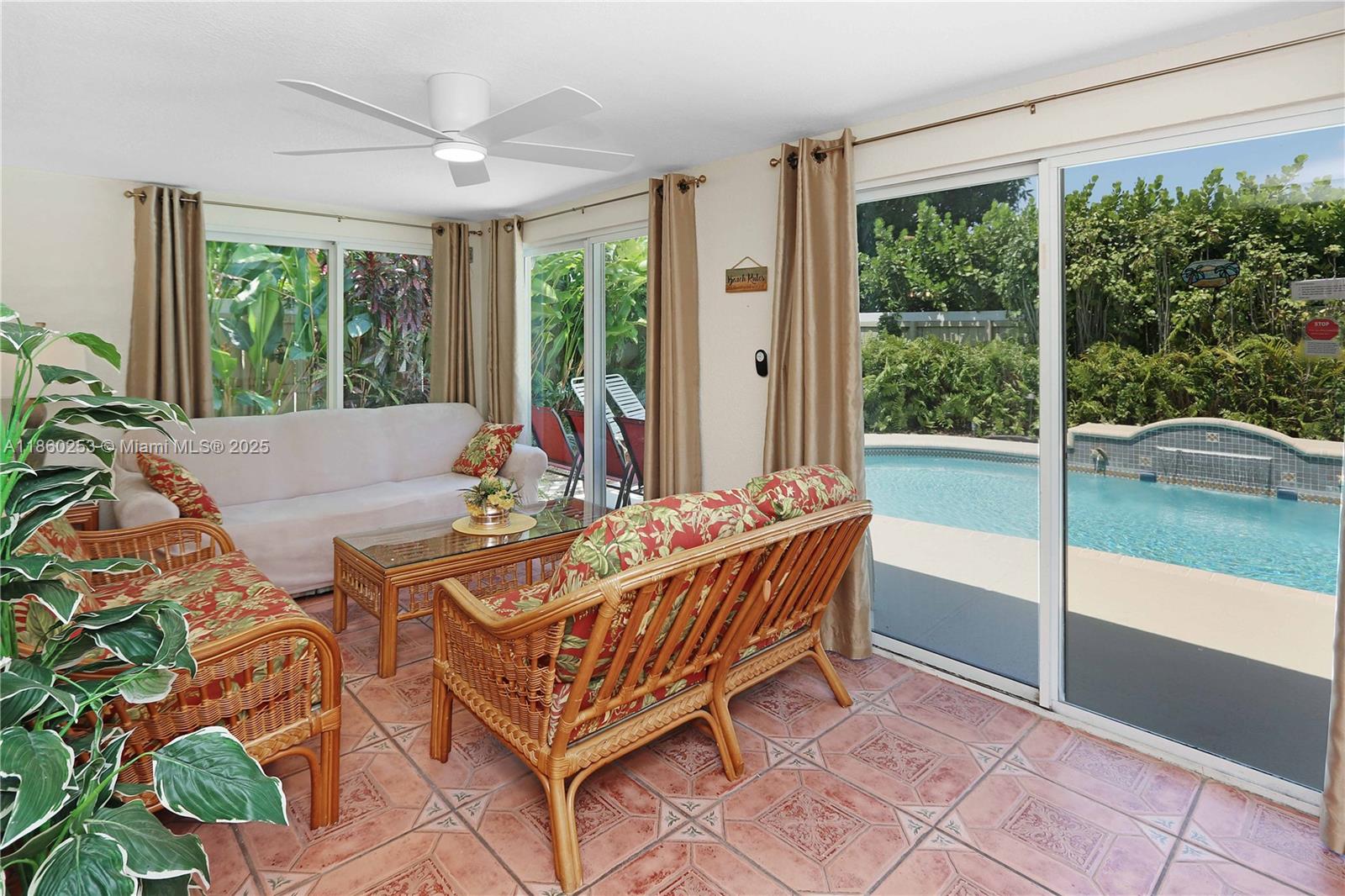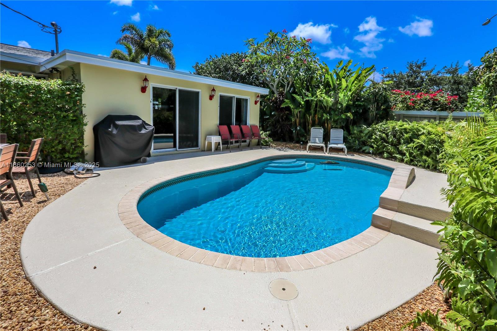 Beautiful 4-bed, 2-bath pool home in the heart of Wilton Manors! This spacious property features an open floorplan with abundant natural light streaming through large windows, creating a bright and warm ambiance. Set on an expansive 10,000+ sq ft corner lot, the fully fenced backyard offers resort-style living with a heated saltwater pool featuring a waterfall and landscaping lights. New Roof, New Gutters, New Water Heater, updated kitchen and baths, interior laundry room, impact windows in the Florida Room, and shutters for other windows add modern touches. A new sprinkler well pump is also included, and the home is being sold fully furnished. Currently holding an active vacation rental license, this property is ideally located near downtown Fort Lauderdale and the beaches.