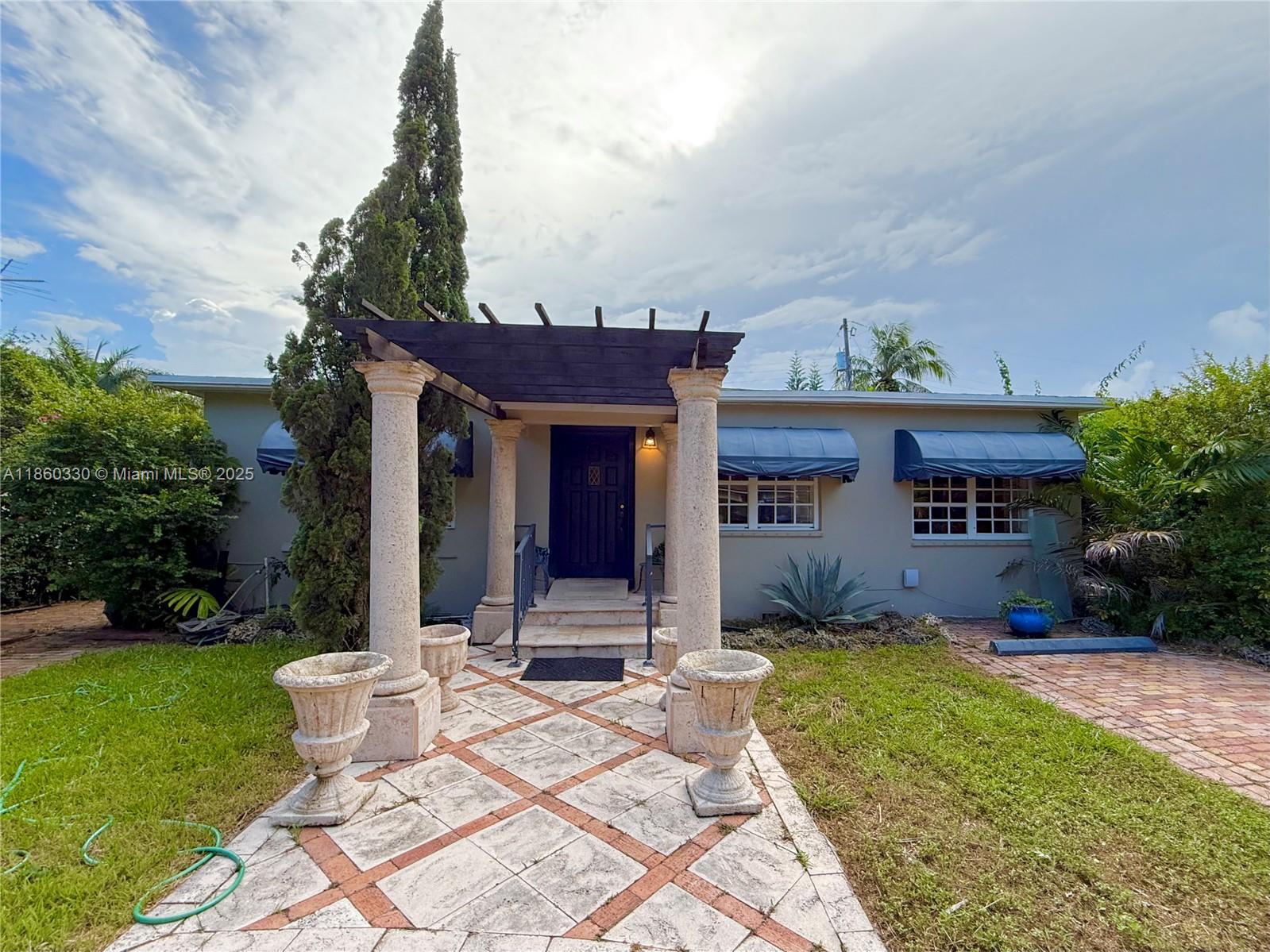 Prime Schenley Park location—minutes to Nicklaus Children’s Hospital, the Biltmore, UM, Publix, dining, and parks. Charming 3-bedroom, 2-bath with a flexible layout and potential private-entry suite for guests or supplemental income. Dual entrances with an electronically operated gate enhance privacy and convenience. A sweeping circular driveway accommodates multiple vehicles and is framed by manicured landscaping for standout curb appeal. Inside, bright, easy-flow living areas suit everyday life and entertaining. Diligently maintained with a 2021 roof for peace of mind. Set on a tree-lined street in one of the area’s most coveted neighborhoods, this residence pairs an unbeatable location with practical. Move-in ready and Easy to Show!