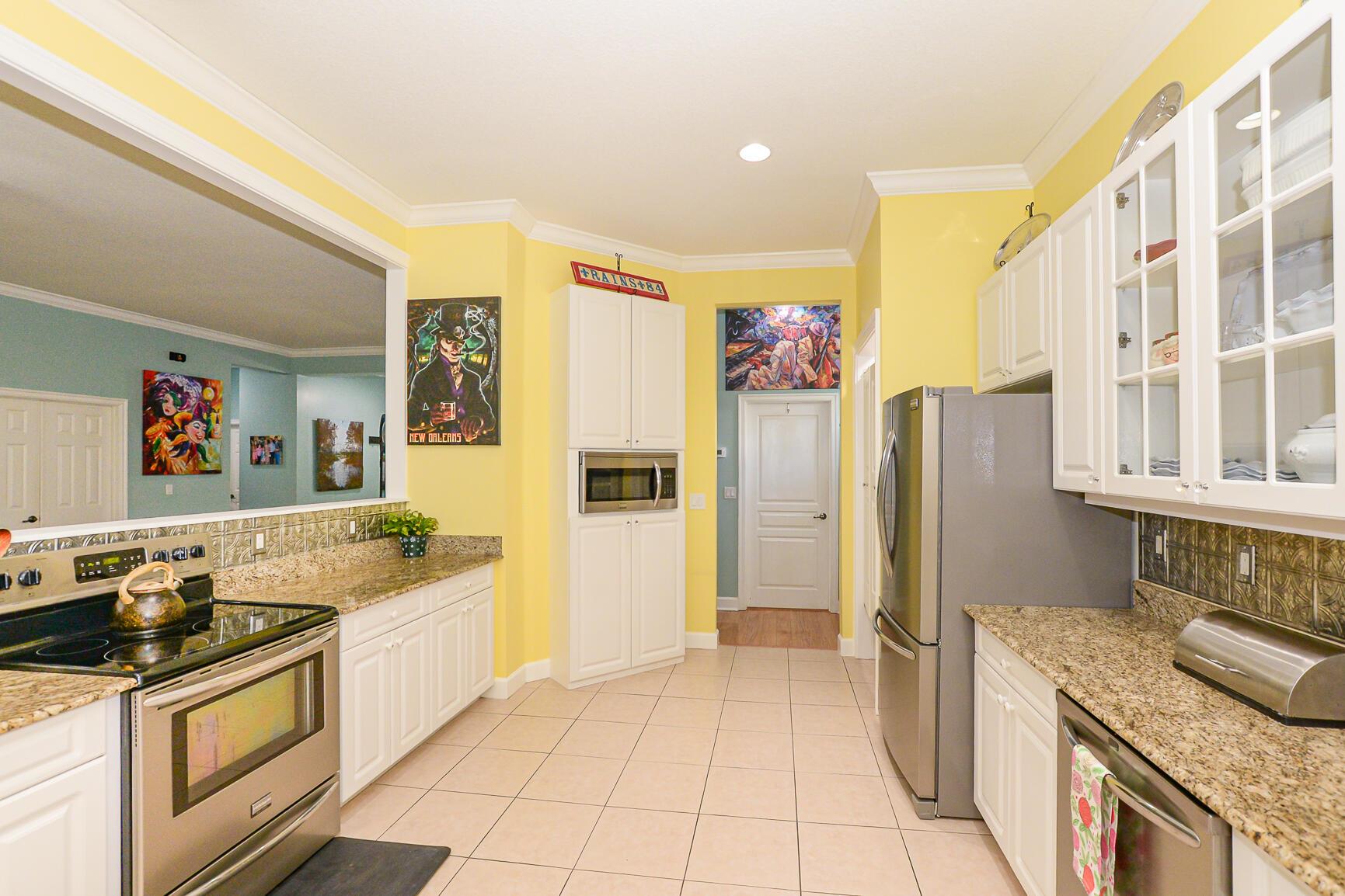 Step into the sun-drenched serenity of this Key West-style gem at 608 NE Canoe Park Circle in the renowned River Place community of Port St. Lucie. Nestled against a lush nature preserve, this CBS built one-story sanctuary blends casual elegance with tropical charm. Metal roof and classic fiber-cement siding, exuding breezy charm and enduring durability. The interior invites you in with soaring 10-ft ceilings, crown molding, and updated flooring that flows seamlessly into an open-plan kitchen equipped with stainless-steel appliances and luxurious granite countertops. The main suite is a peaceful retreat, featuring dual walk-in closets, a spa-like dual-sink vanity, expansive walk-in shower, and a dreamy garden tub to soak and unwind in true island-fashion. A screened lanai backs onto a