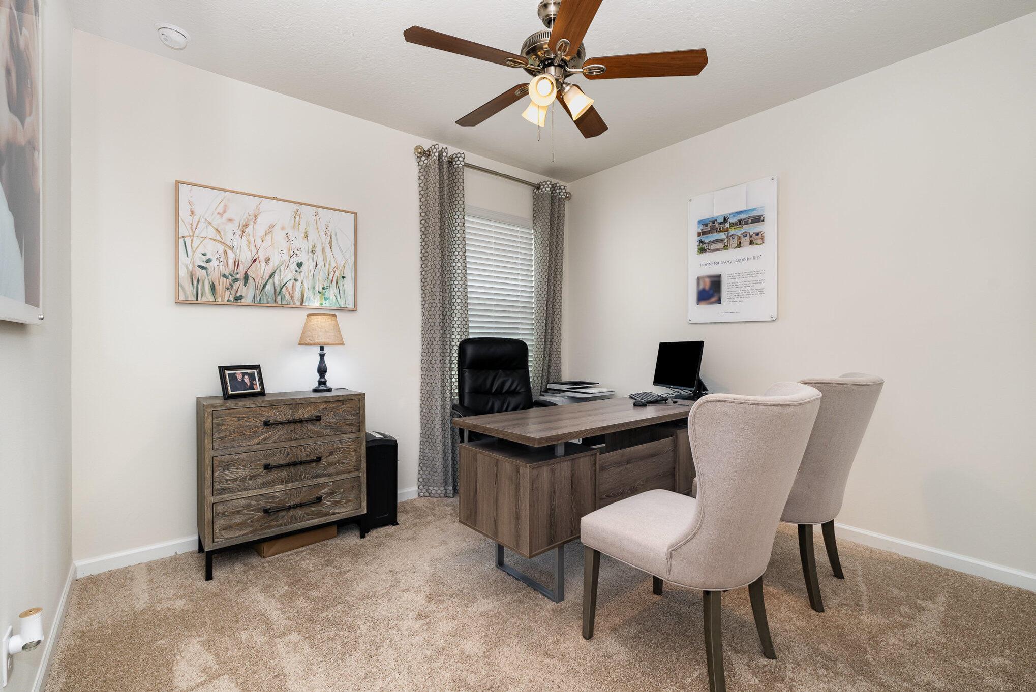 The Cali floorplan at Morningside in Fort Pierce offers 1,828 sq. ft. of elegant living space. This 4-bedroom, 2-bathroom home features gorgeous quartz countertops, oversized tile flooring, and sleek finishes. The open-concept design connects the living, dining, and kitchen areas, ideal for entertaining. The kitchen includes an oversized single-bowl undermount sink, stainless steel appliances, and a large island. The primary suite features an ensuite bath with dual sinks and a walk-in closet. Equipped with smart home technology for convenience.