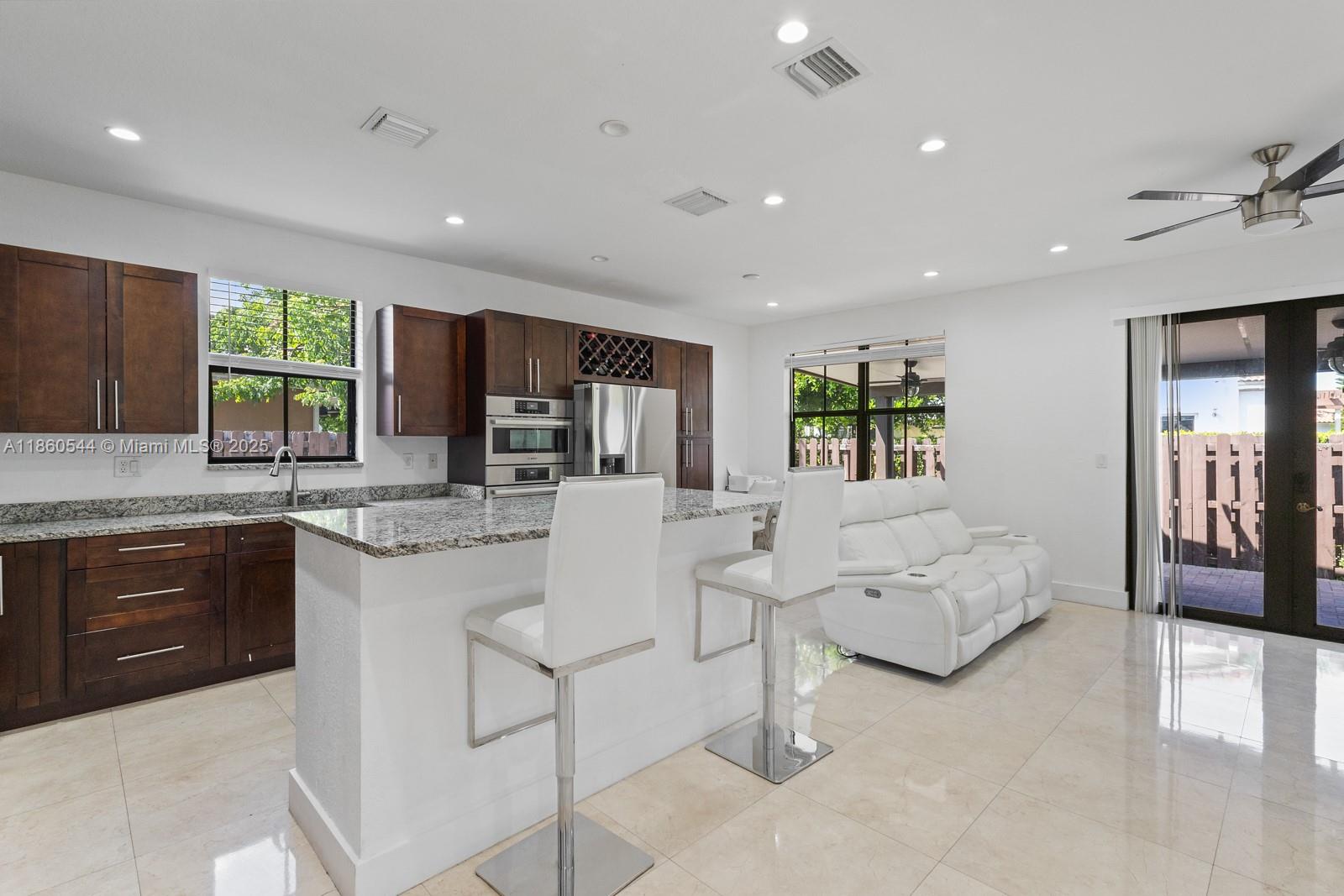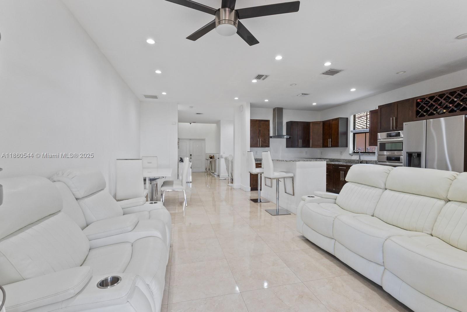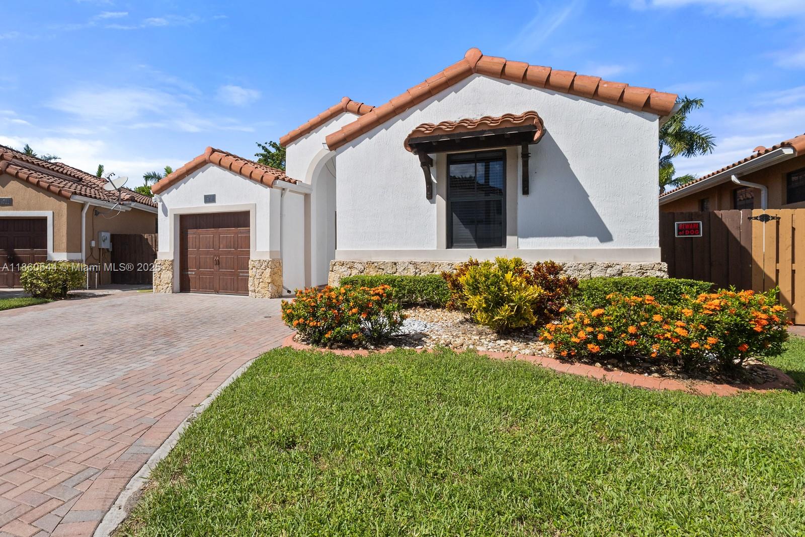 !!! Charming 3-Bed/ 2 Baths SINGLE-STORY Home in Exclusive Gated Community of LAS RAMBLAS !!! This beautiful model rarely available features 3 spacious bedrooms PLUS an extra space (garage is fully done and can be a 4th bedroom, office, den or just play room), perfect for families or anyone looking for comfort and style on one convenient level... The Patio has a huge top of the line Pergola creating the perfect space for outdoor seating, a summer kitchen or just a nice outdoor area to relax. Located in a spectacular gated community, this property offers the best of both privacy and lifestyle. Enjoy 24/7 security and a wide range of amenities, including tennis courts, swimming pool, and a fully equipped gym.. Don't miss the opportunity to live in one of the most desirable neighborhoods!