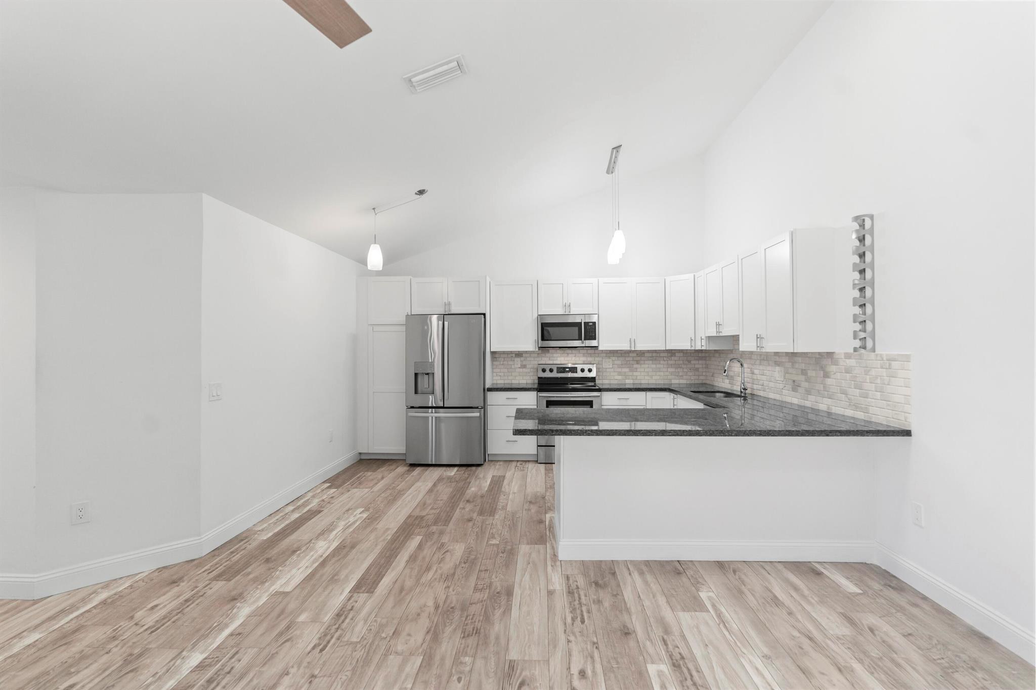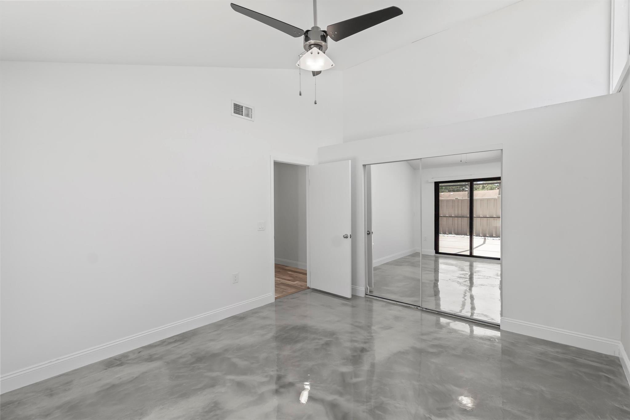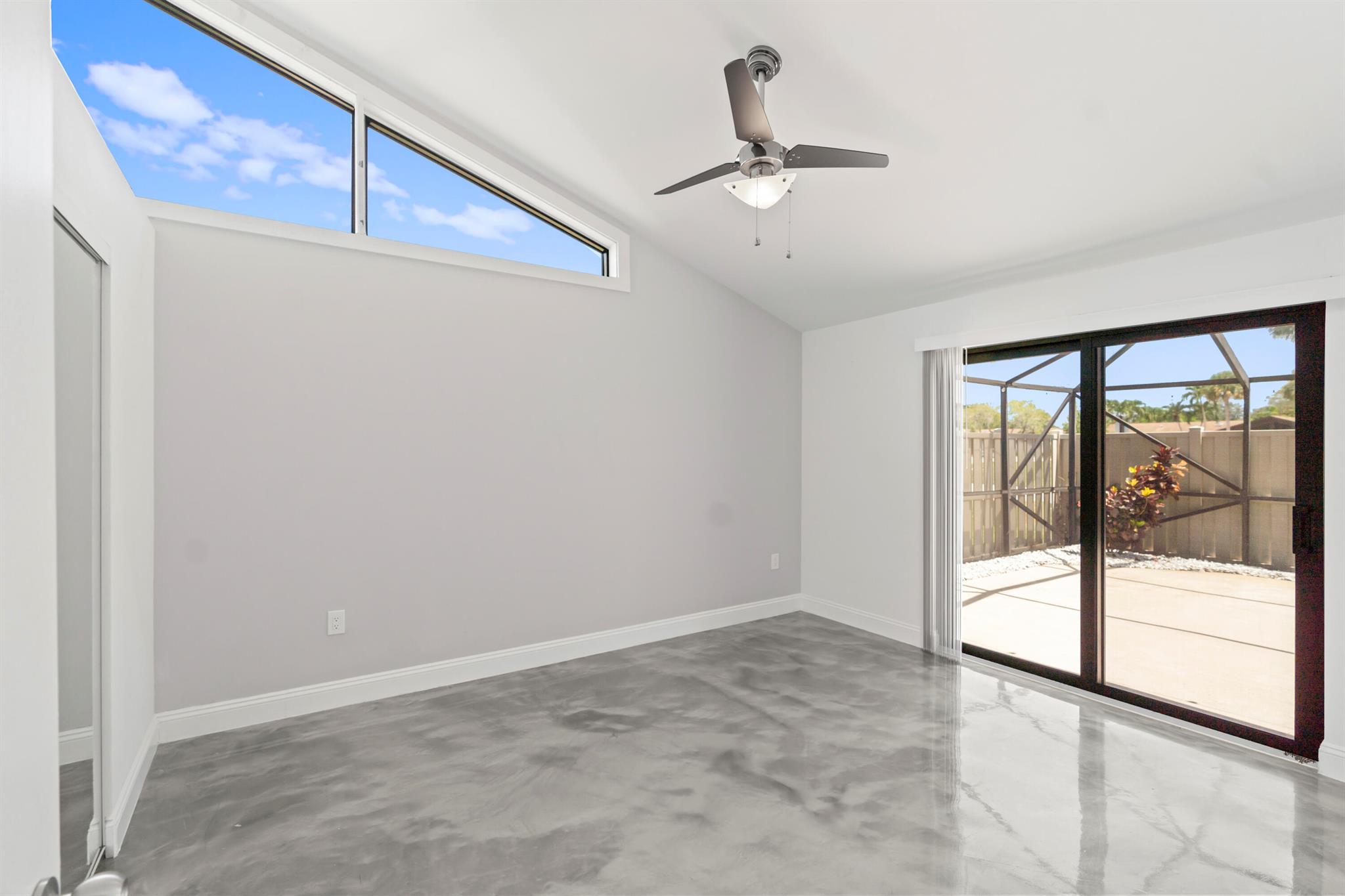 Step into your new home in the heart of Boca Raton! Enjoy the privacy and comfort of a single-family home in this move-in ready villa, located in the all-age community of Boca Gardens. With a split-bedroom layout, the master suite is privately situated on one side of the home with an upgraded bathroom featuring dual vanities, while the other two bedrooms are located on the opposite end for added privacy. Both the master bedroom and bedroom 3 have solar-tinted windows, and the home boasts all-new impact windows and doors (2023). The living area features soaring ceilings and skylights, filling the space with abundant natural light.